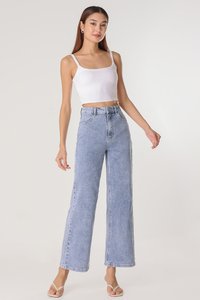 Made for everyday wear. This pair of jeans might just be your everyday favorite. Featuring a flattering straight leg silhouette that elongates your frame, 24/7 is the pair of jeans for you to style with all your favorite tops effortlessly. Made of a slight stretch denim material, this pair of denim jeans is perfect for 24/7 comfort. Comes with functional belt loops and pockets.
