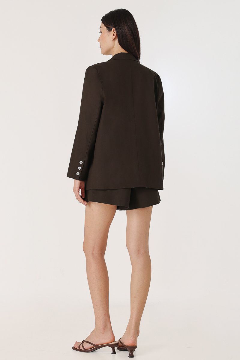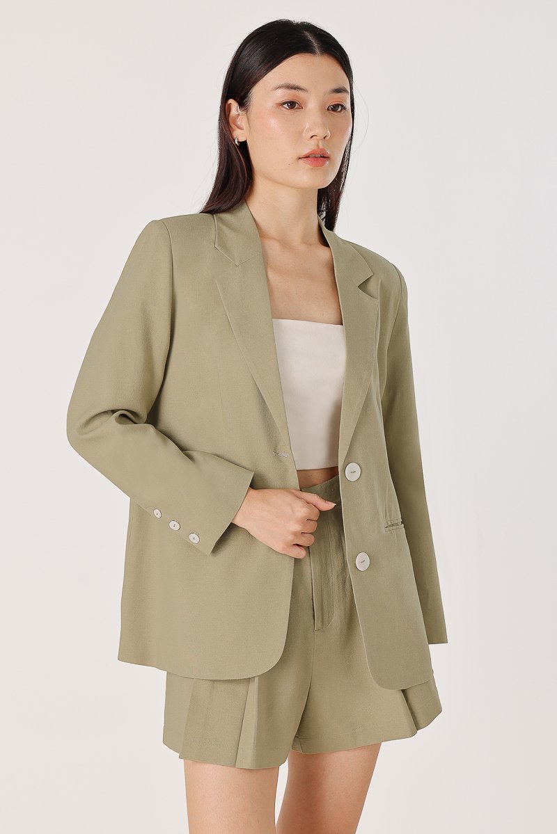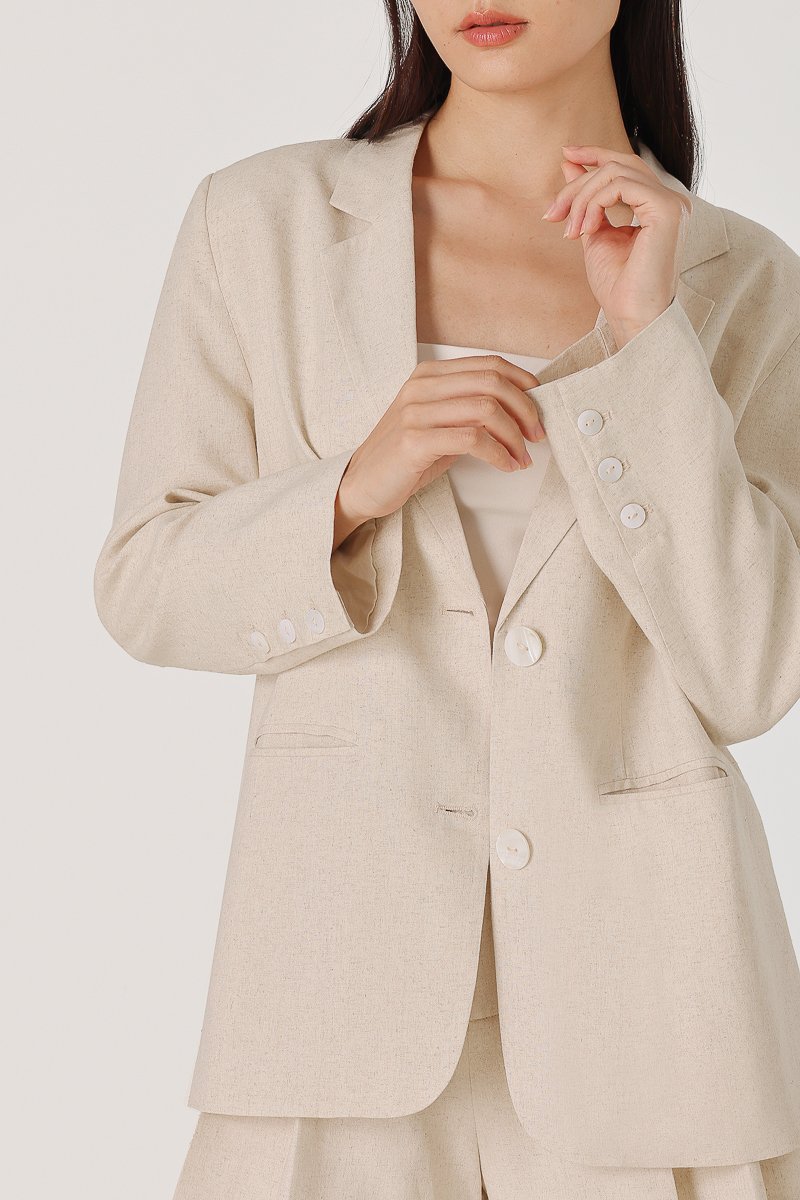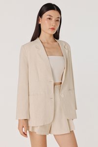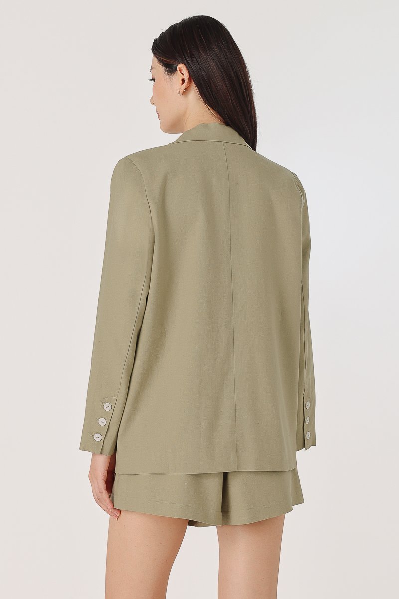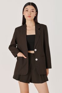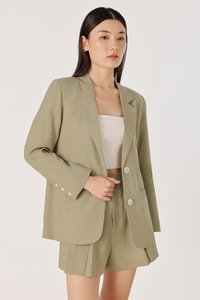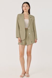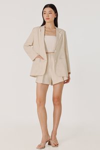 Enjoy 10% off per set if you purchase both Addie Linen Welt Pocket Shell Button Boyfriend Blazer (in any size/color) & Addie Linen Pleated Shorts (in any size/color) as a set.