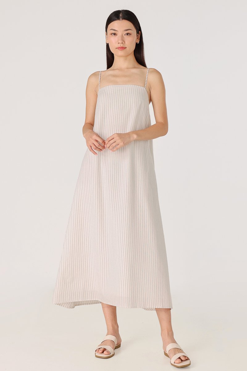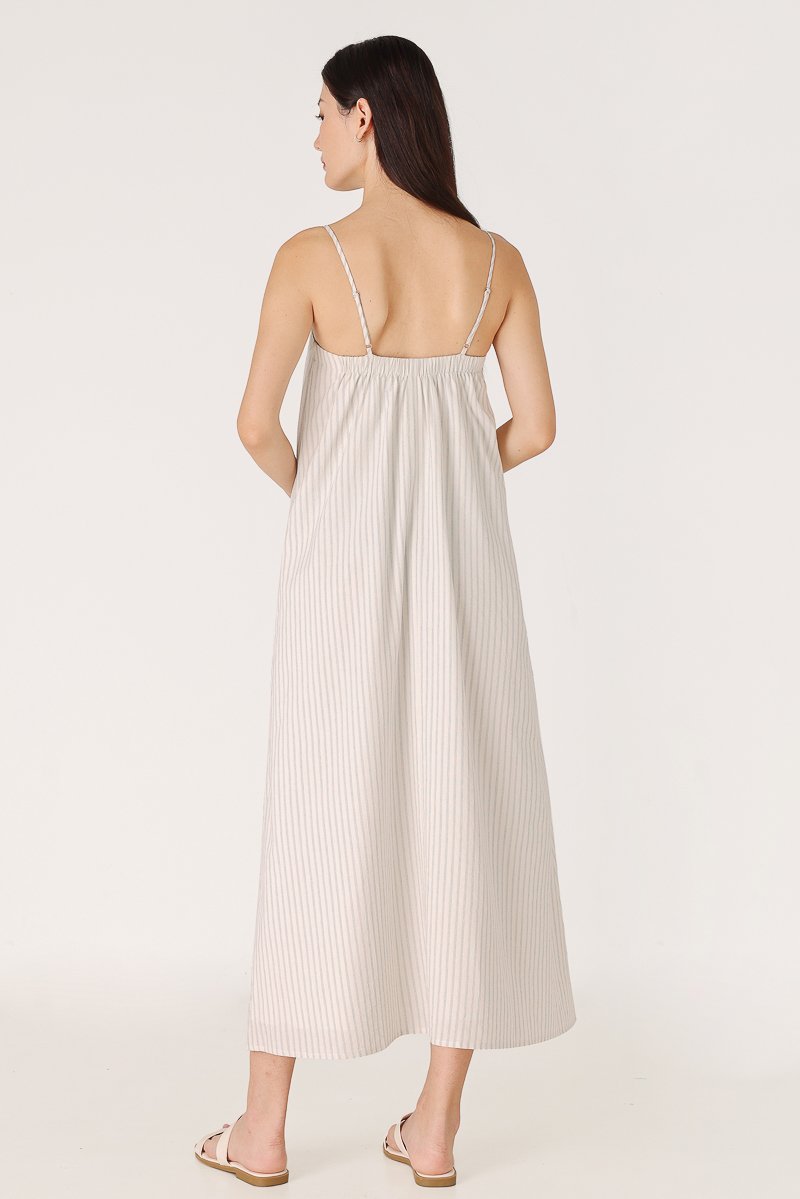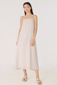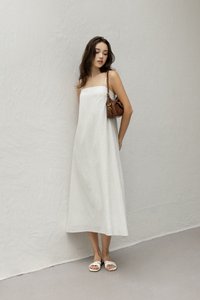 ALANA PADDED LINEN TENT MIDAXI DRESS