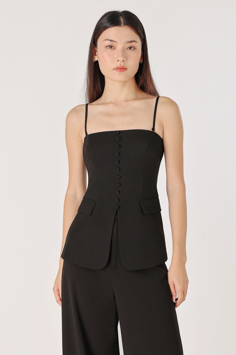 ALDA PADDED BUTTON TWO-WAY VEST TOP (BLACK)