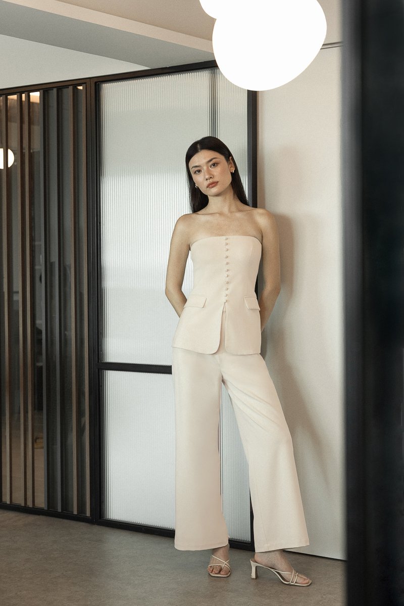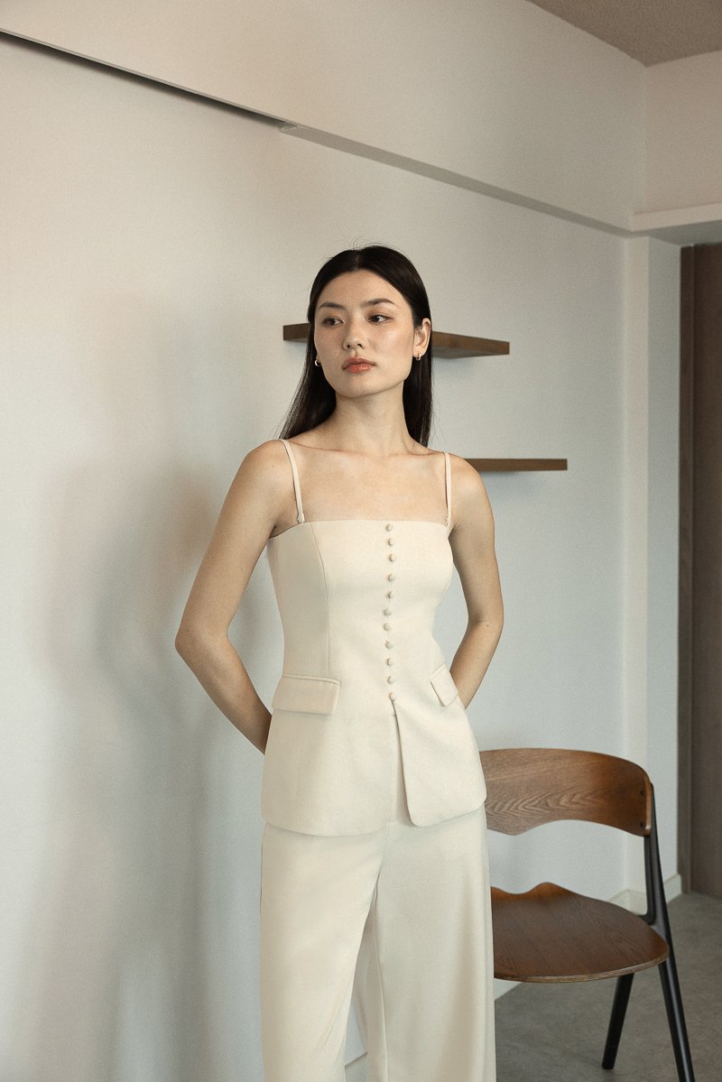 Enjoy 10% off per set if you purchase both Alda Padded Button Two-Way Vest Top (in any size/color) & Alda Business Straight Leg Pants (in any size/color/length) as a set.