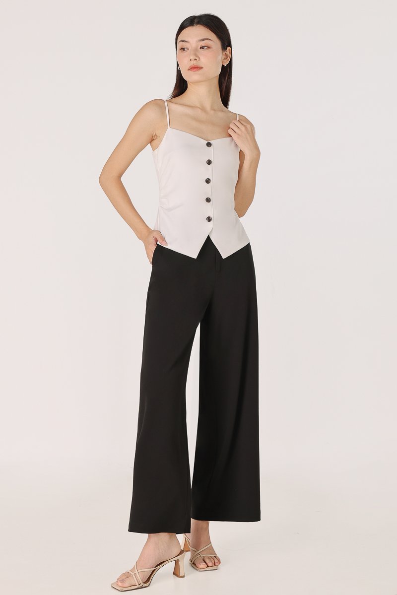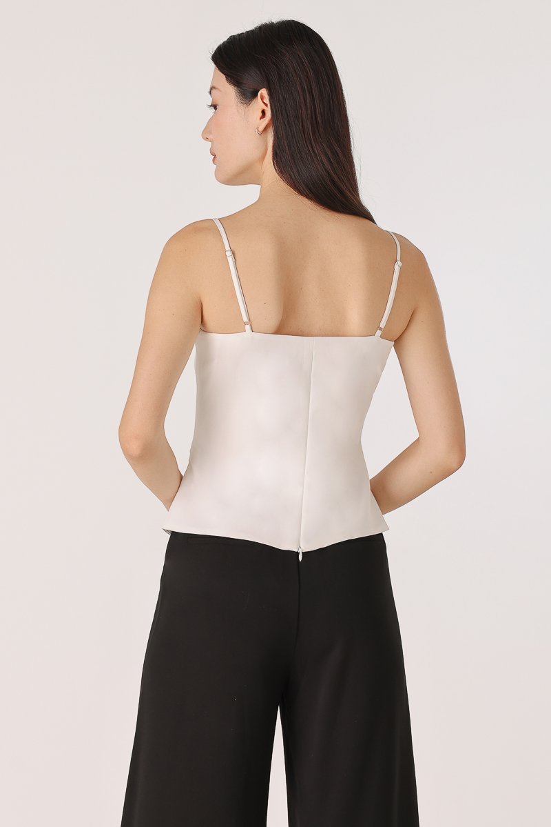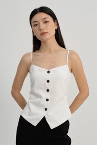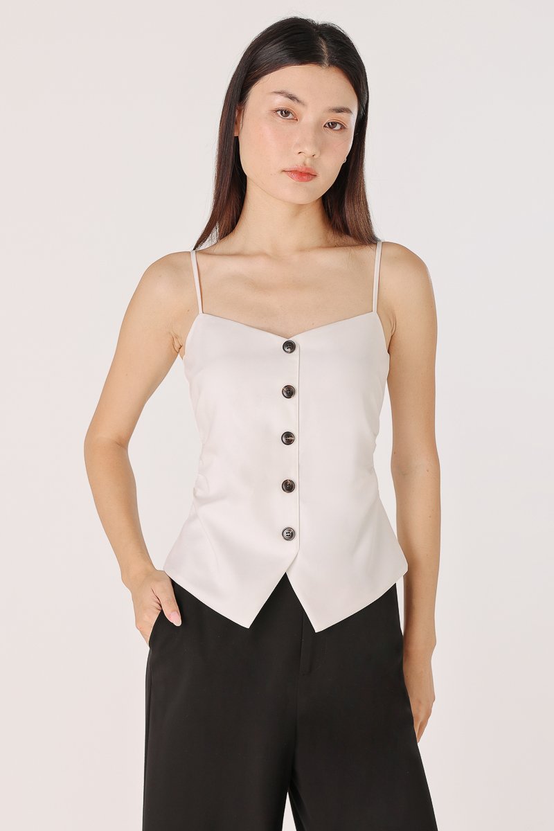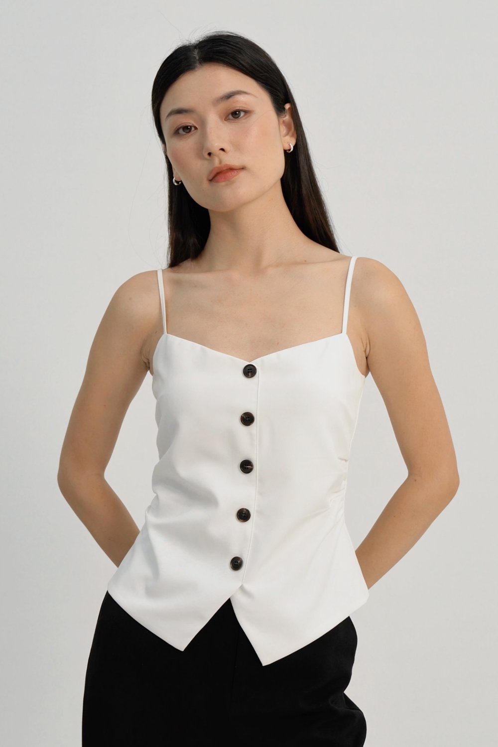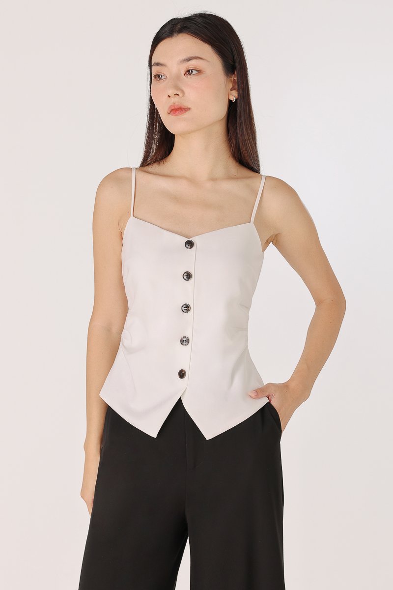 ALESSIA PADDED SIDE RUCHED BUTTON VEST TOP (WHITE)