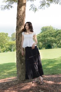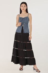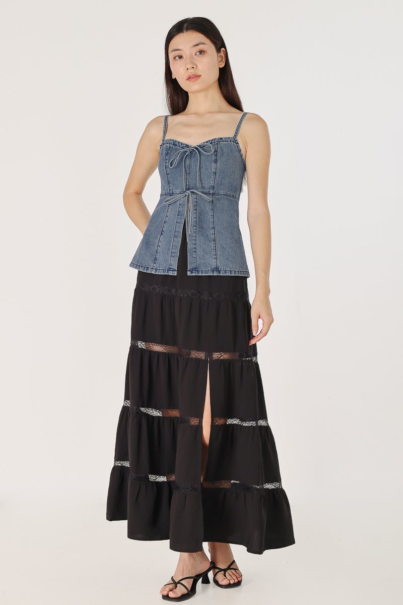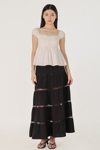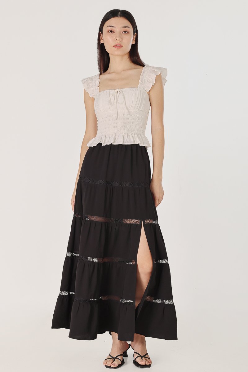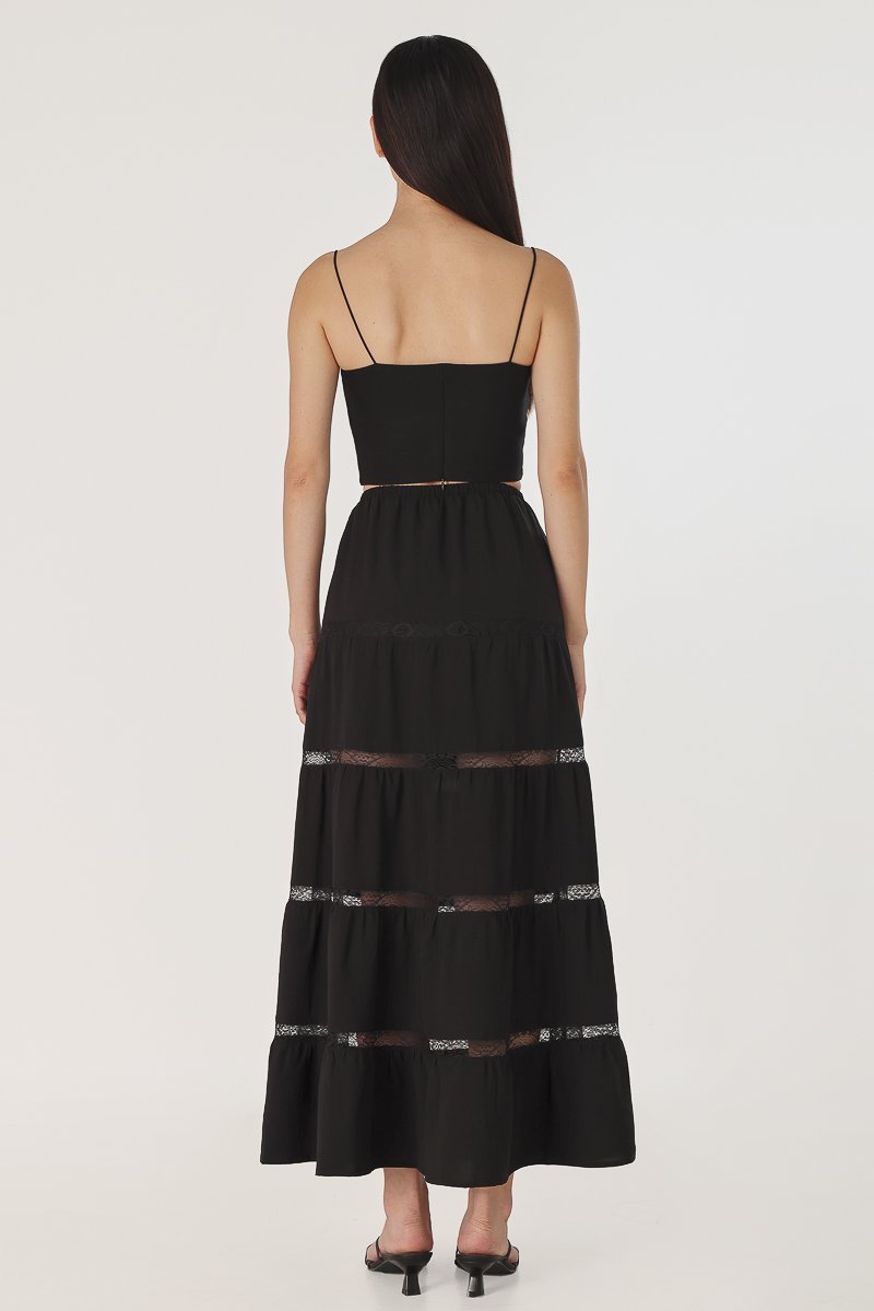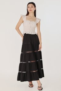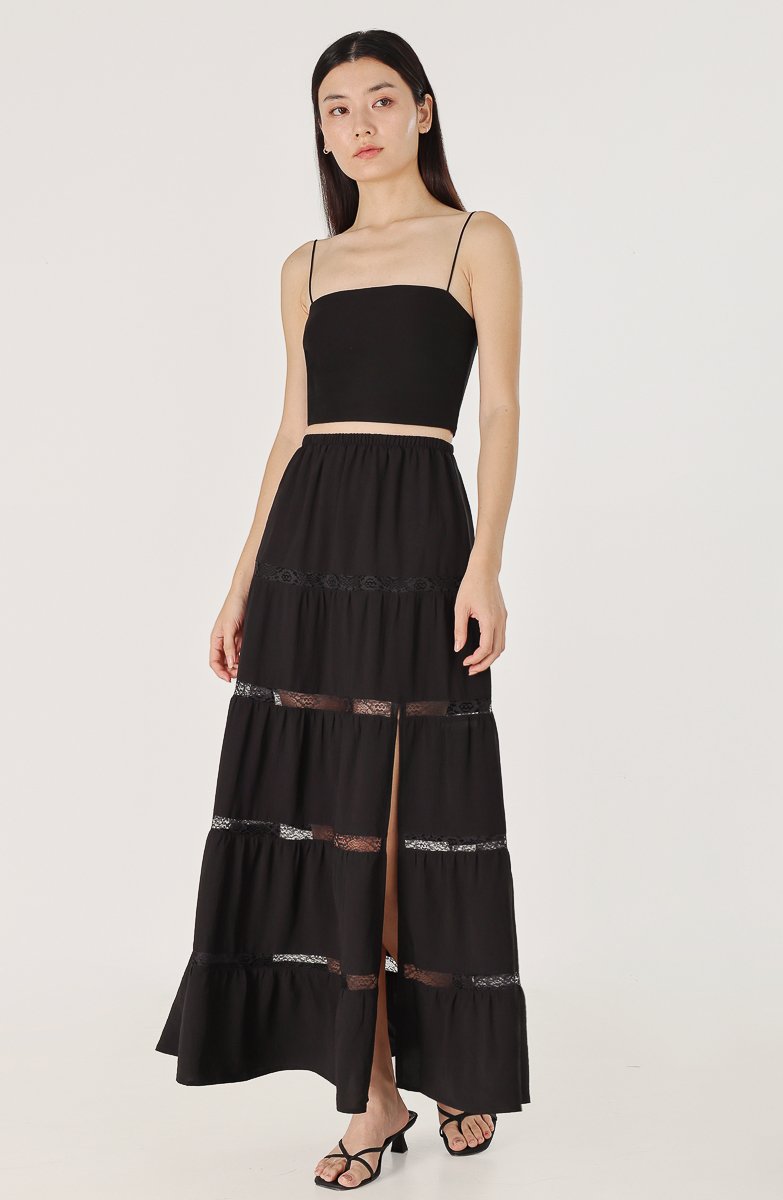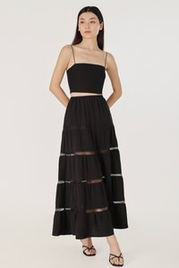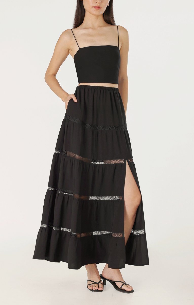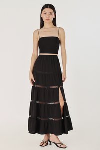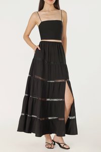 AMARIA COTTON LACE INSERT TIERED MAXI SLIT SKIRT - PETITE (BLACK)