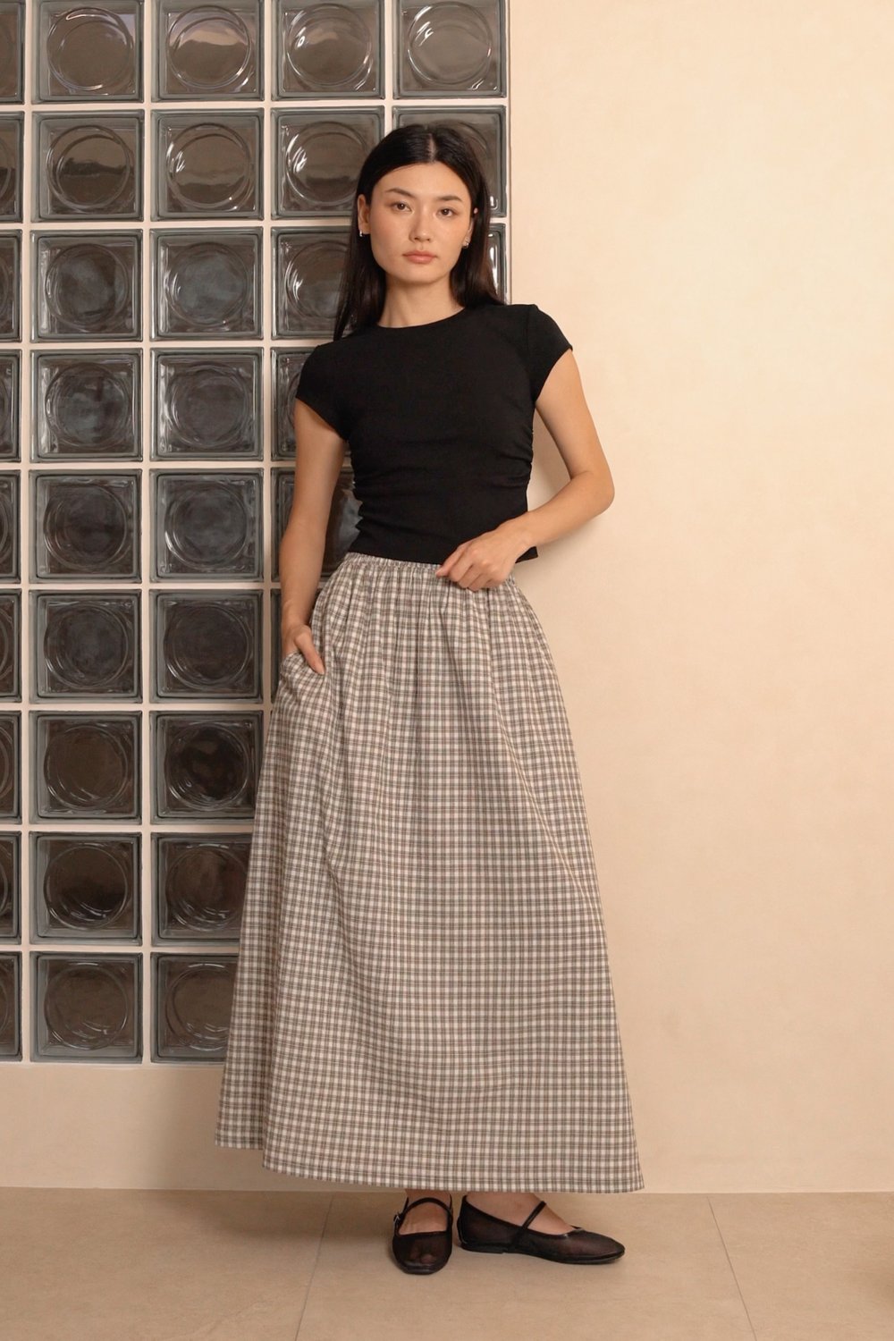 ANNEMARIE PULL-ON FLARE MAXI SKIRT - PETITE (CHECKERED)