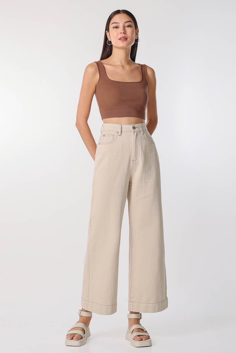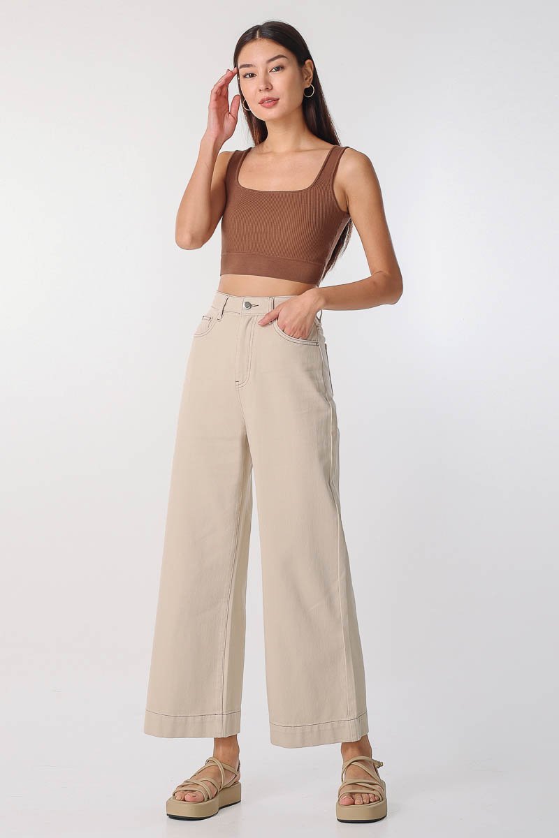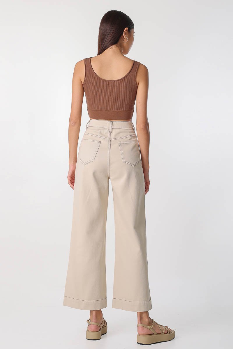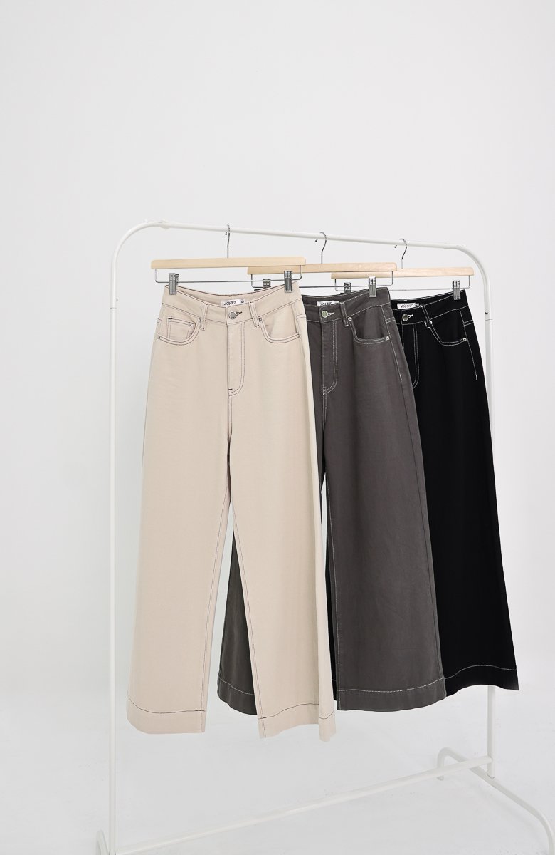 ANYDAY CONTRAST STITCH WIDE LEG PANTS (OAT)