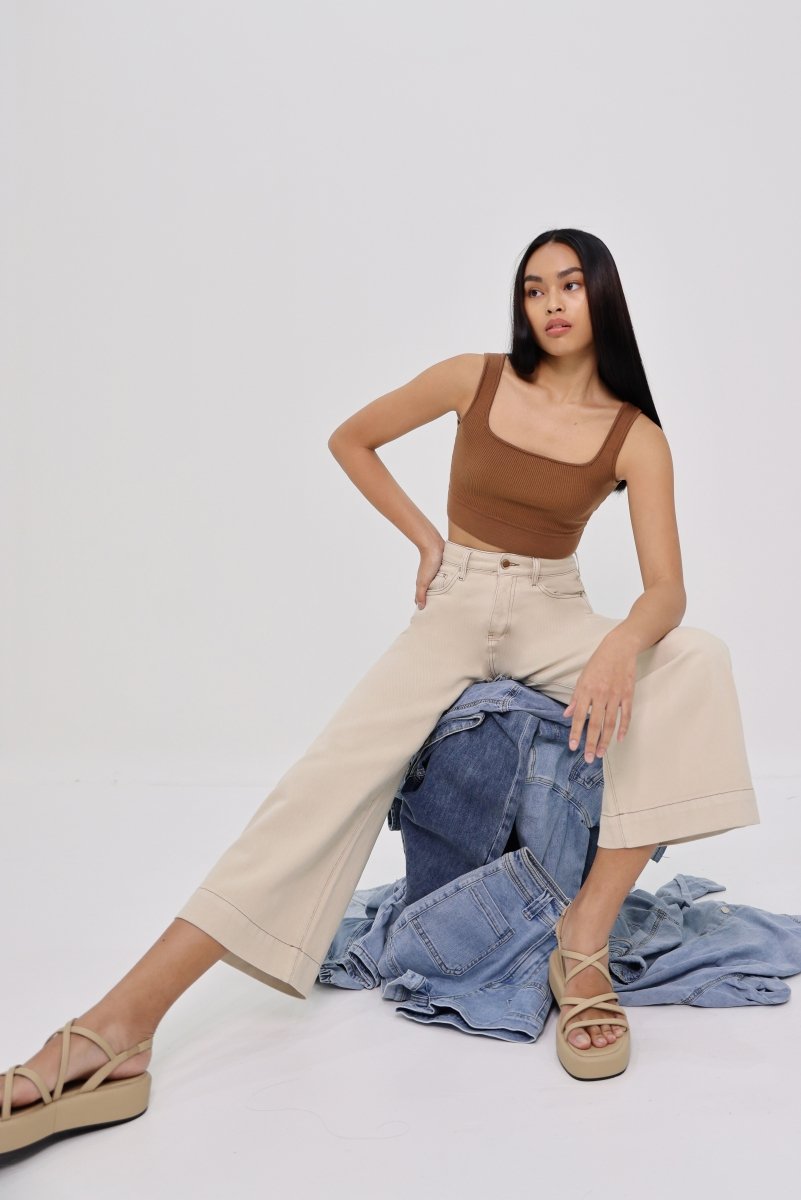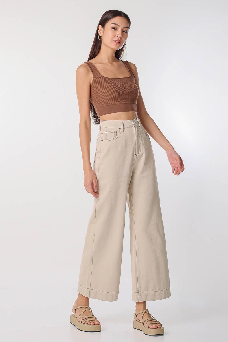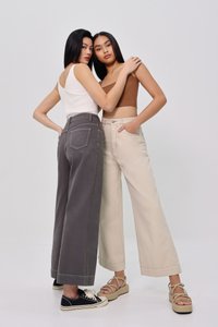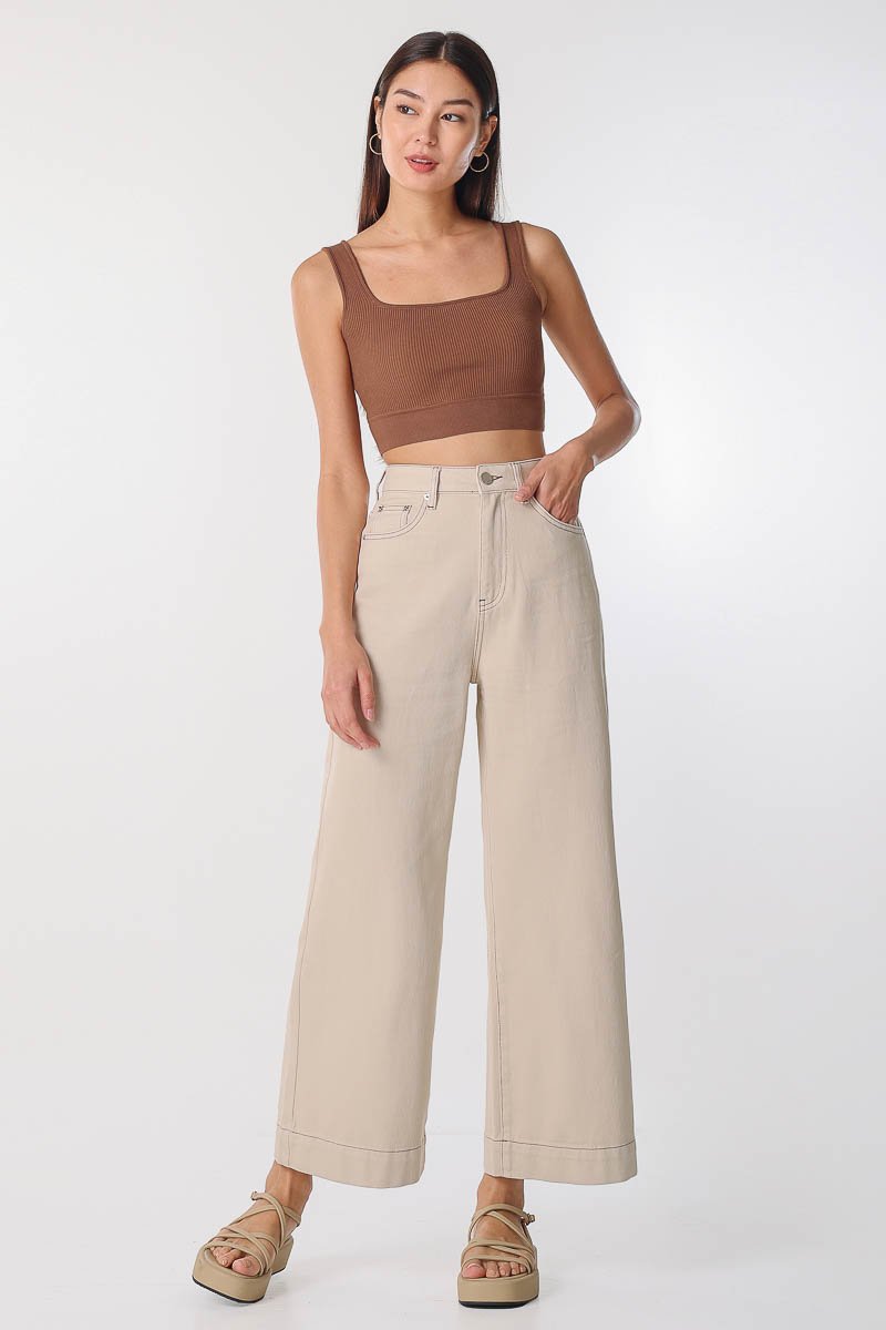 ANYDAY CONTRAST STITCH WIDE LEG PANTS (OAT)