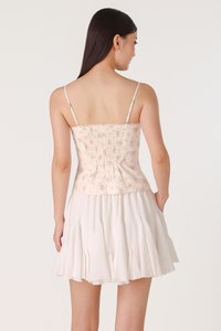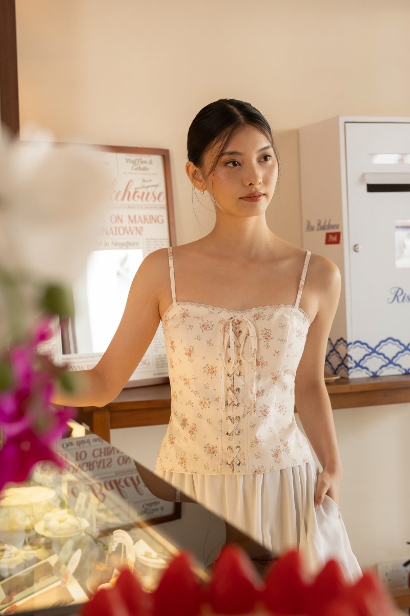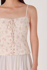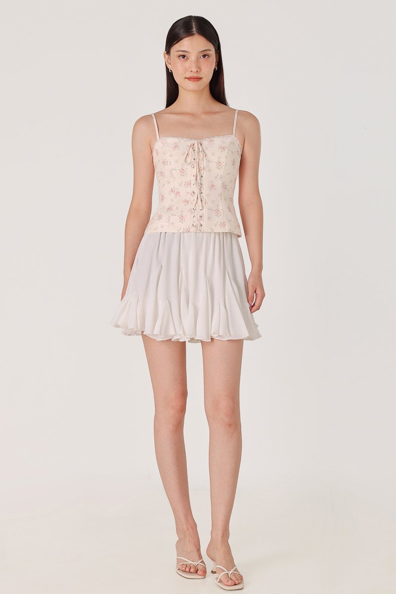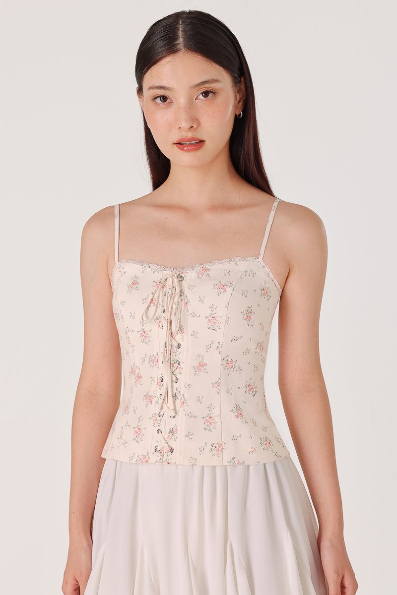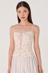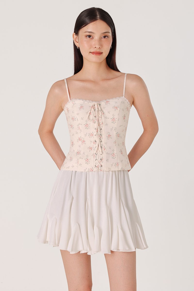ARABELLA PADDED FLORAL CORSET LACE TRIM TOP (WHITE)