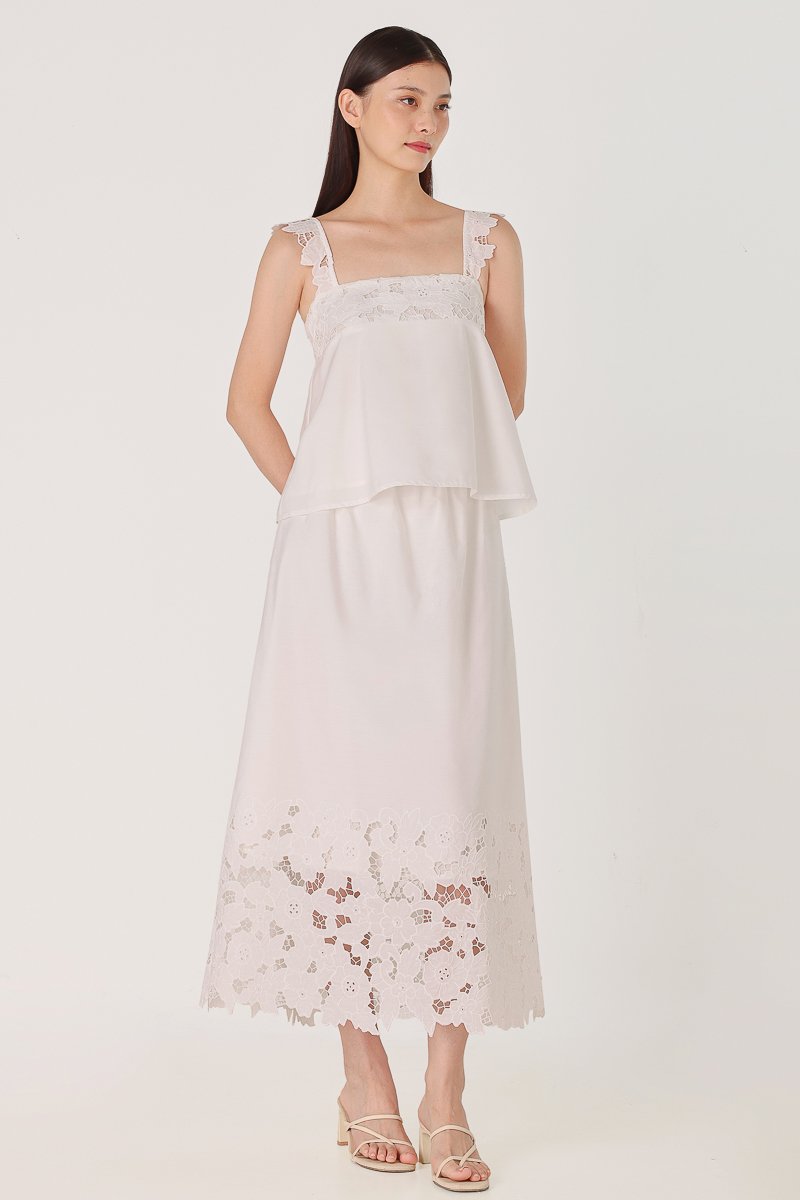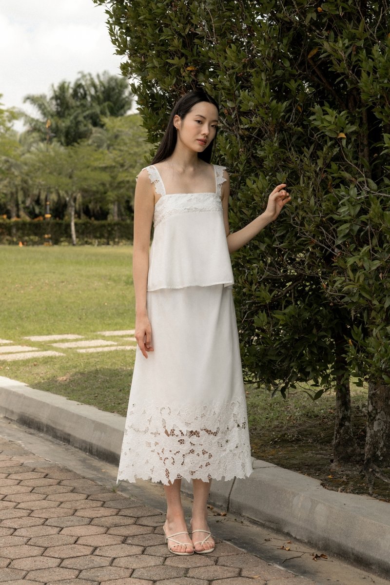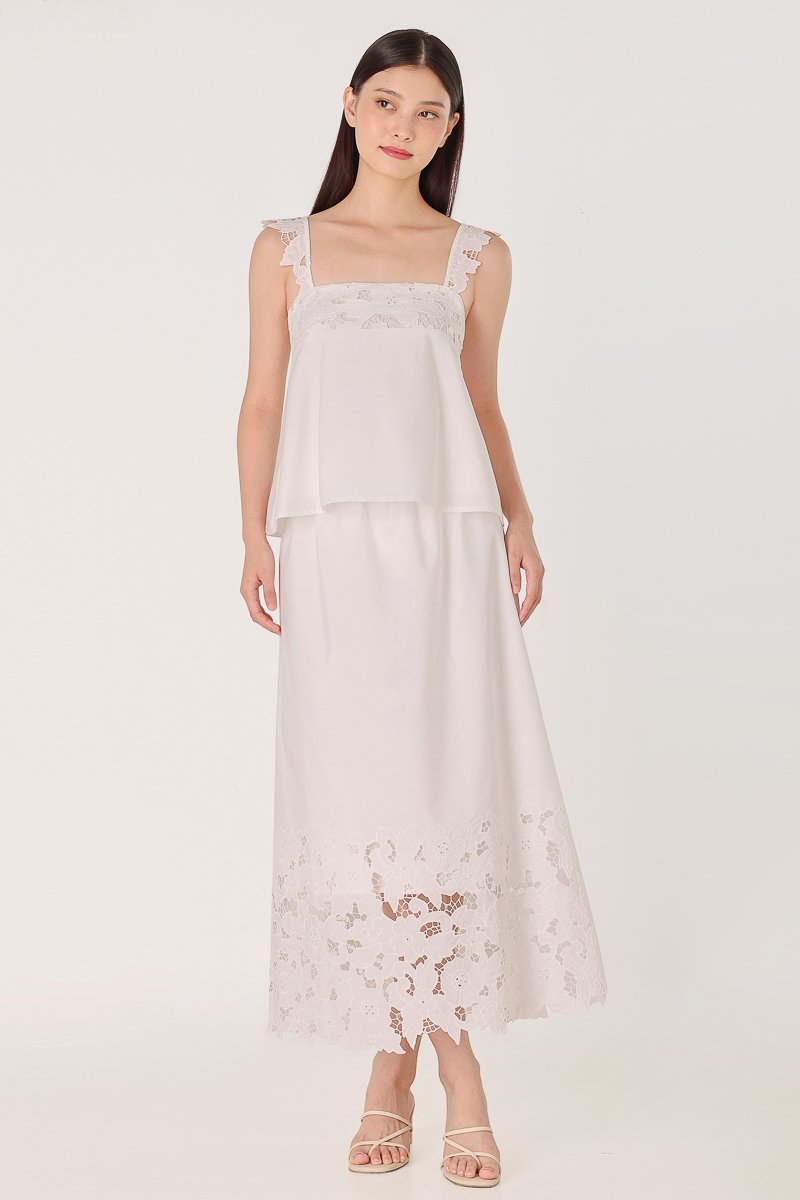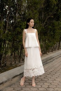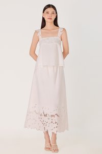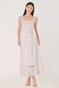 Enjoy 10% off per set if you purchase both Avaline Padded Broderie Eyelet Flare Tent Top (in any size) & Avaline Broderie Eyelet Flare Maxi Skirt (in any size) as a set here.