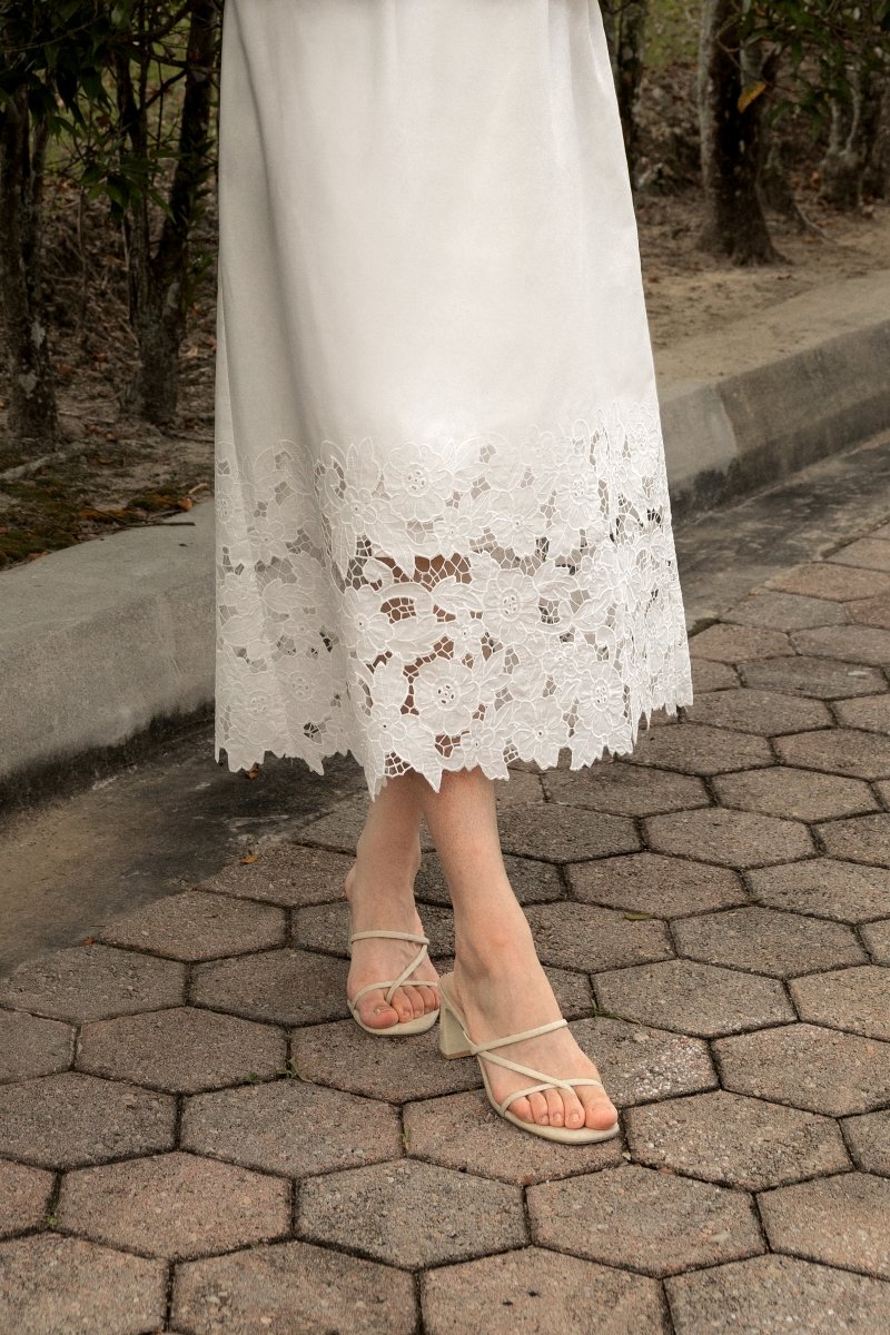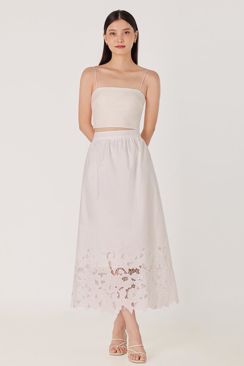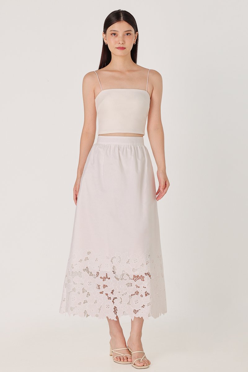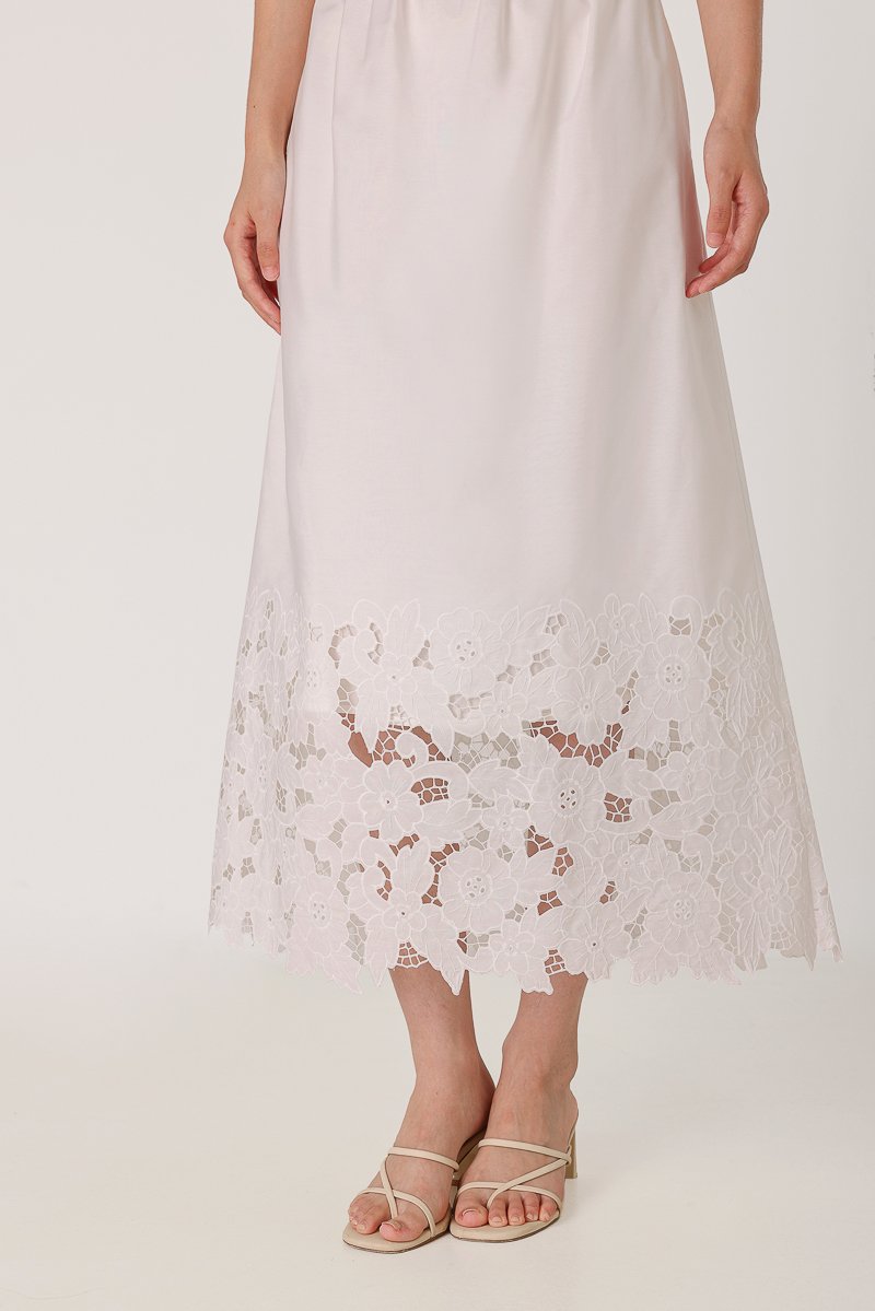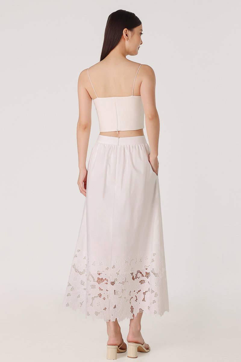 AVALINE BRODERIE EYELET FLARE MAXI SKIRT