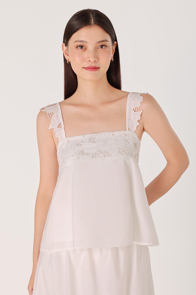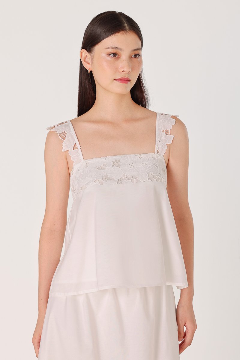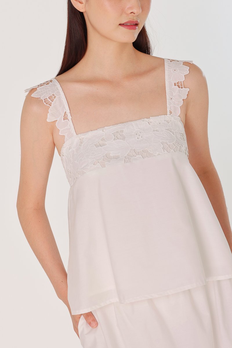 AVALINE PADDED BRODERIE EYELET FLARE TENT TOP