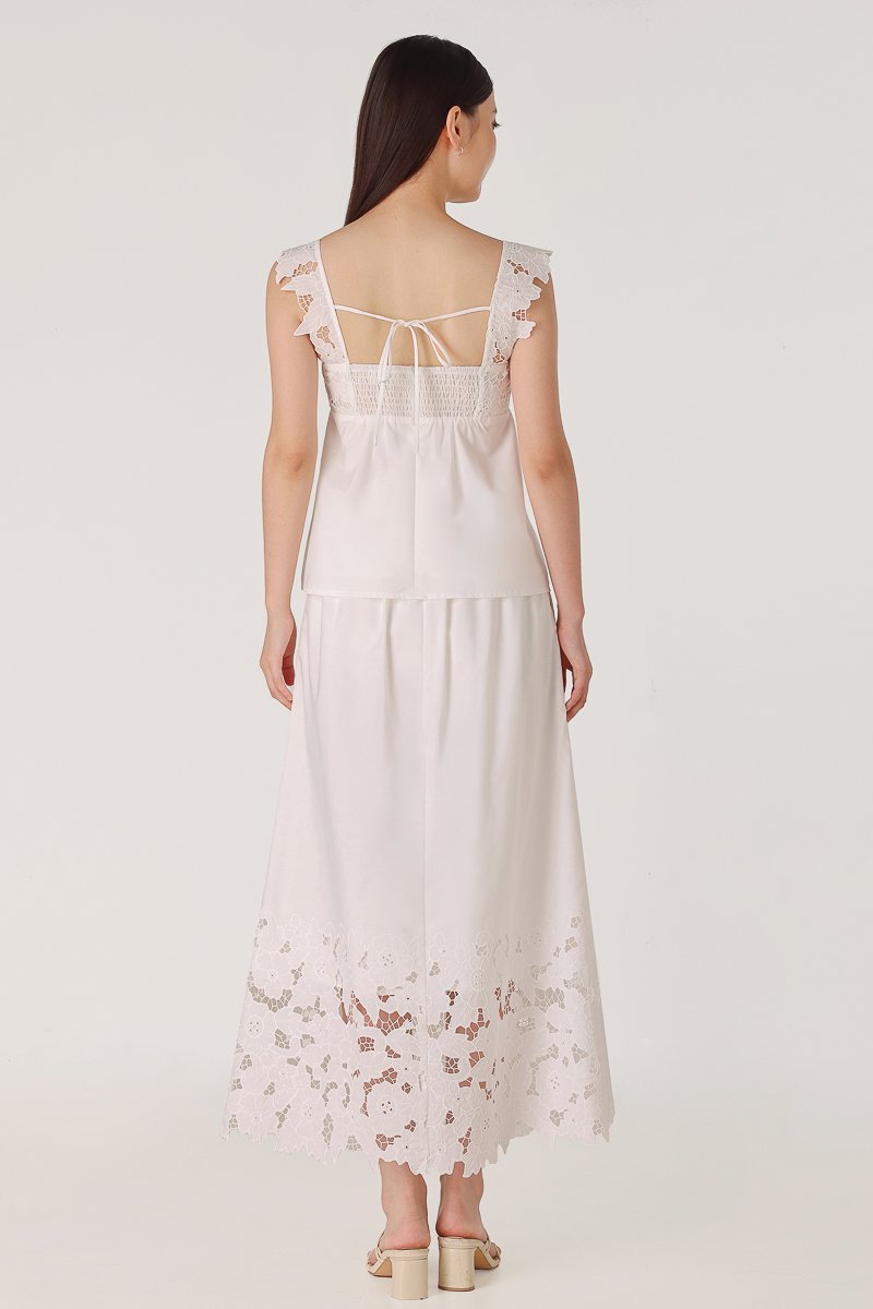 Enjoy 10% off per set if you purchase both Avaline Padded Broderie Eyelet Flare Tent Top (in any size) & Avaline Broderie Eyelet Flare Maxi Skirt (in any size) as a set here.