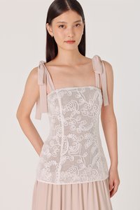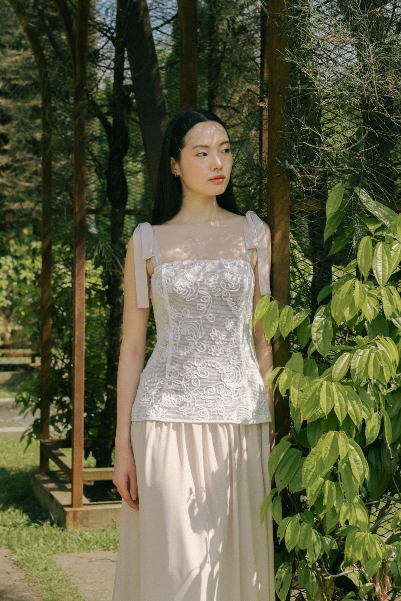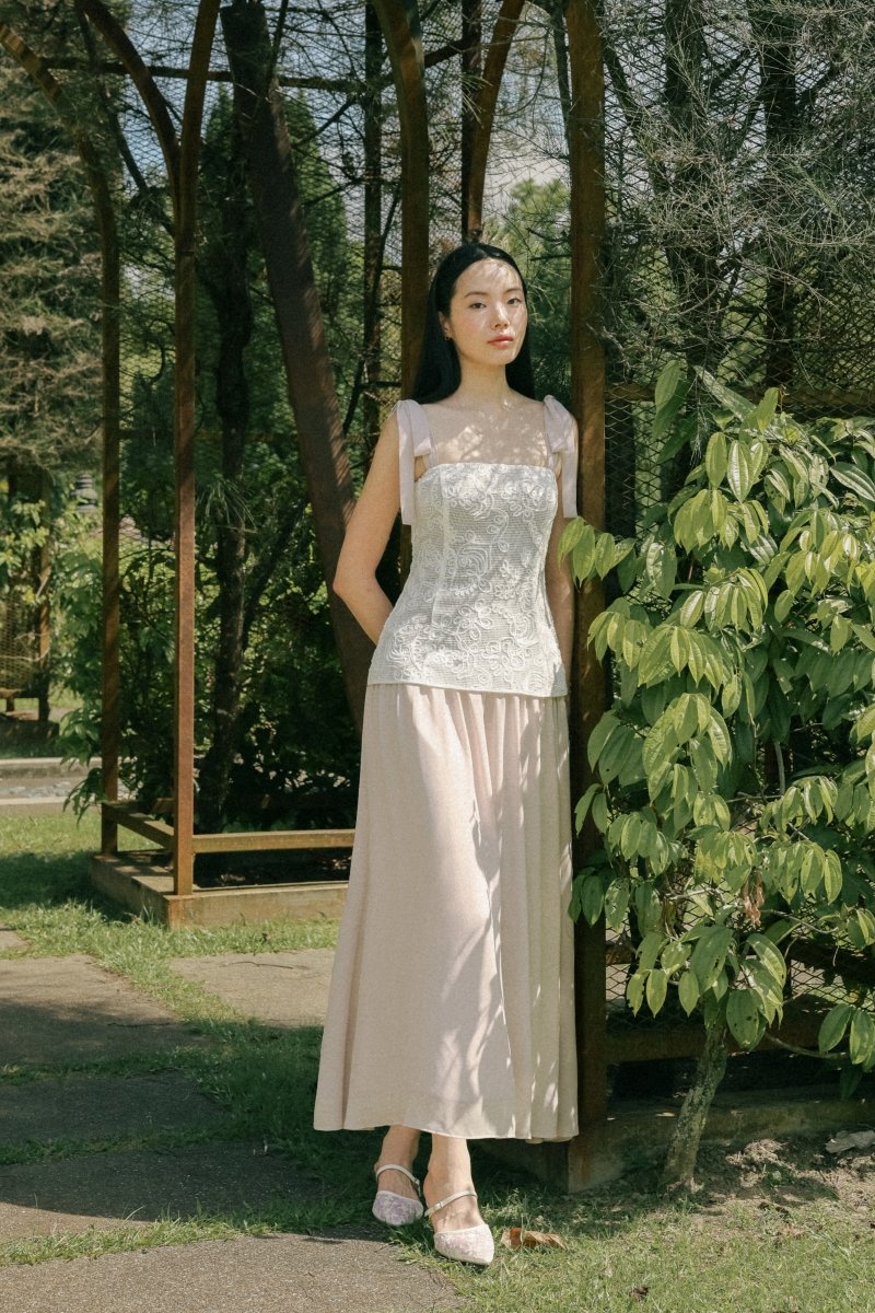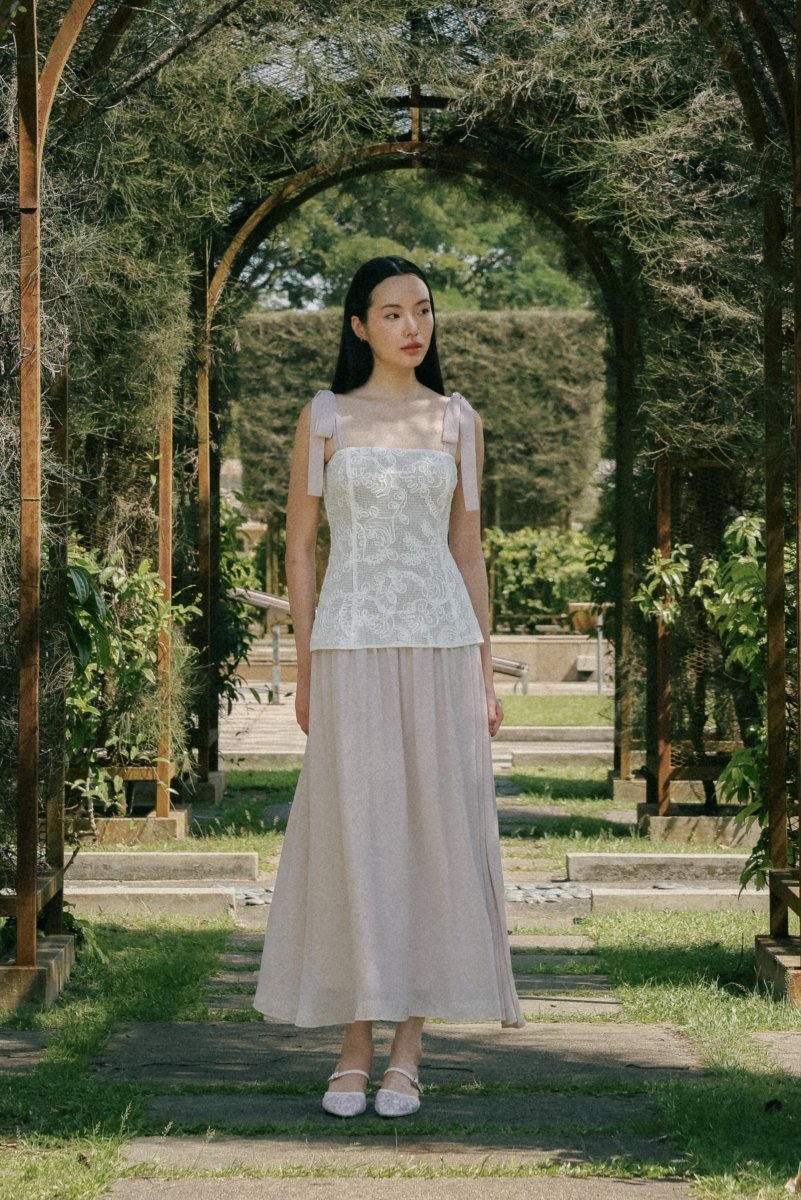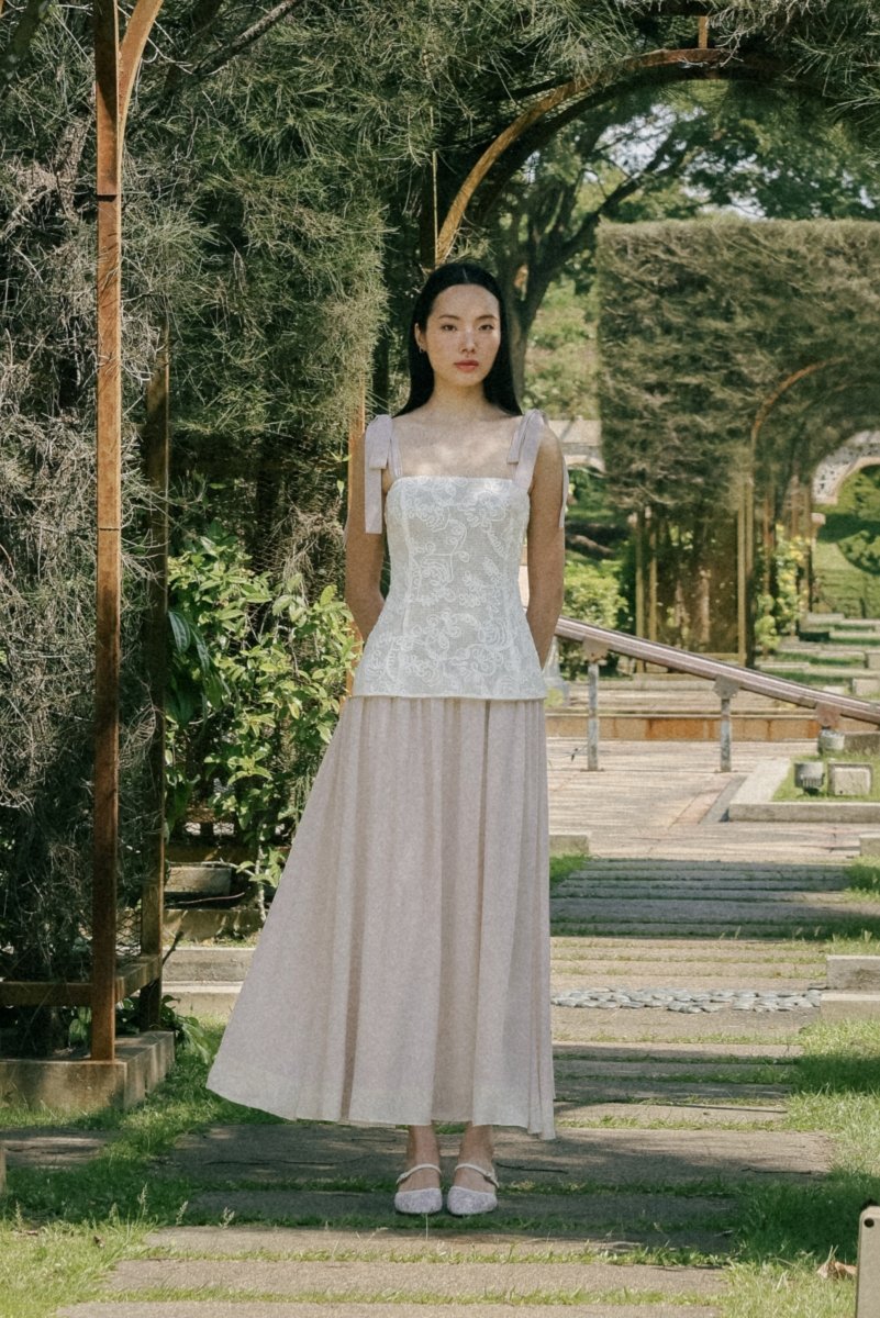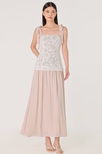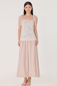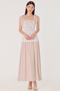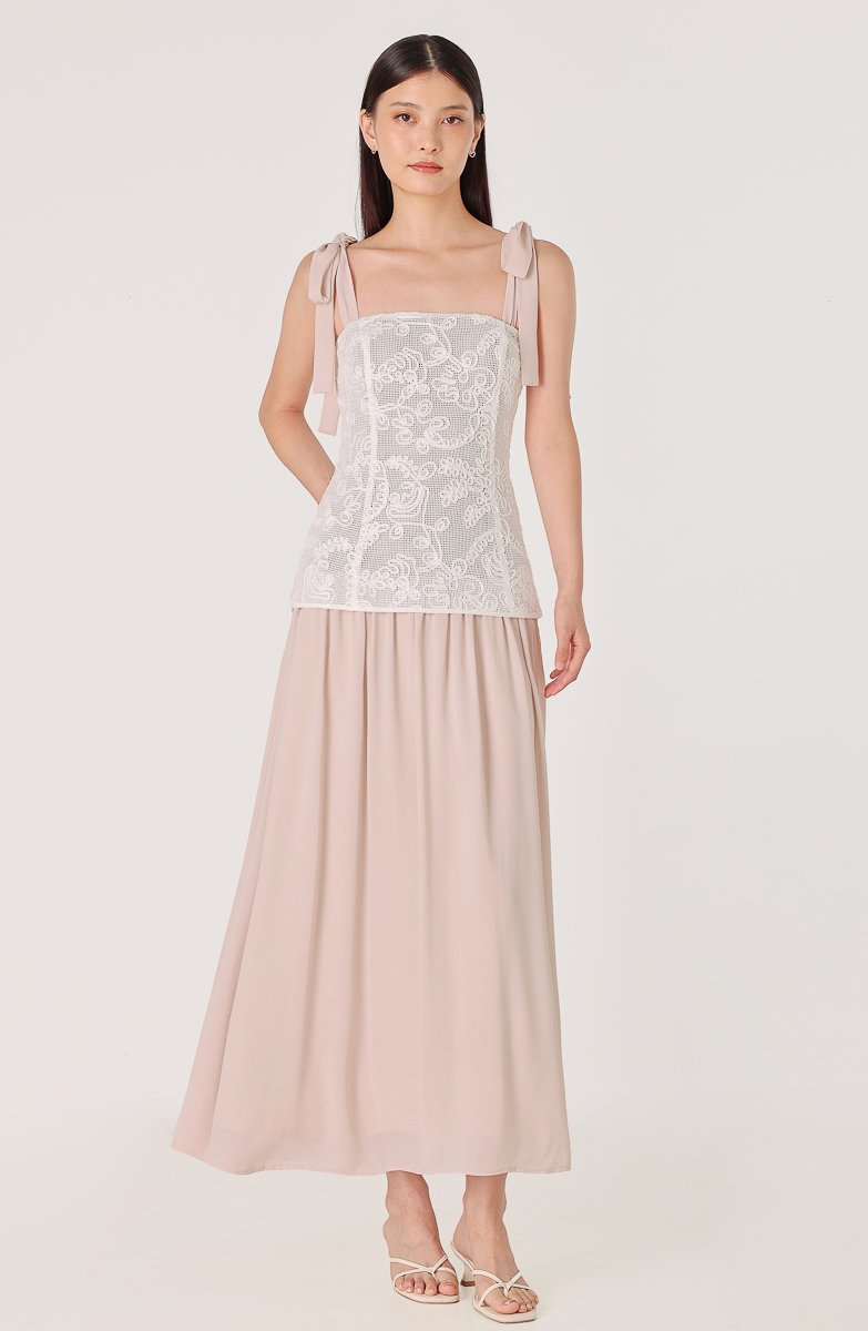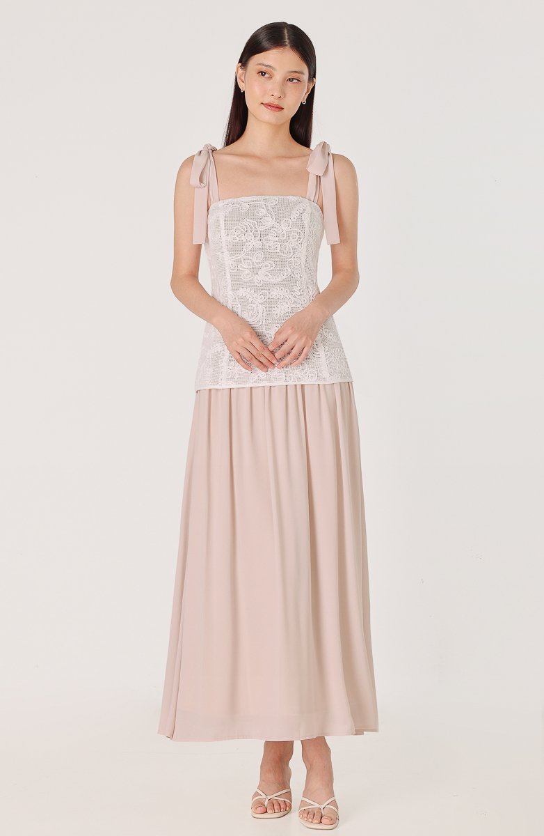 AZALEA PADDED CORDED EMBROIDERY LACE TIE-RIBBON MAXI DRESS
