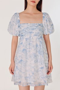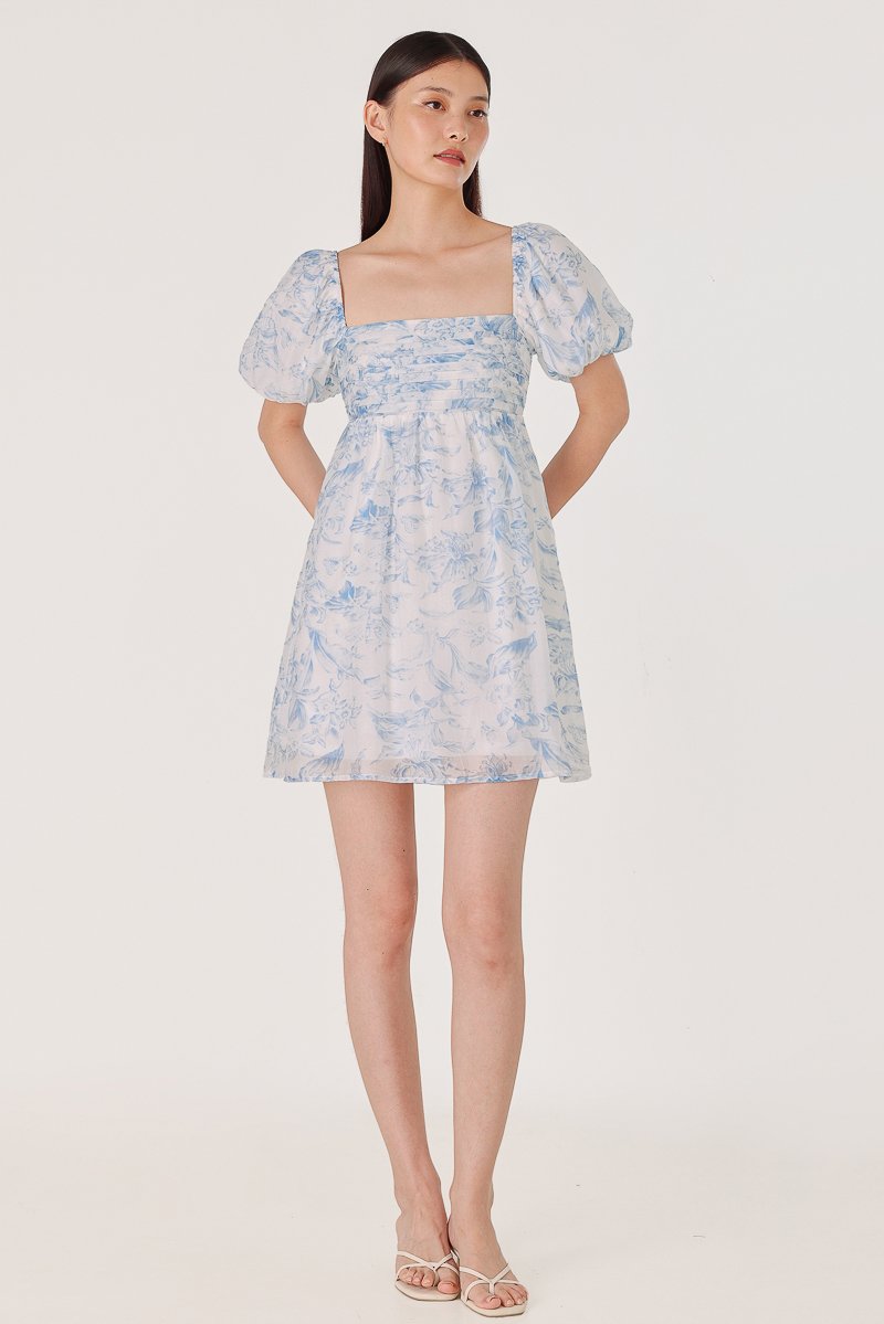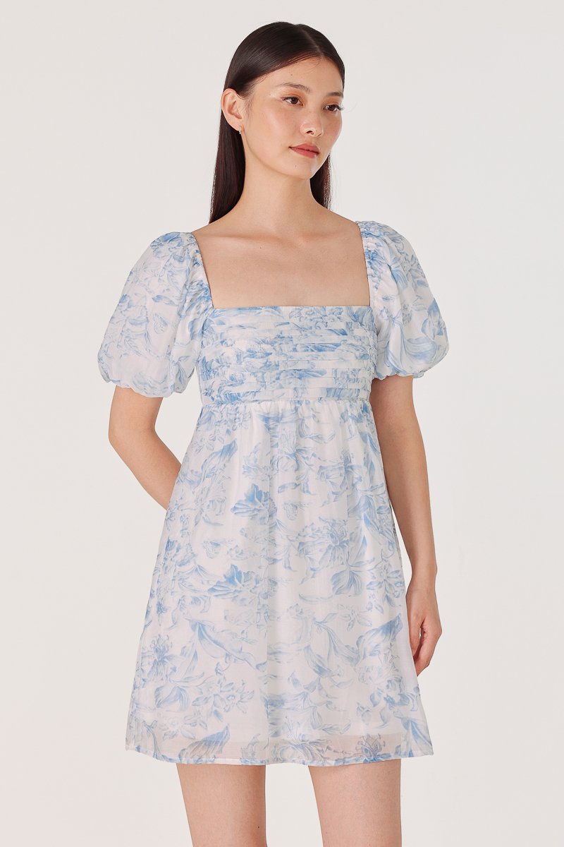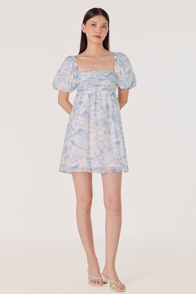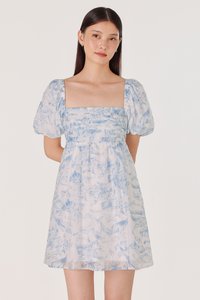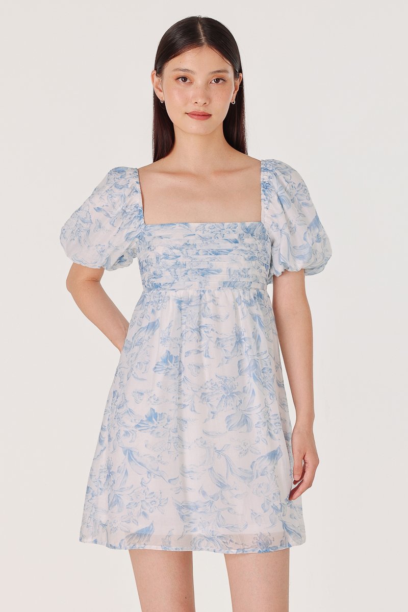 BOTANICAL PADDED FLORAL PLEATED BUBBLE SLEEVE BABYDOLL SKORTS DRESS