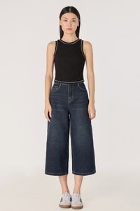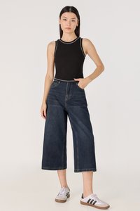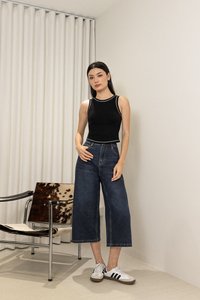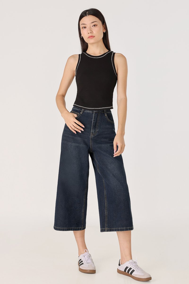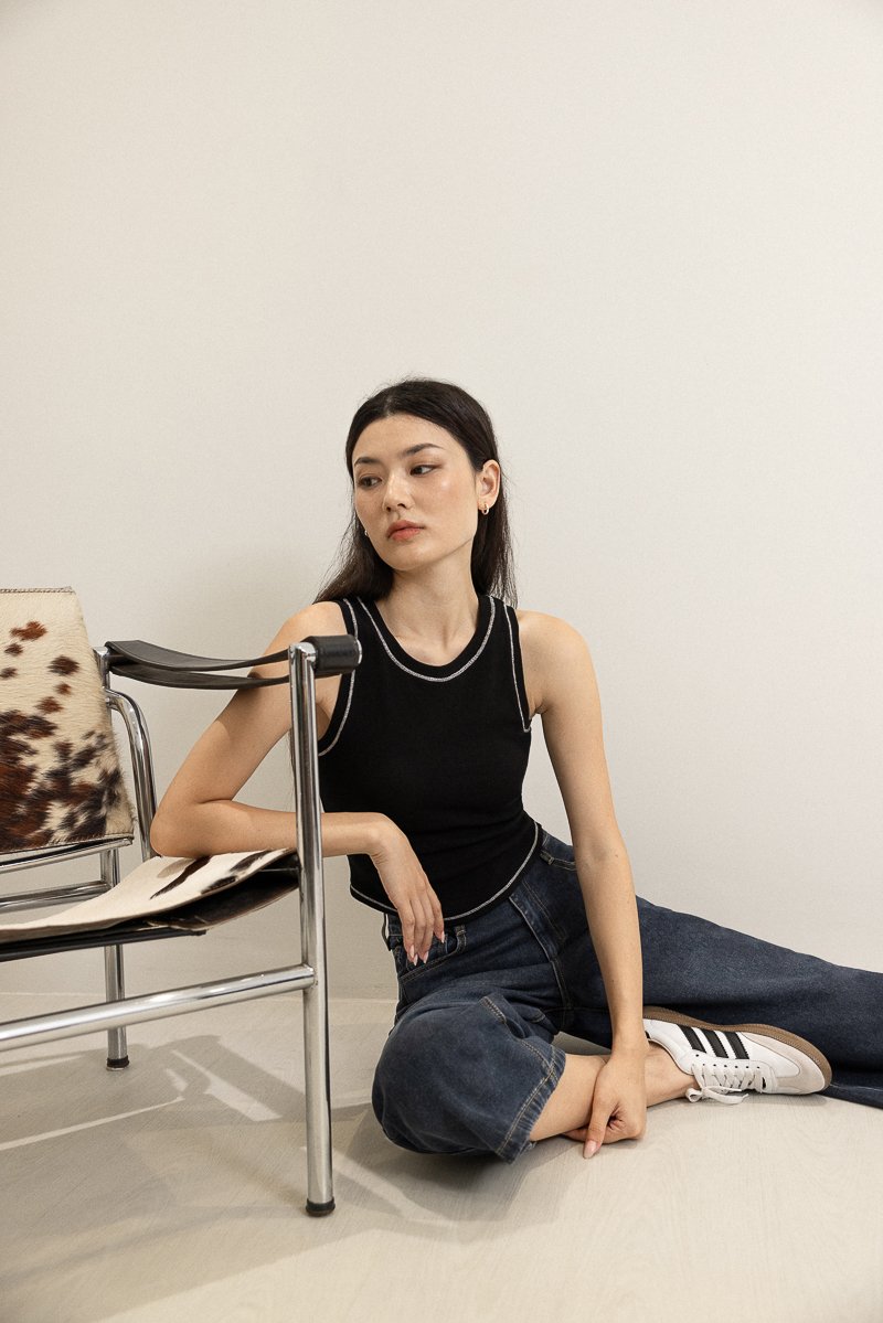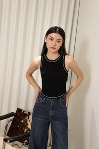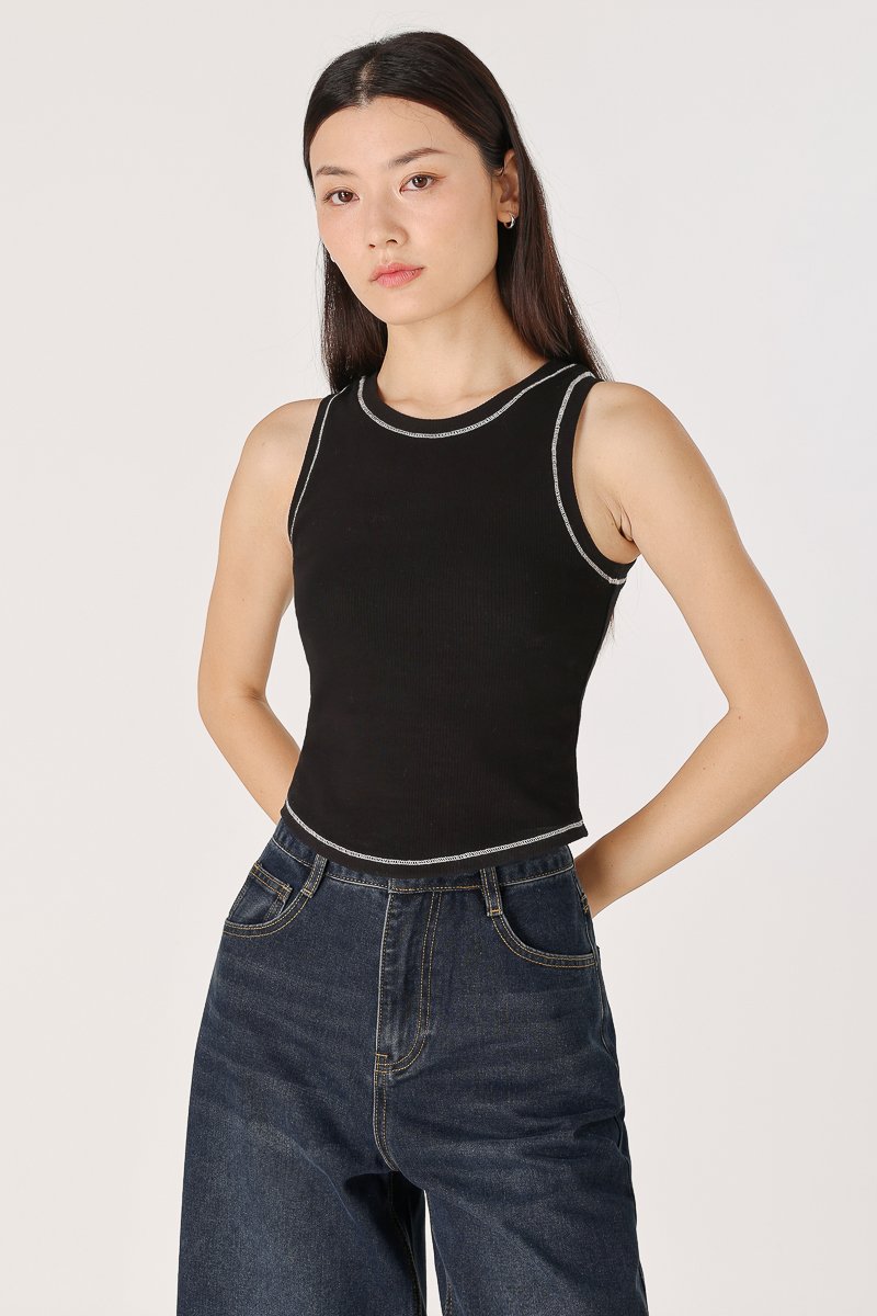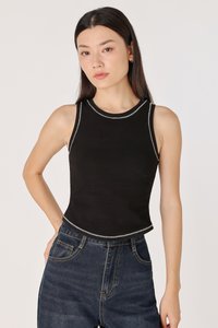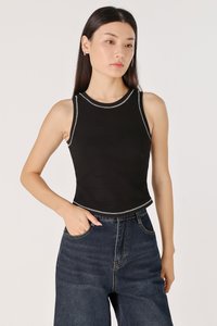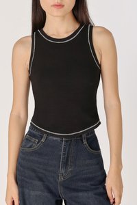 BRAILEY PADDED CONTRAST STITCH CURVED HEM RACER TOP (BLACK)