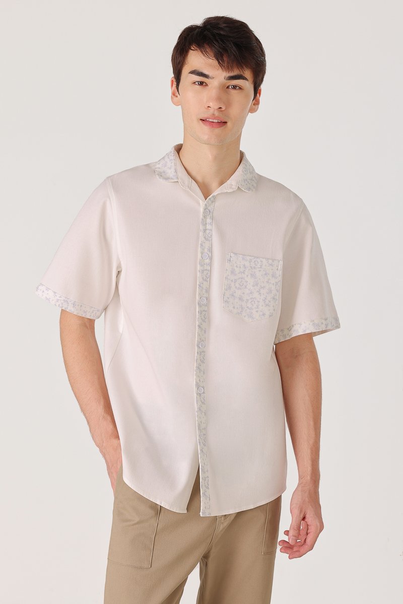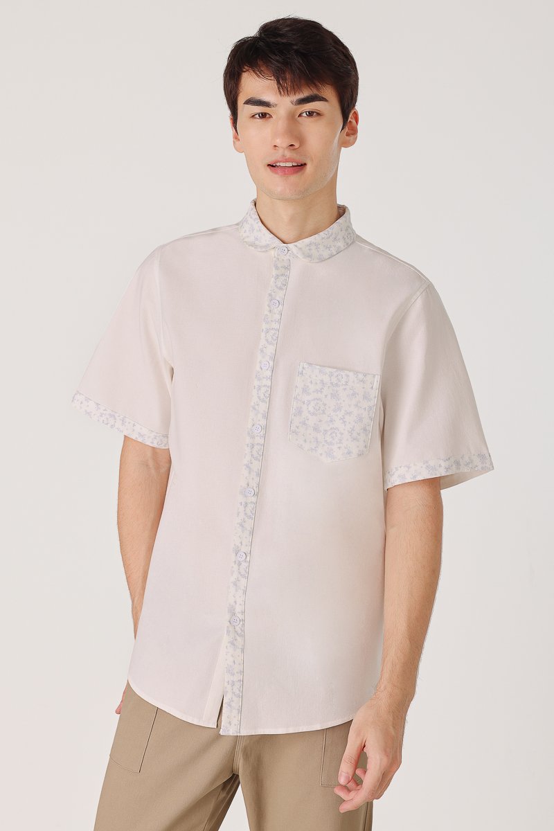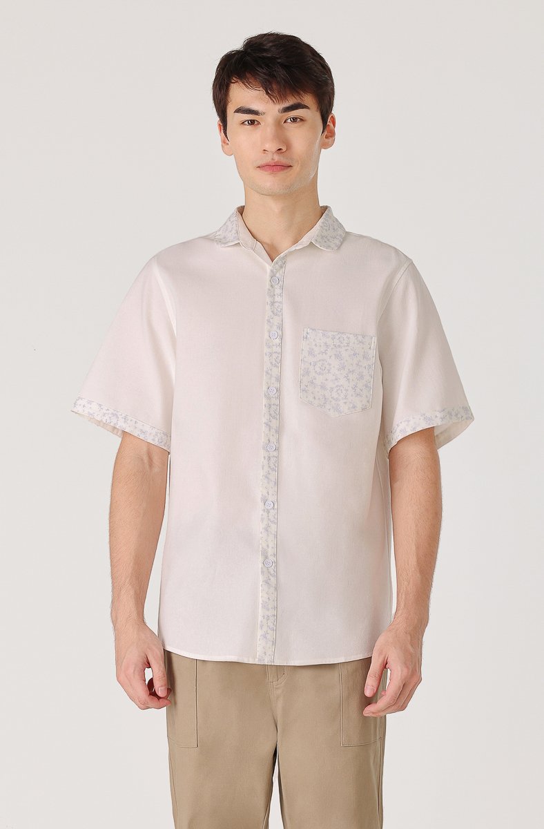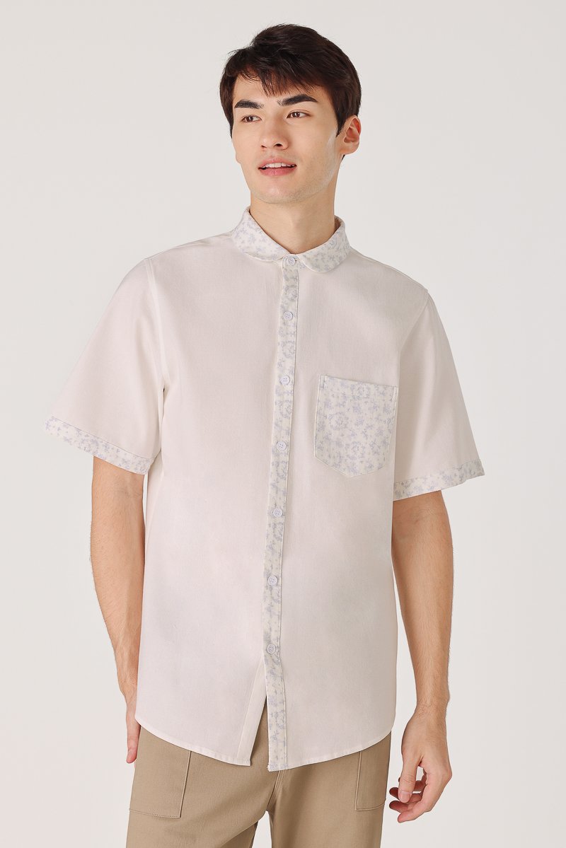 BRANDON LINEN FLORAL BUTTON CONTRAST BUTTON SHIRT