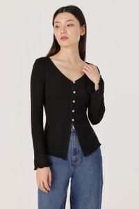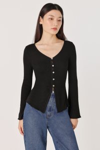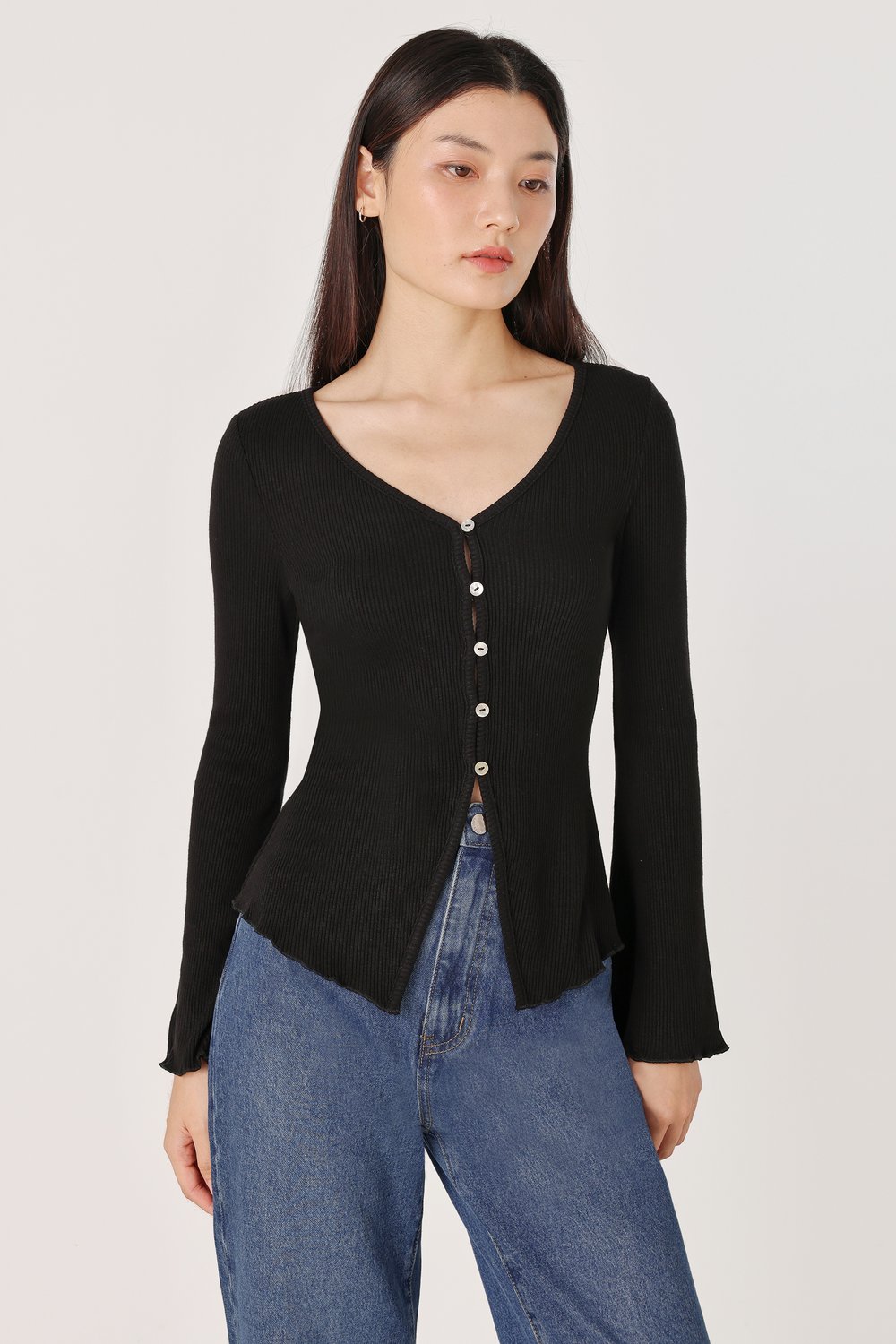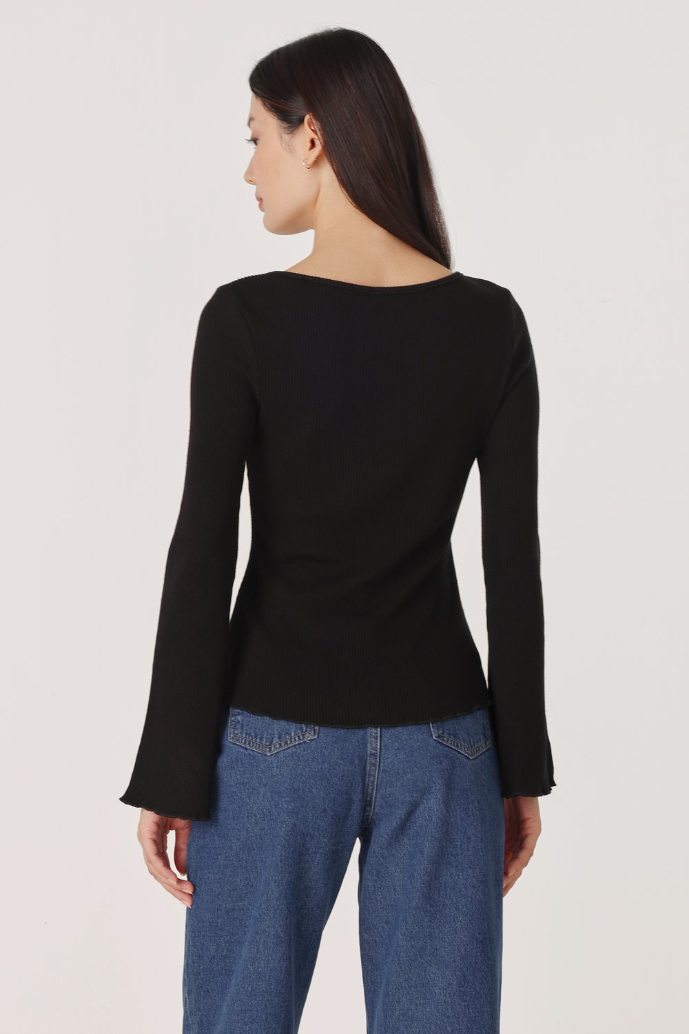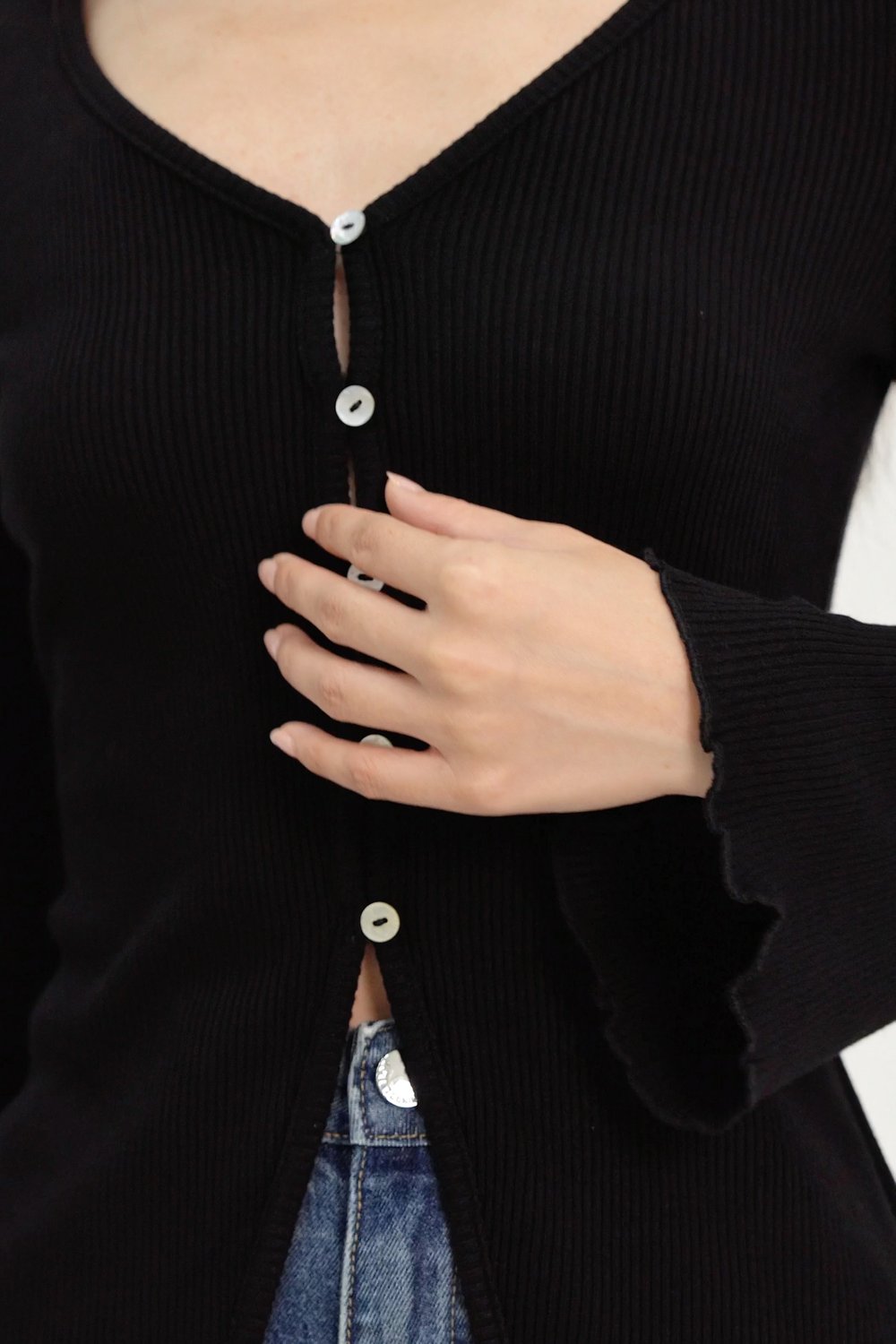 BREA RIBBED LONGLINE SHELL BUTTON FLARE SLEEVE TOP (BLACK) *BFF*