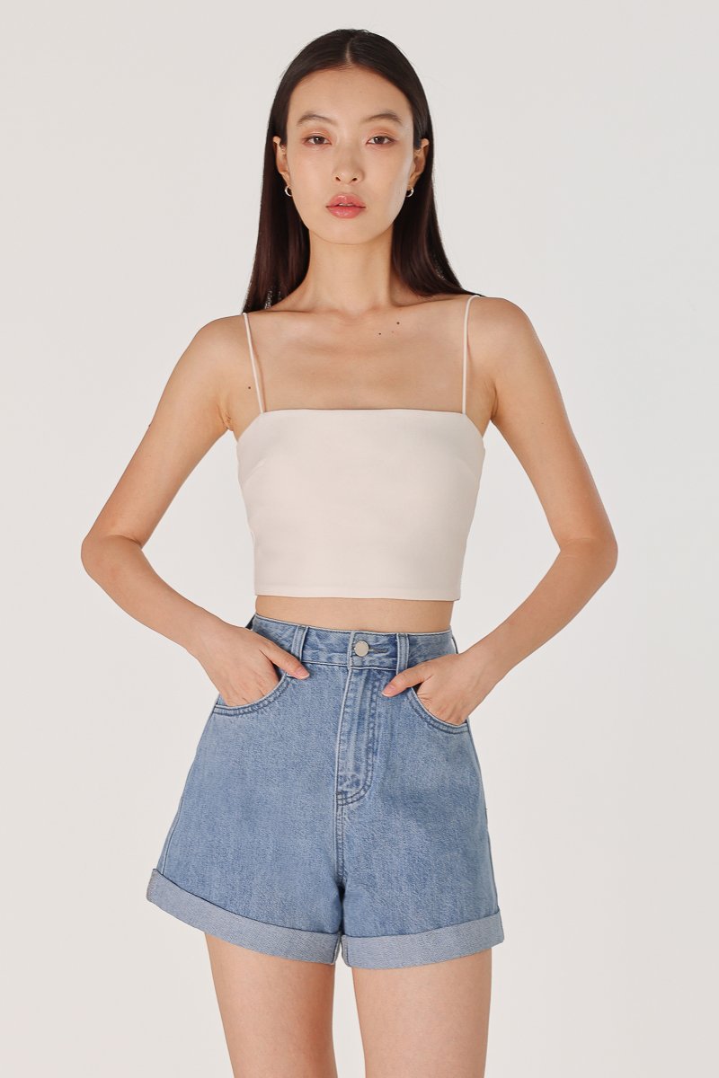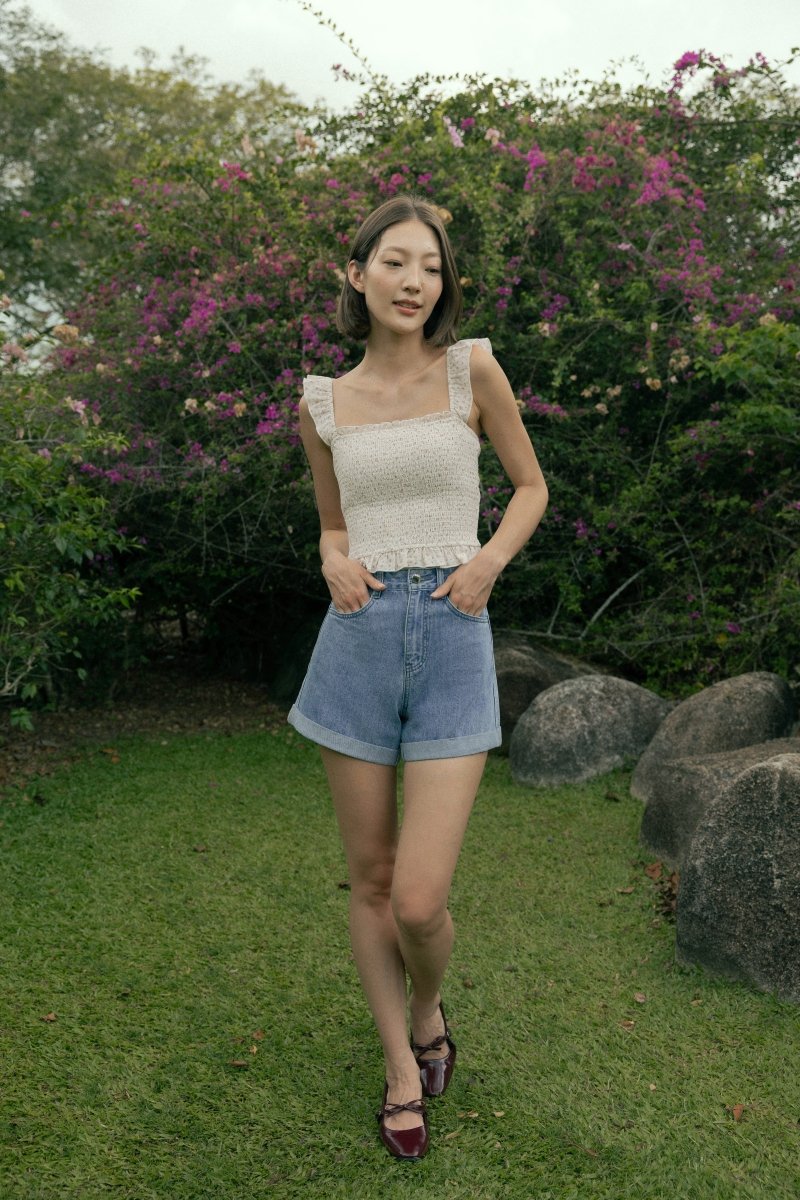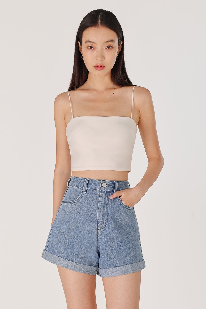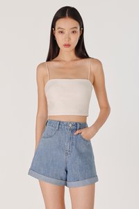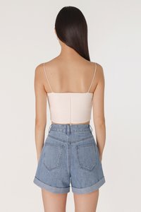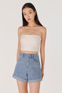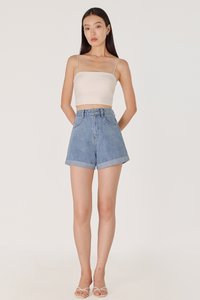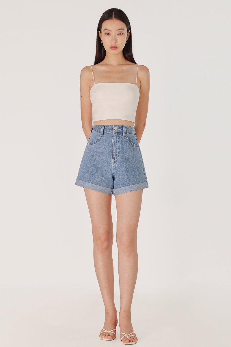 BREEZY CUFFED HEM DENIM SHORTS (LIGHT WASHED)
