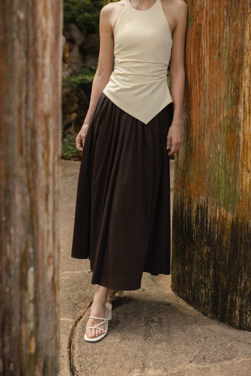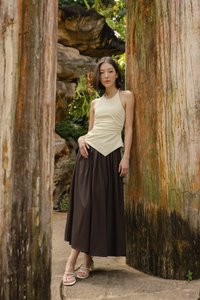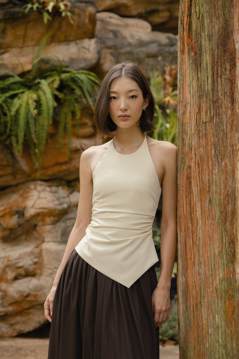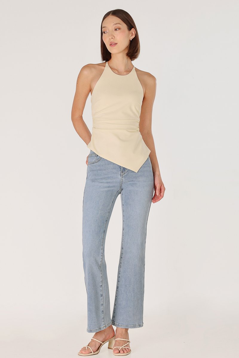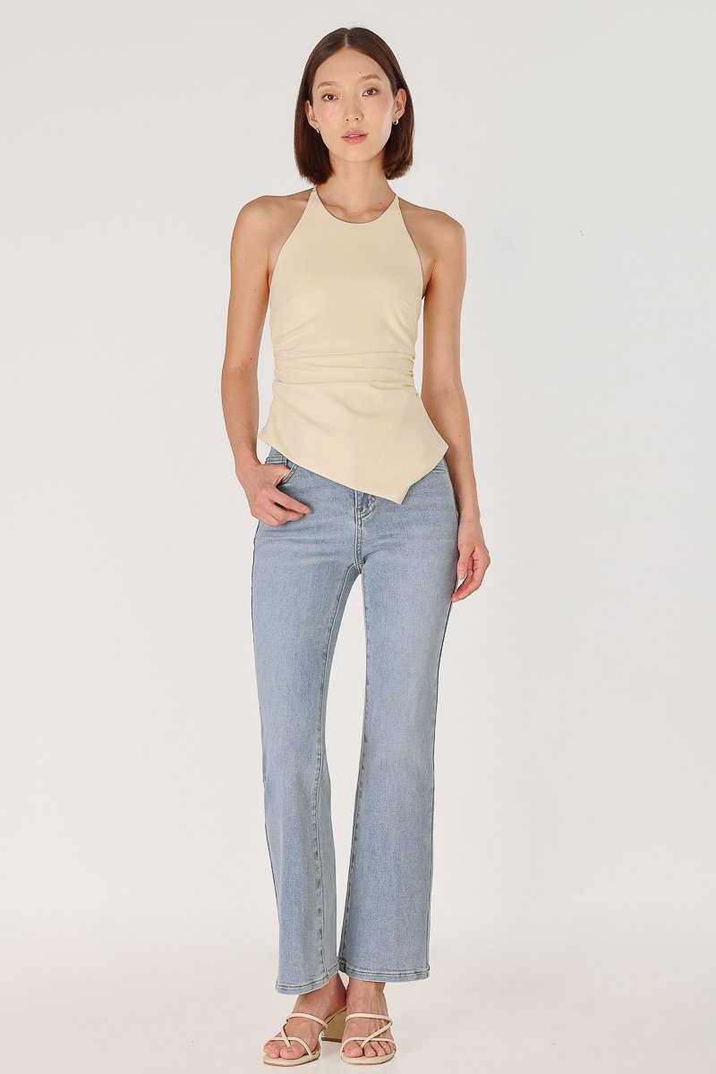 BRYNNE PADDED HALTER TIE RUCHED ASYMMETRICAL HEM TOP (YELLOW)