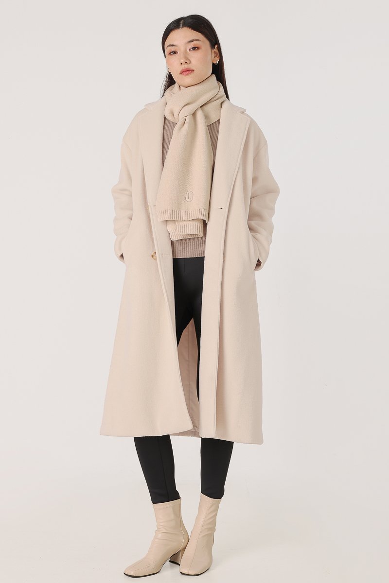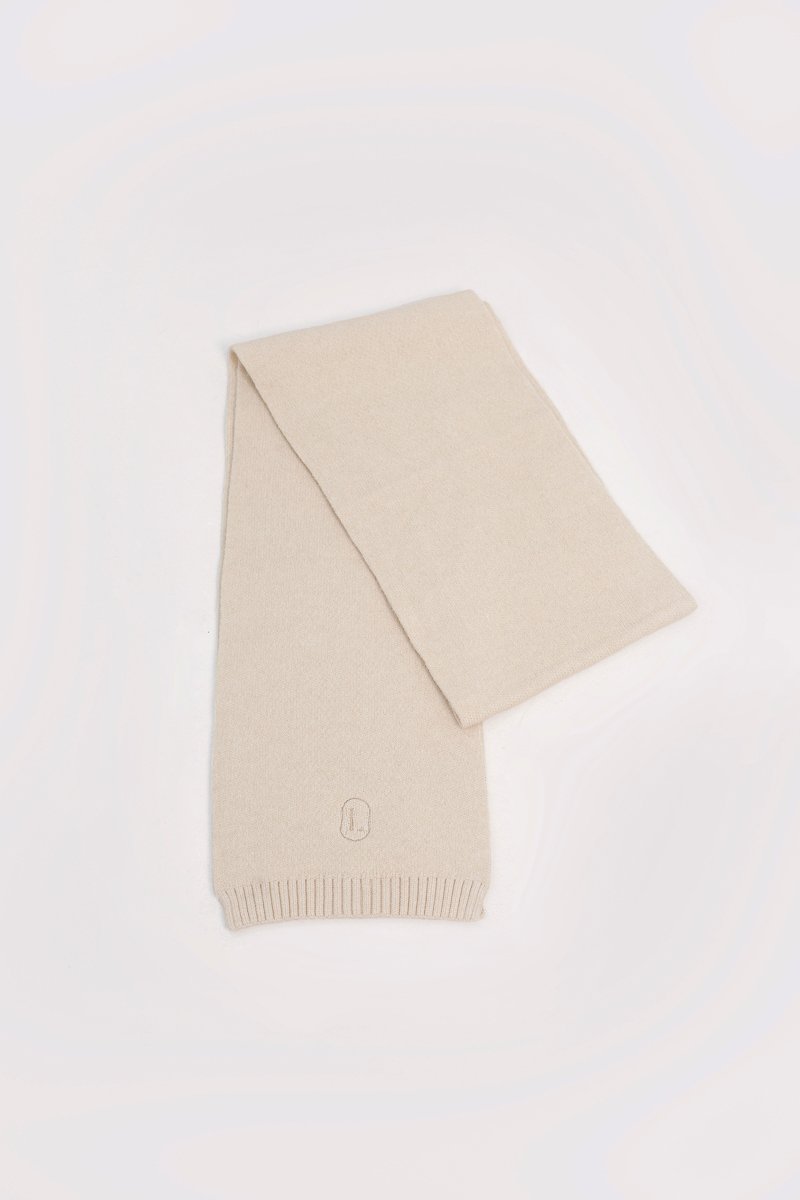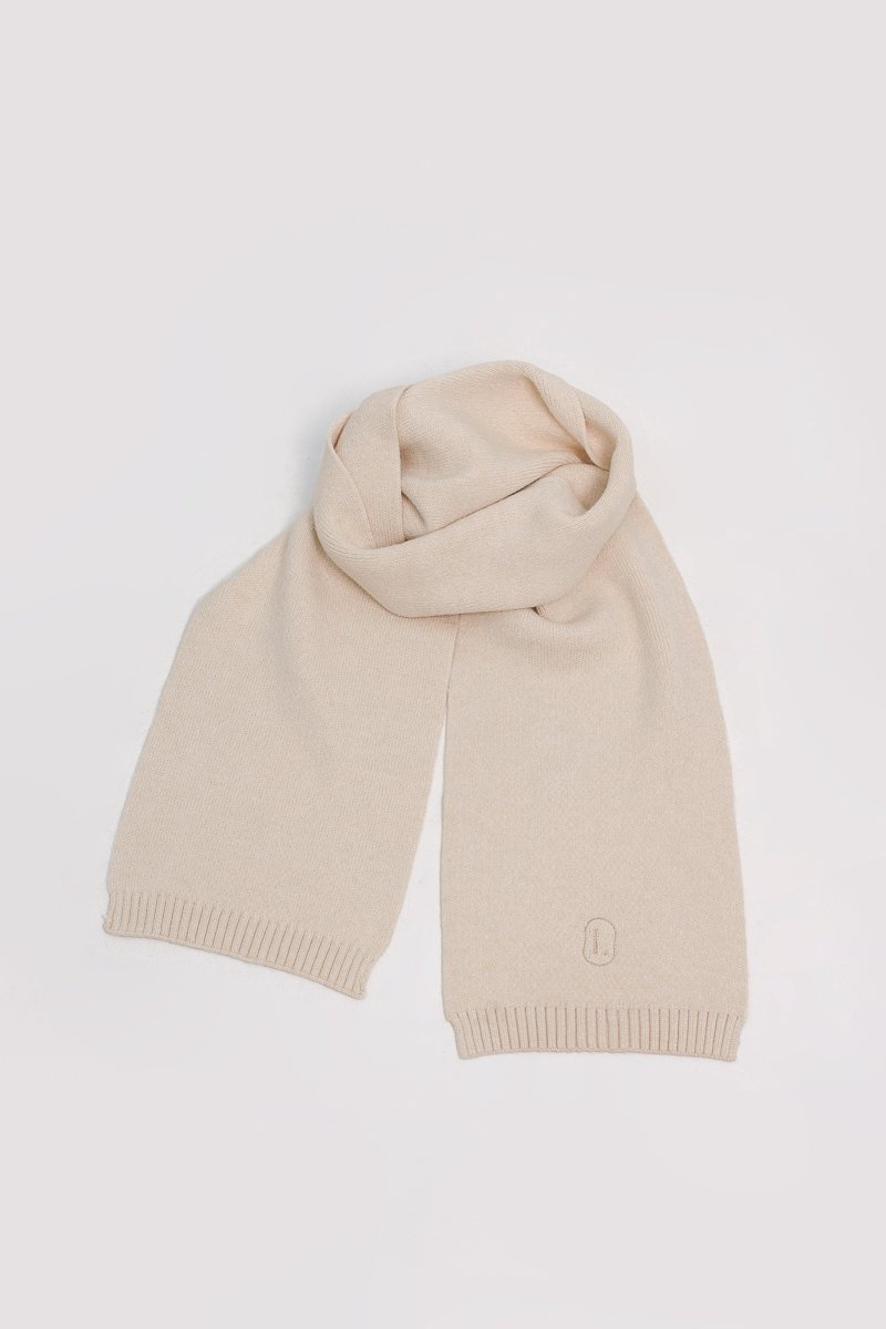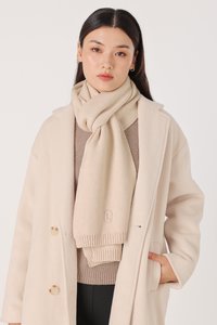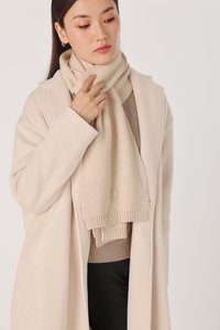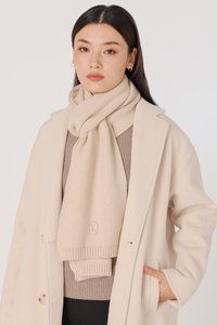 CAELYN EMBROIDERED EMBLEM KNIT SCARF (HEATHER OAT)