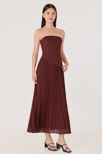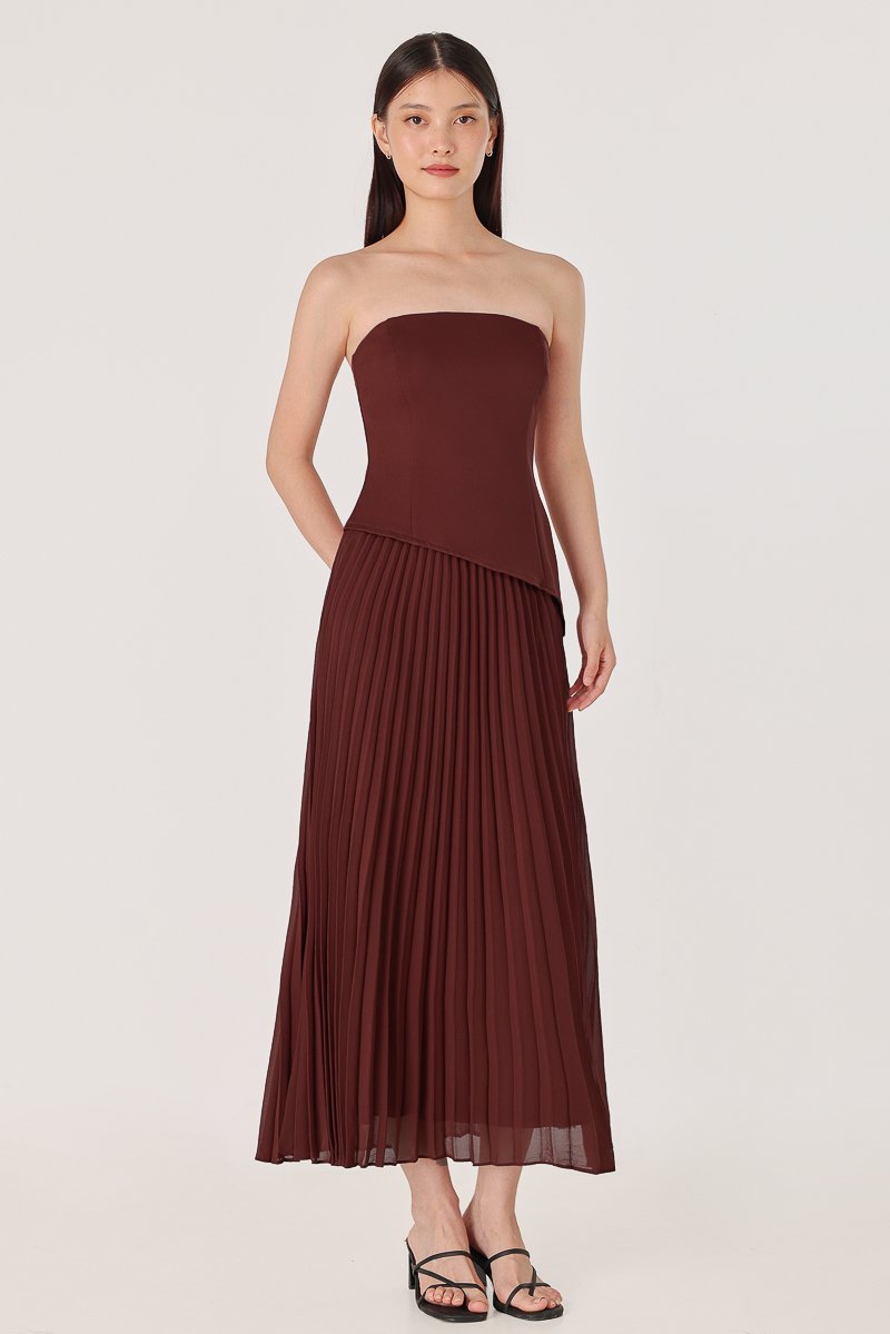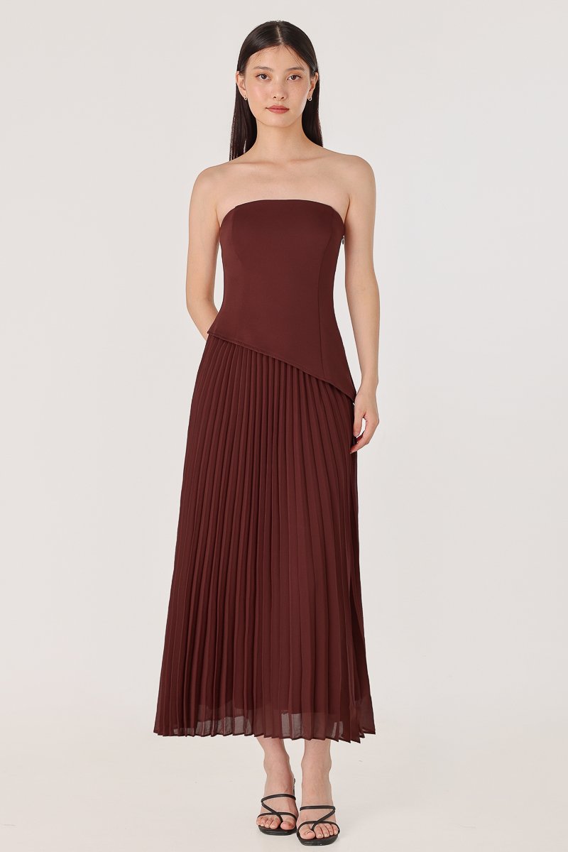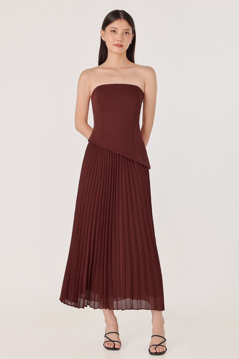 CELESTIA PADDED SLANT HEM CONTRAST FABRIC TWO-WAY MIDAXI DRESS