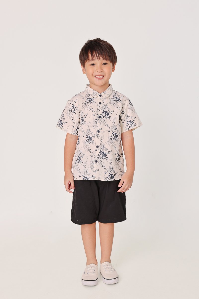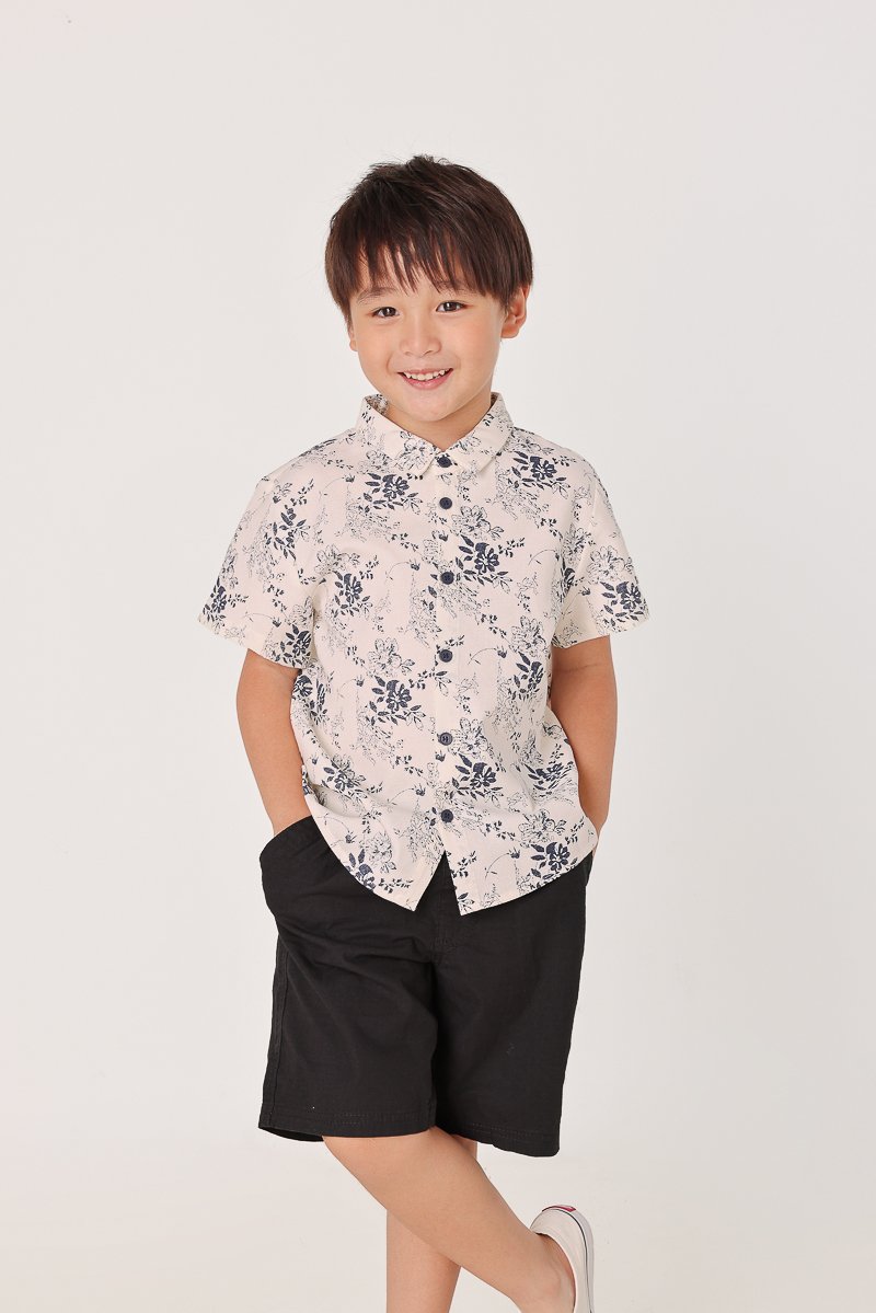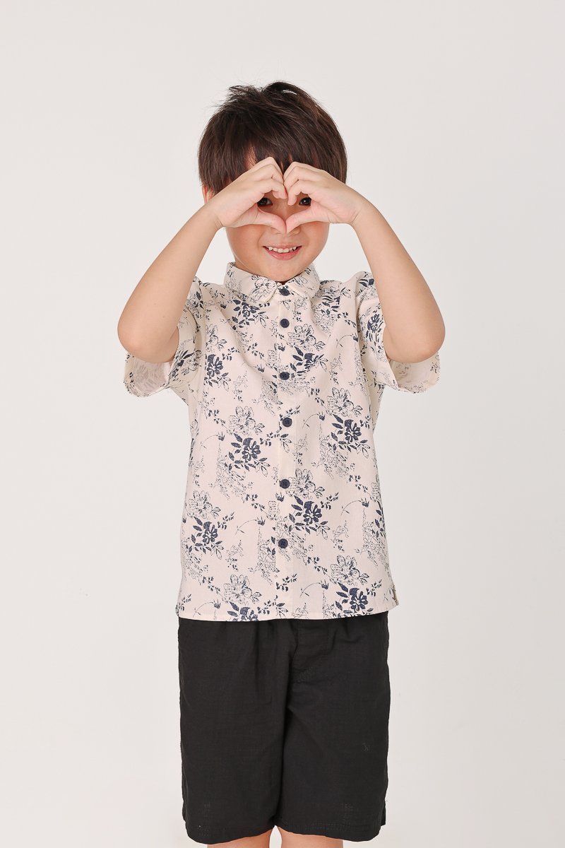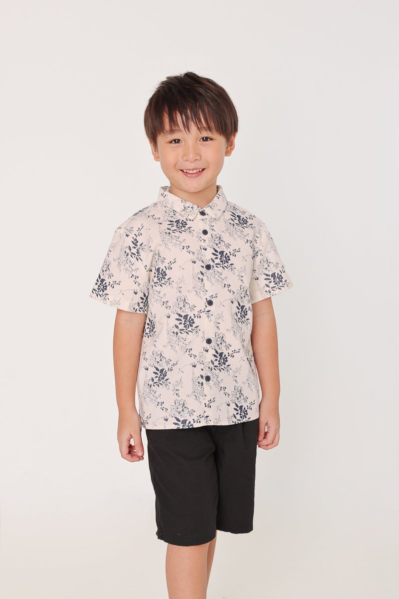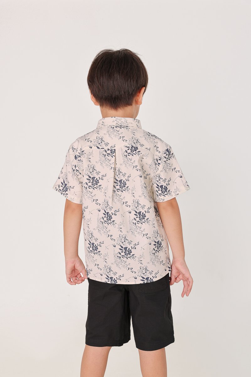 CHASE LINEN FLORAL CONTRAST BUTTON COLLARED SHIRT - MINI BOY