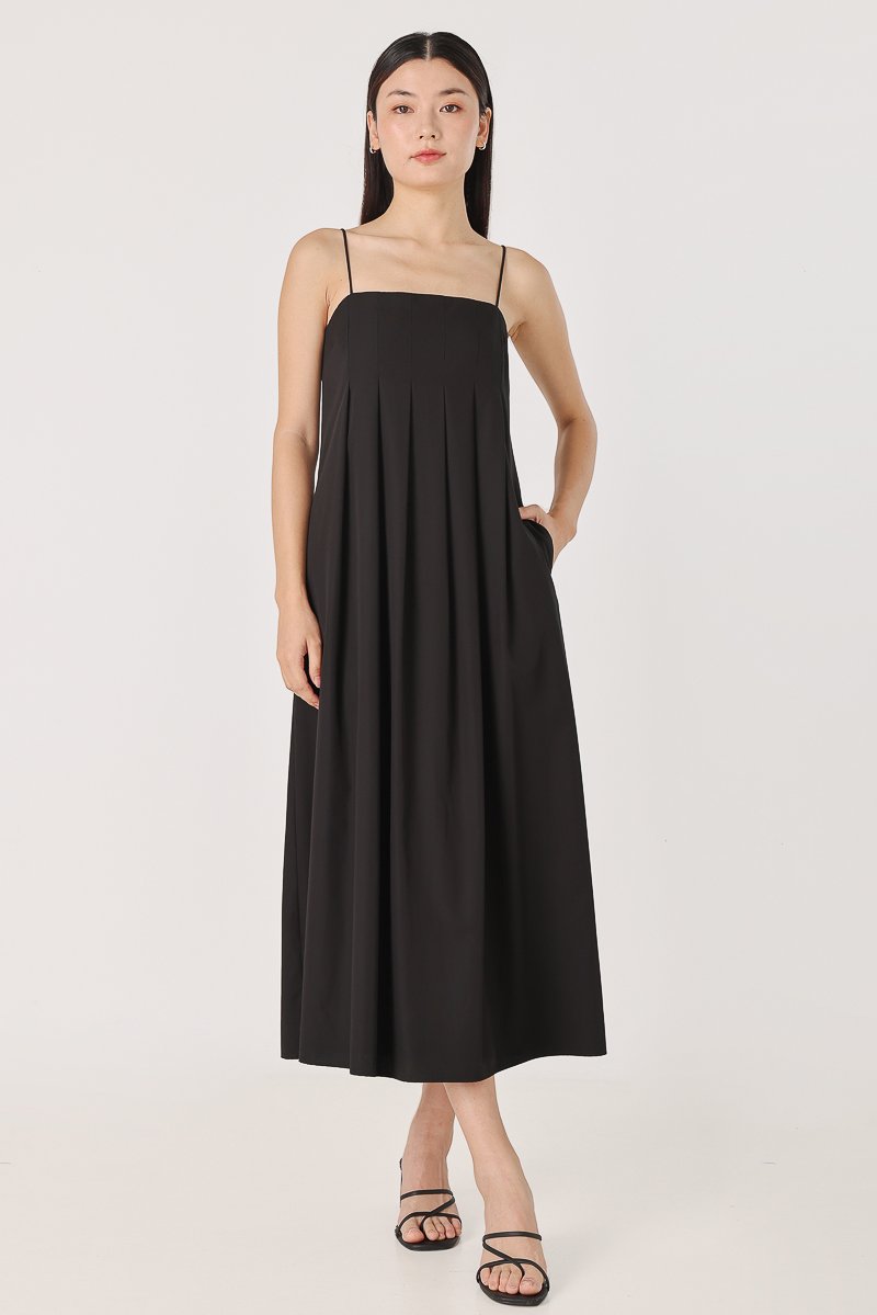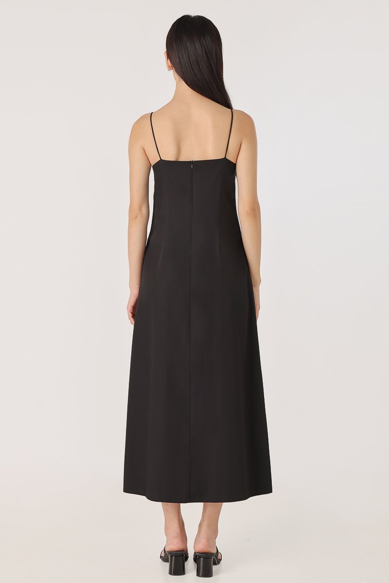 CLARICE PADDED PANELLED MIDAXI DRESS (BLACK) *BFF*