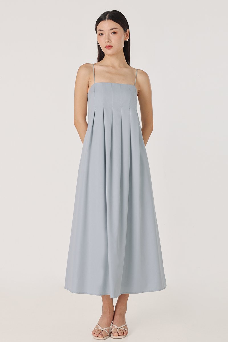 CLARICE PADDED PANELLED MIDAXI DRESS (DOVE BLUE) *BFF*