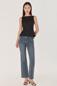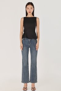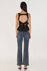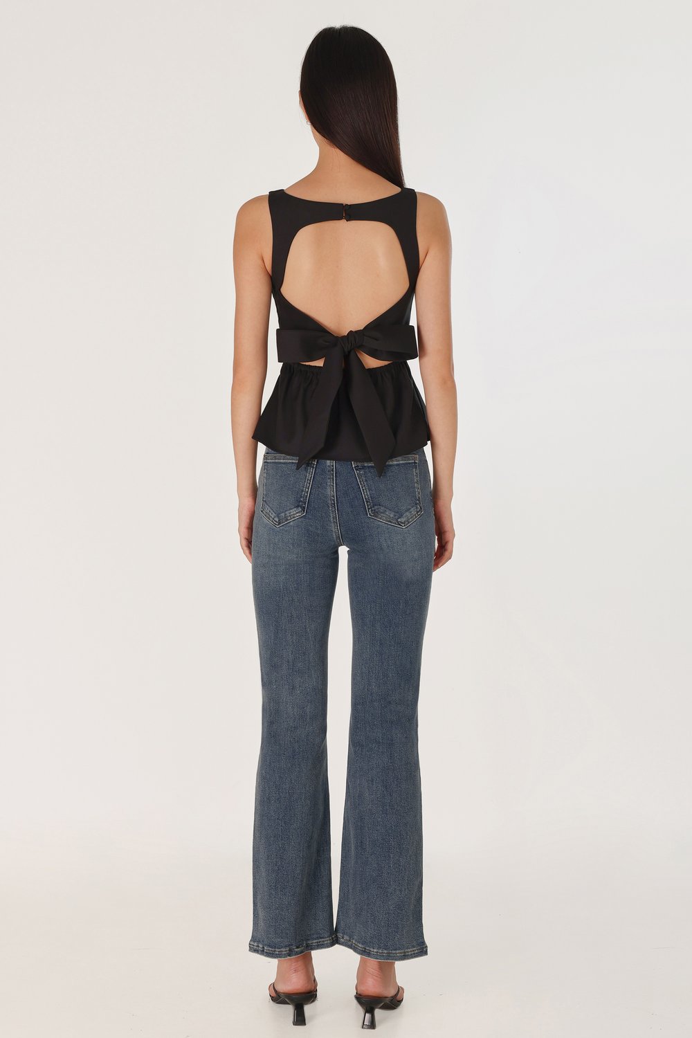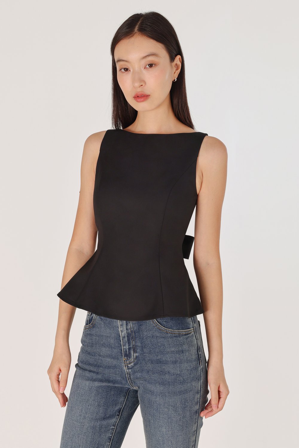 CLAUDETTE PADDED BOATNECK BACK CUT-OUT RIBBON TIE-BACK TOP (BLACK)