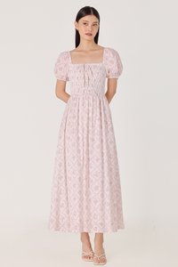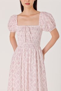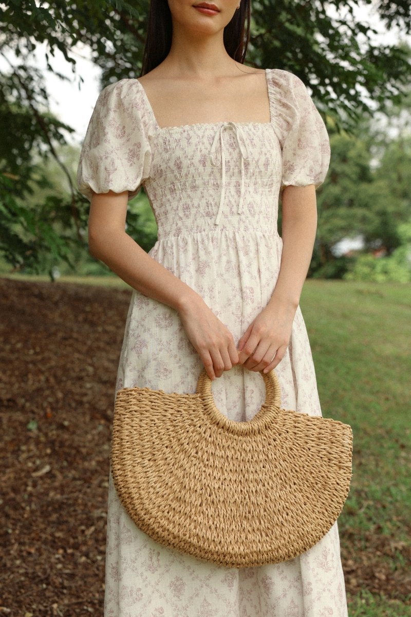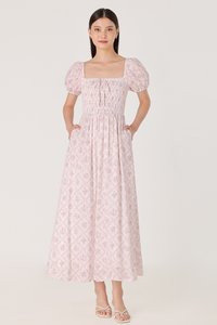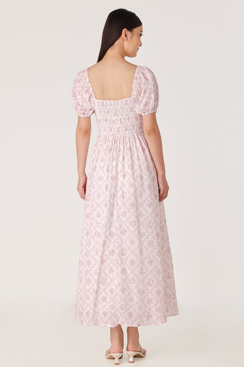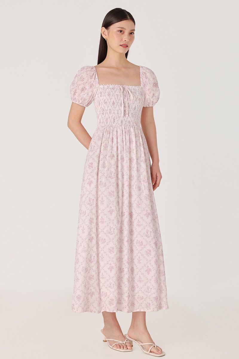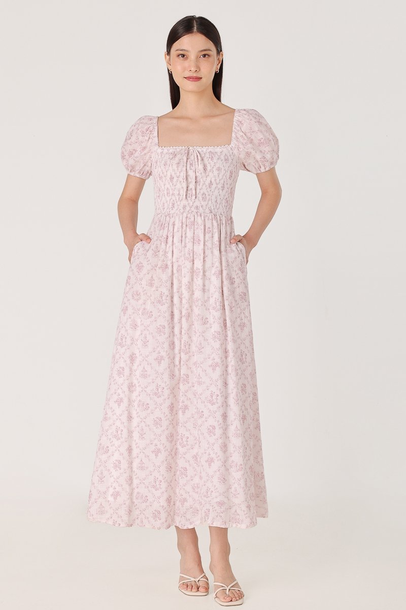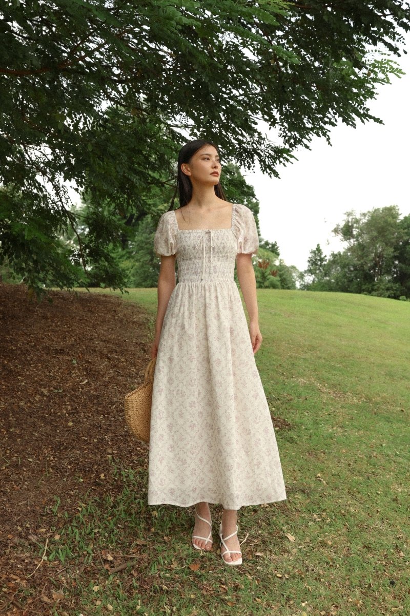 DAHLIA FLORAL SMOCKED RIBBON PUFF SLEEVE MAXI DRESS