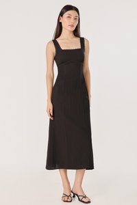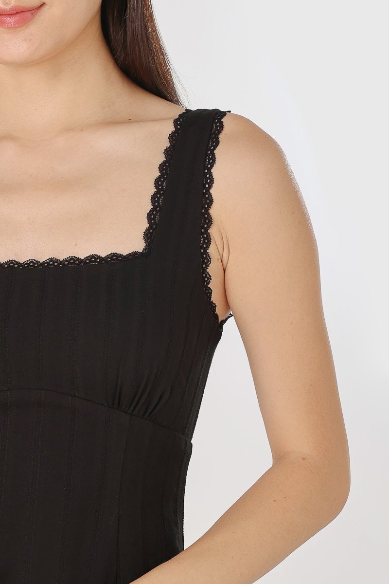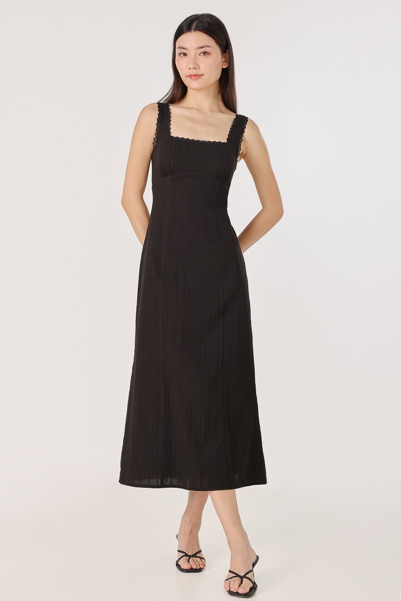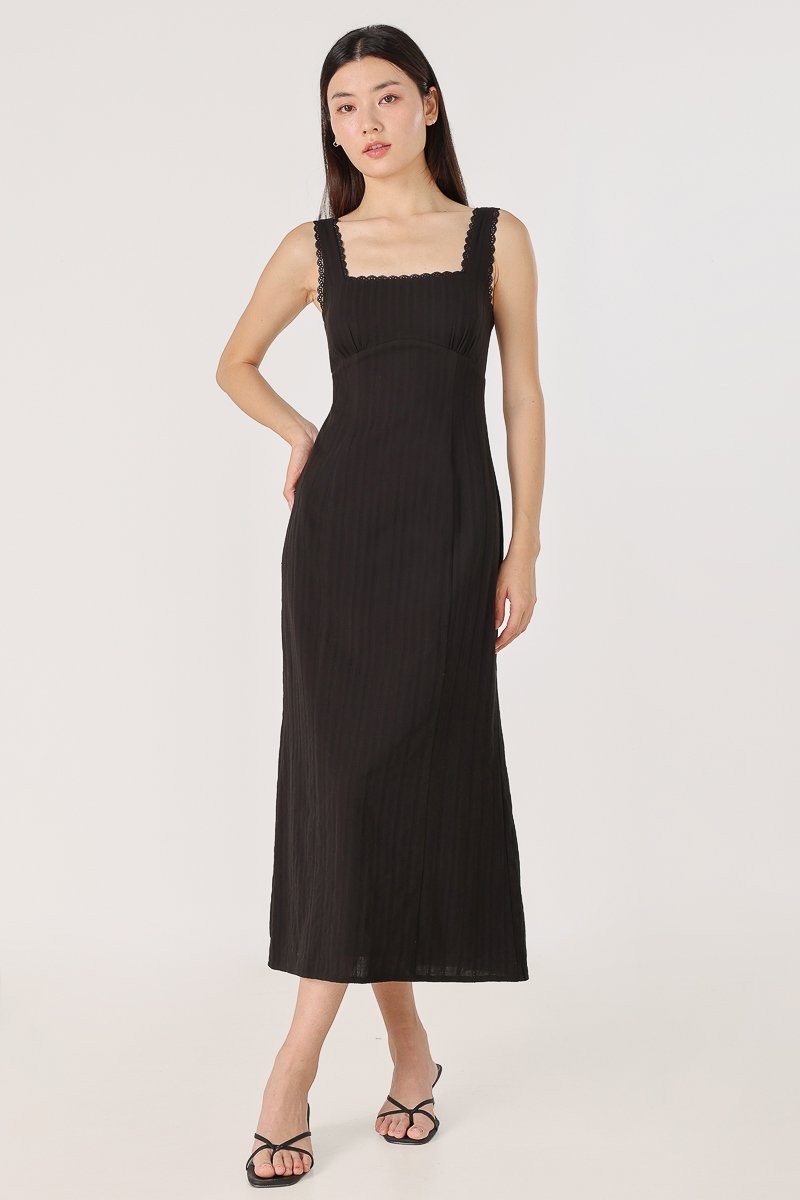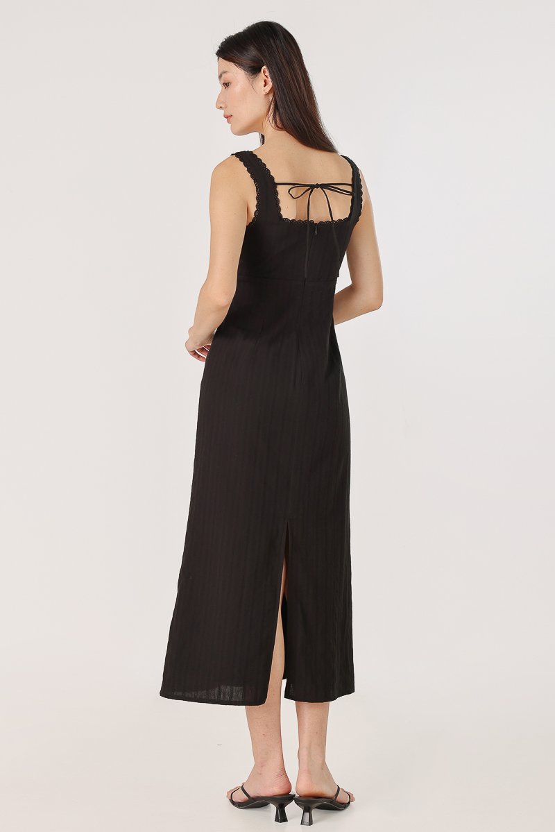 DASHA PADDED TEXTURED LACE TRIM MIDAXI DRESS (BLACK)