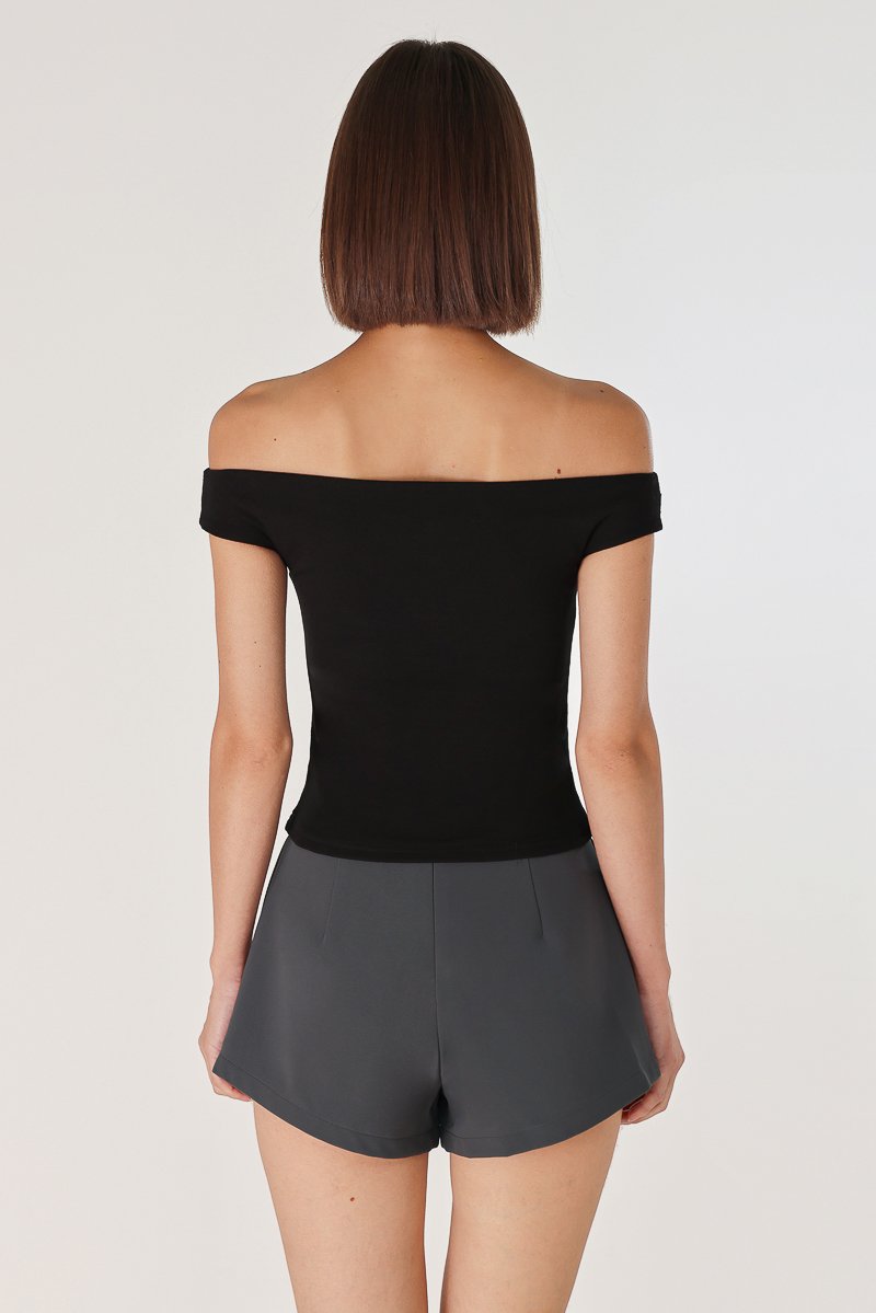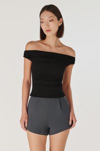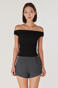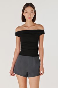 DELINA PADDED RUCHED OFF-SHOULDER TOP (BLACK)