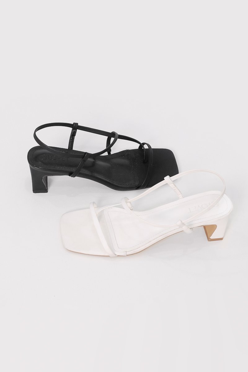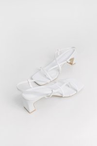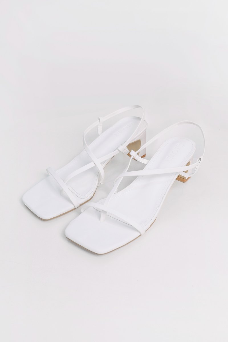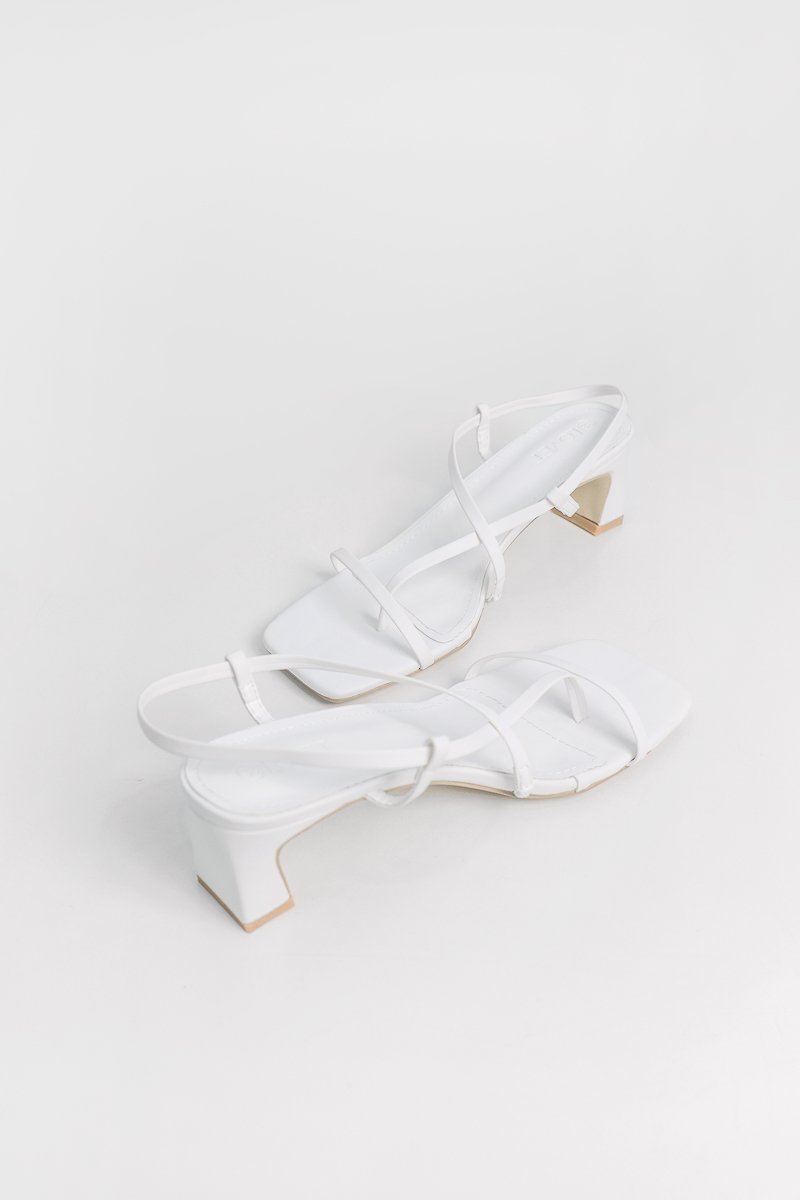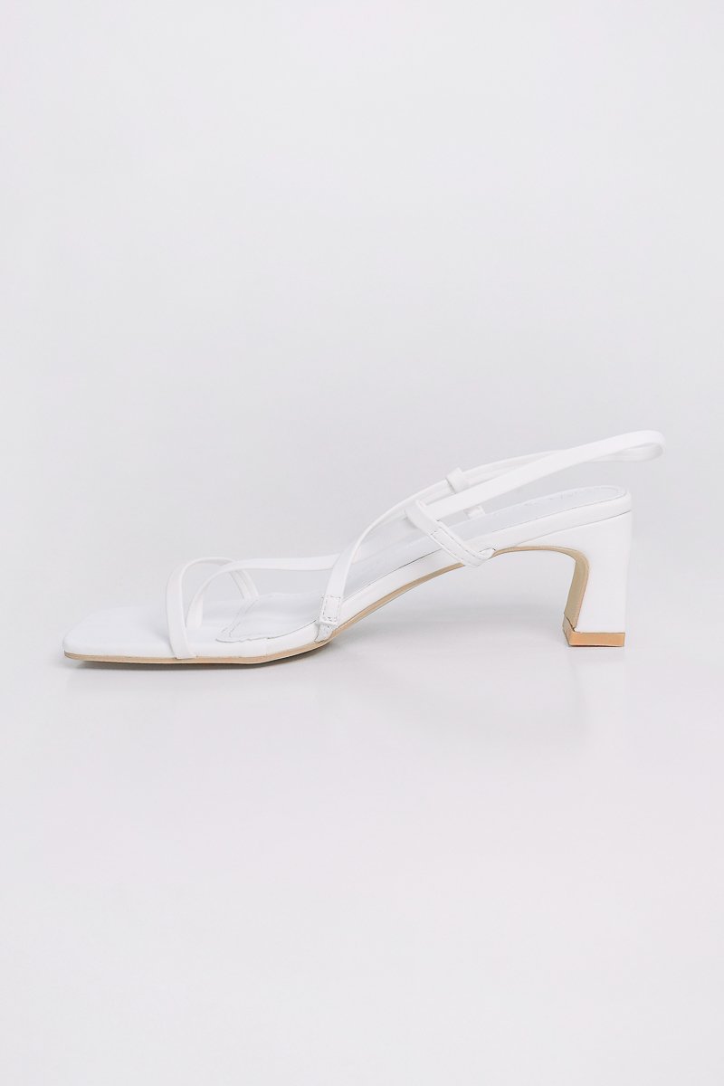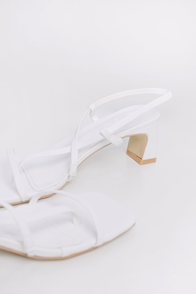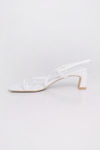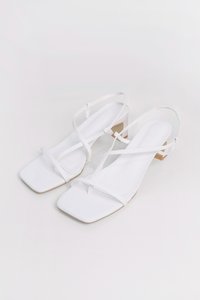 DESHELLY ASYMMETRICAL STRAP SLINGBACK HEELS (WHITE)