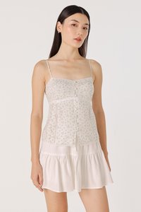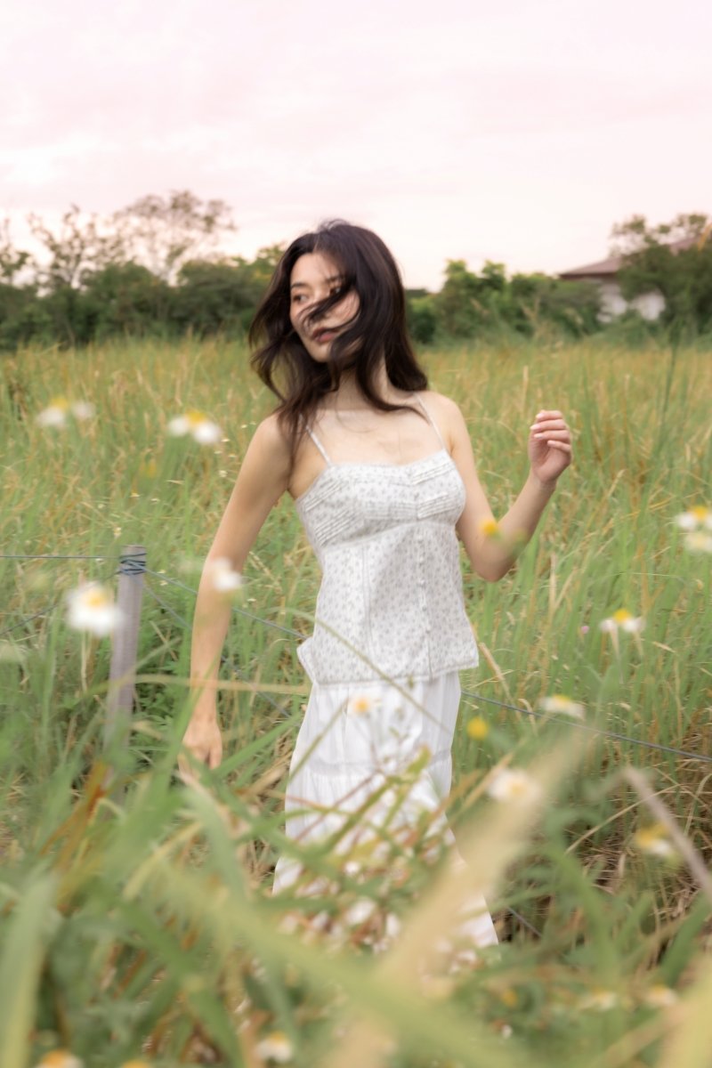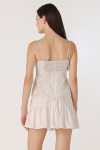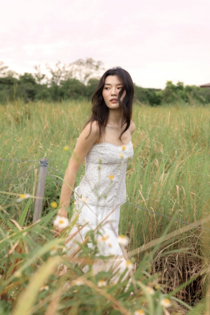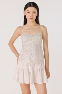 A whisper of lace, a touch of charm. Dilyenne is crafted from cotton blend, adorned with lace trimmings on the neckline and hem for a soft, feminine touch. Featuring non-adjustable buttons down the bust and made functional towards the hem for styling functionality, she also comes a stretchable smocked back for a stretchable fit. Secured with a concealed back zipper and removable padding for a clean and convenient finish.