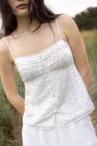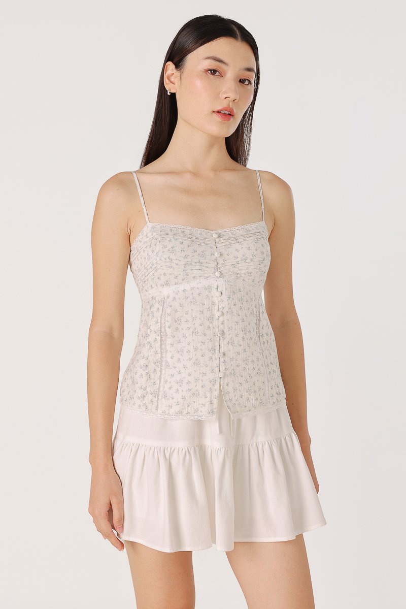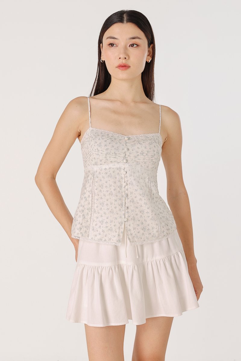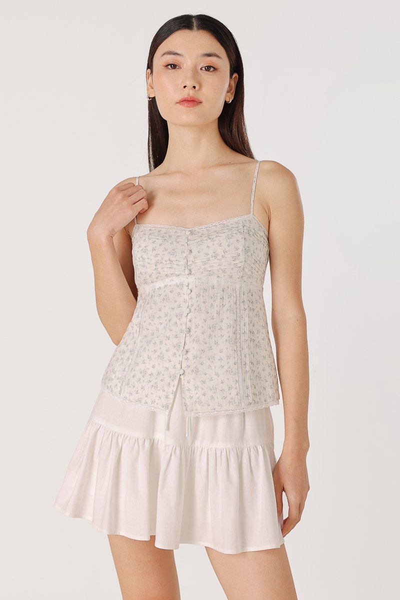DILYENNE PADDED LACE TRIM PINTUCK BUTTON TOP (BLUE FLORAL)