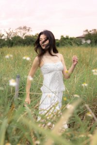 Model Du Yue UK6, 173.5cm (PTP 15.25", Waist 11.5") wears size S for tops/dresses/outerwears/one-pieces and size XS for bottoms.