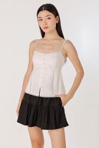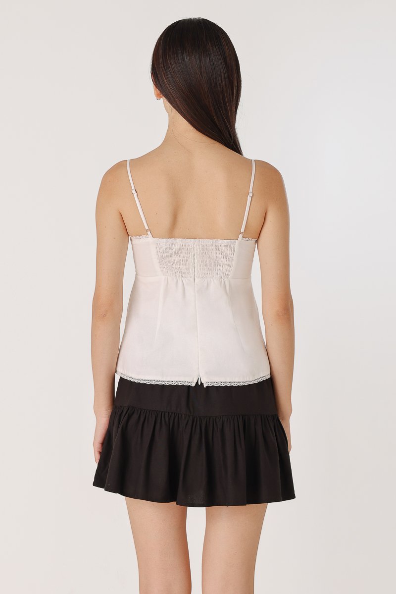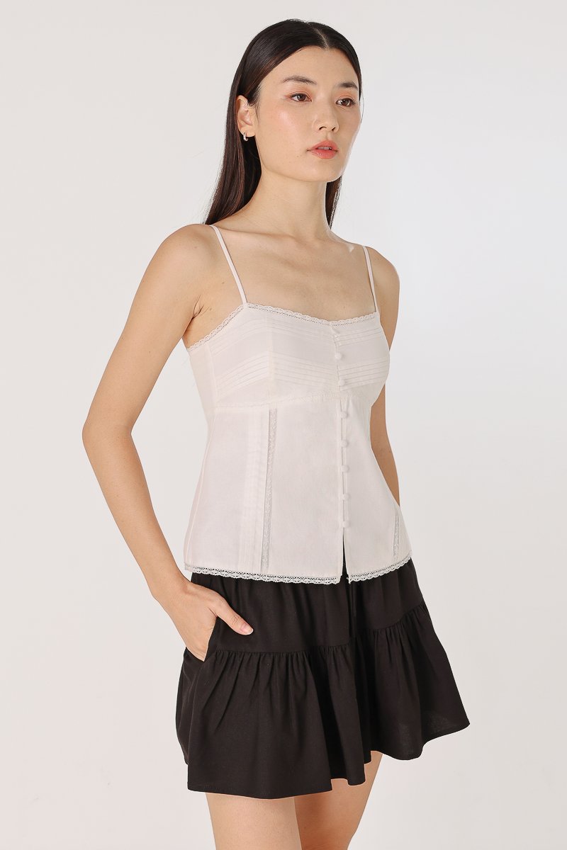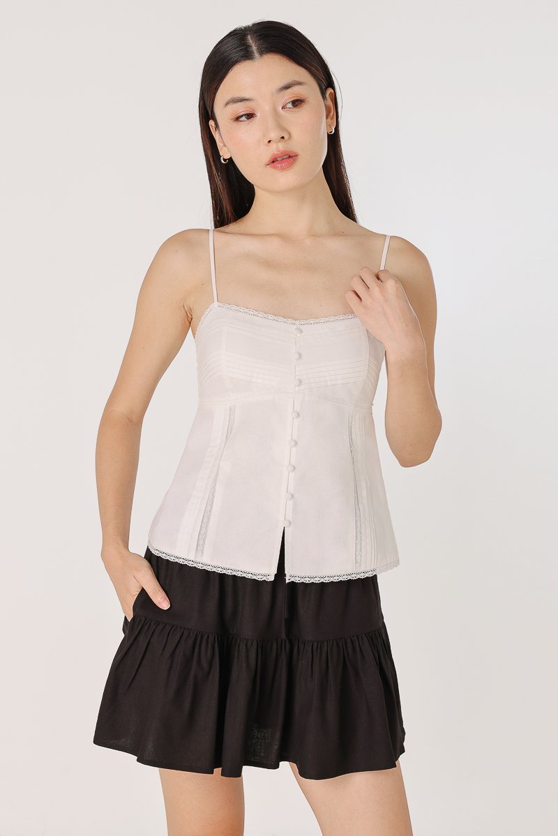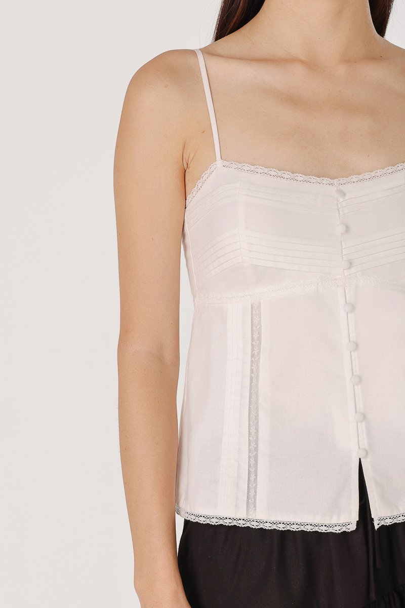 DILYENNE PADDED LACE TRIM PINTUCK BUTTON TOP (WHITE)