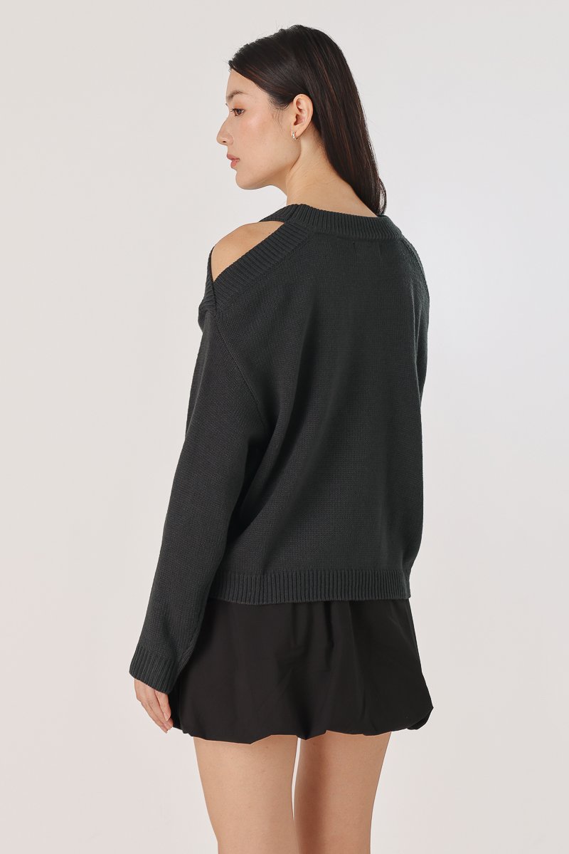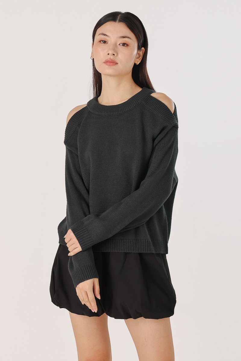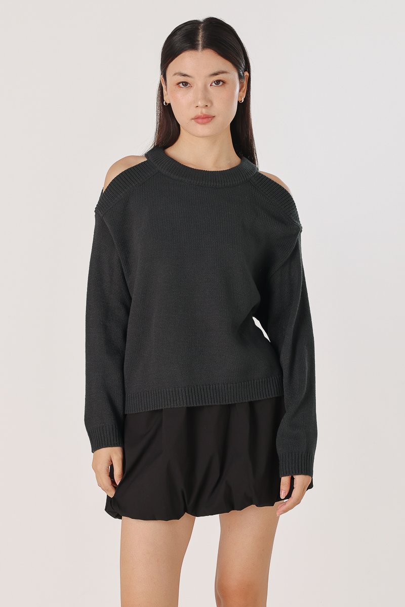 DONNA COLD SHOULDER PULLOVER KNIT TOP (GUNMETAL) *BFF*