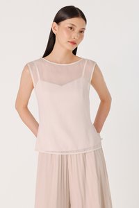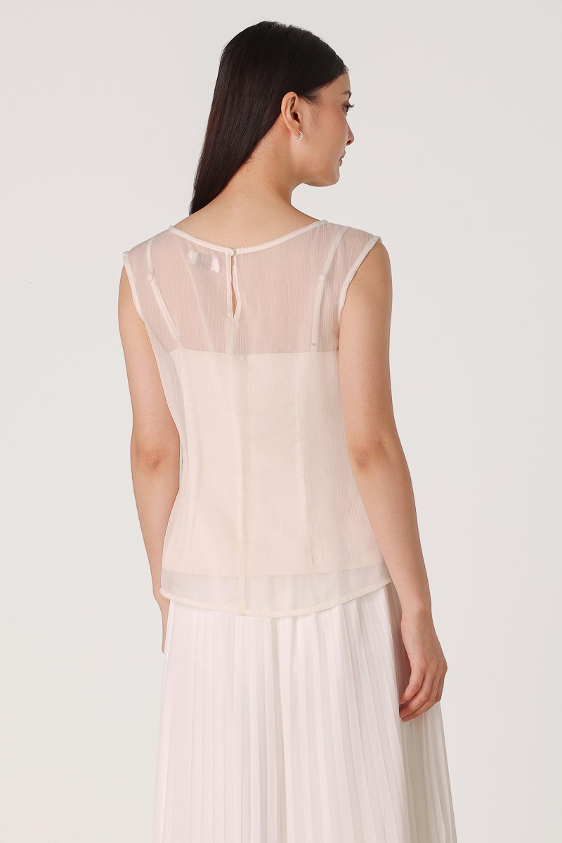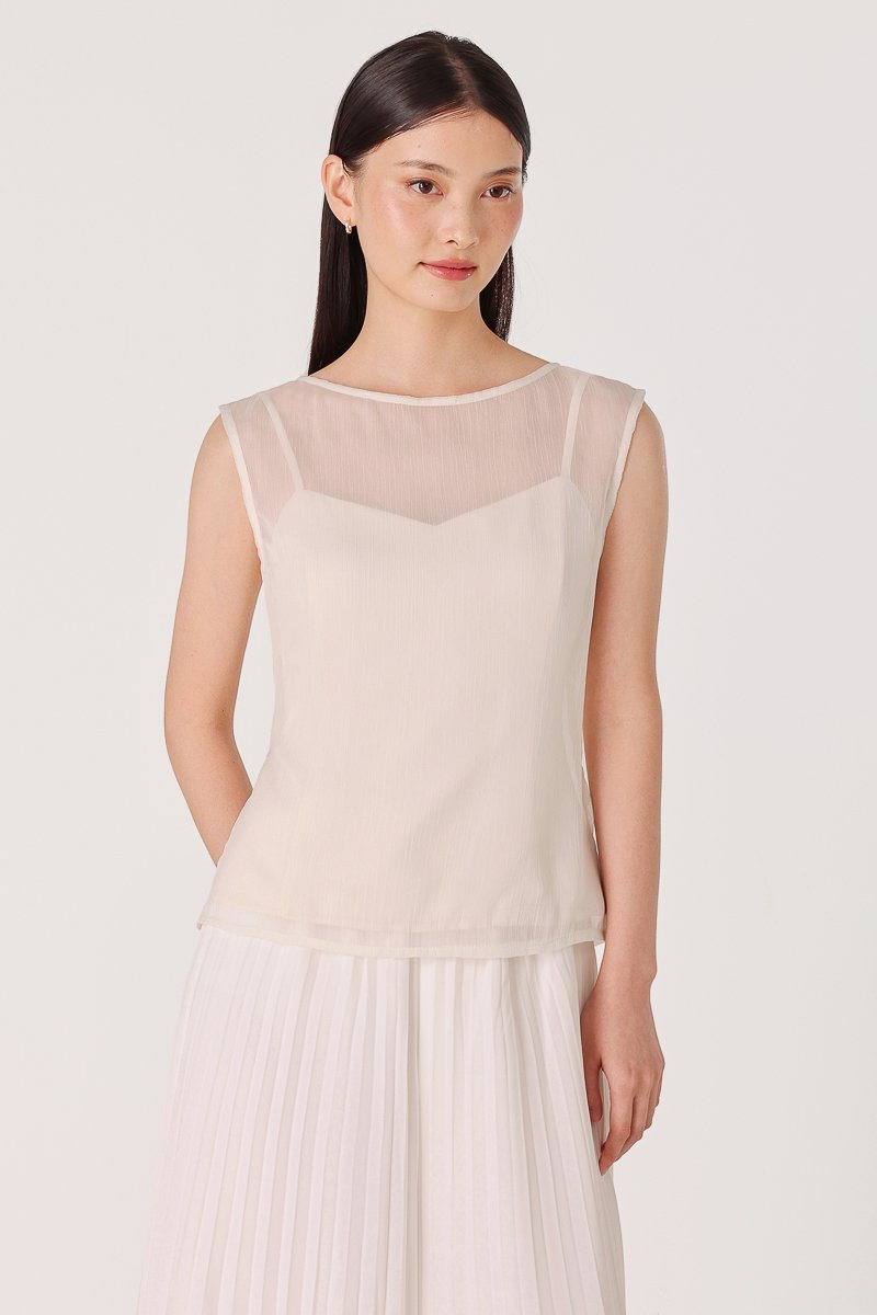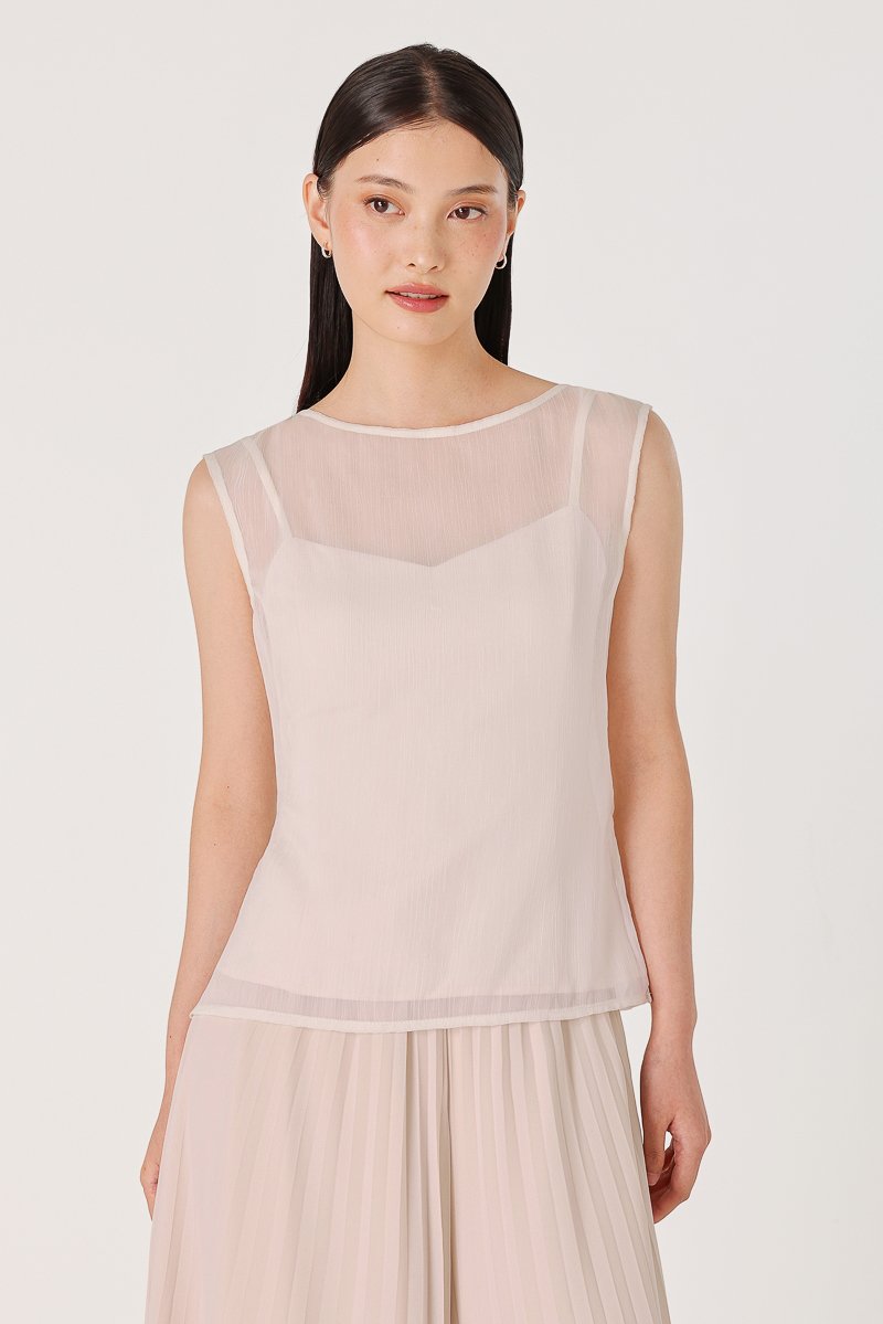 ELISSE PADDED SHEER OVERLAY TWO-PIECE CAMI TOP (CHAMPAGNE)