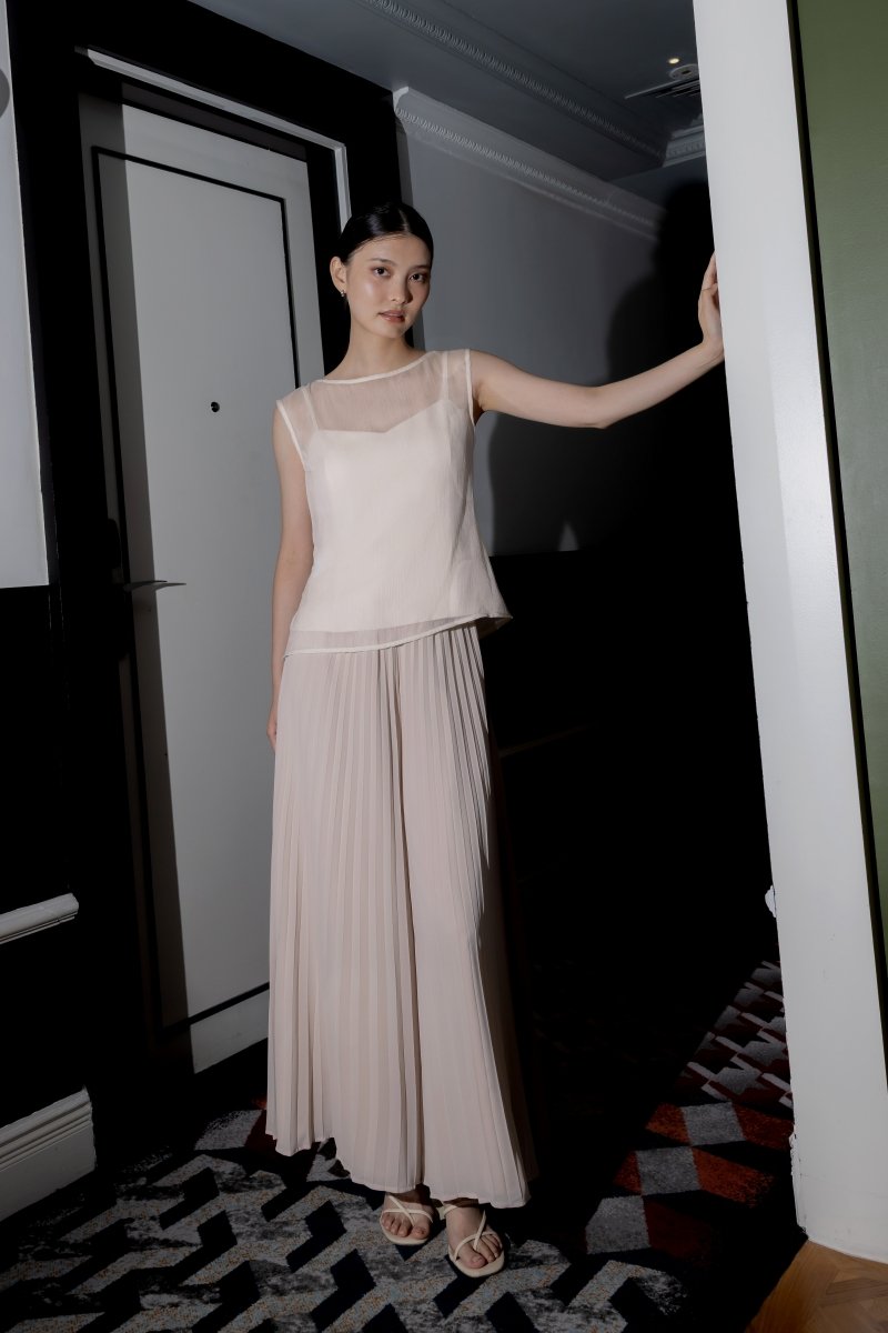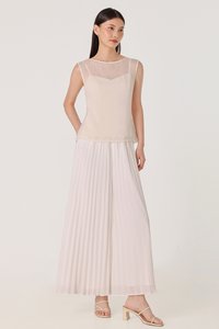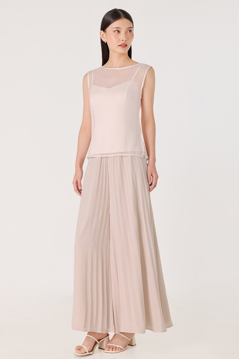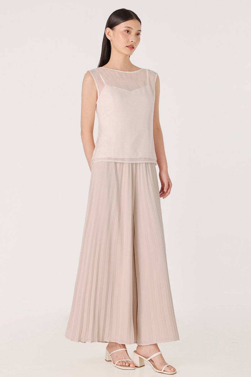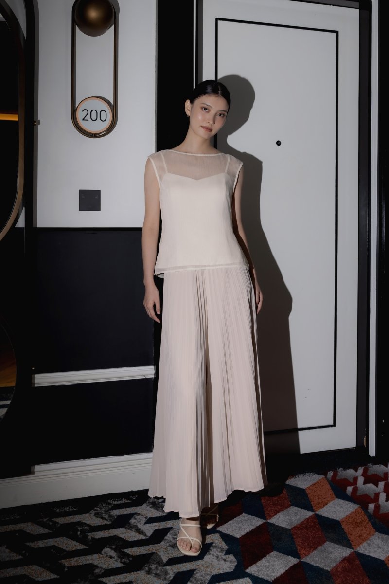 ELISSE PADDED SHEER OVERLAY TWO-PIECE CAMI TOP (CHAMPAGNE)