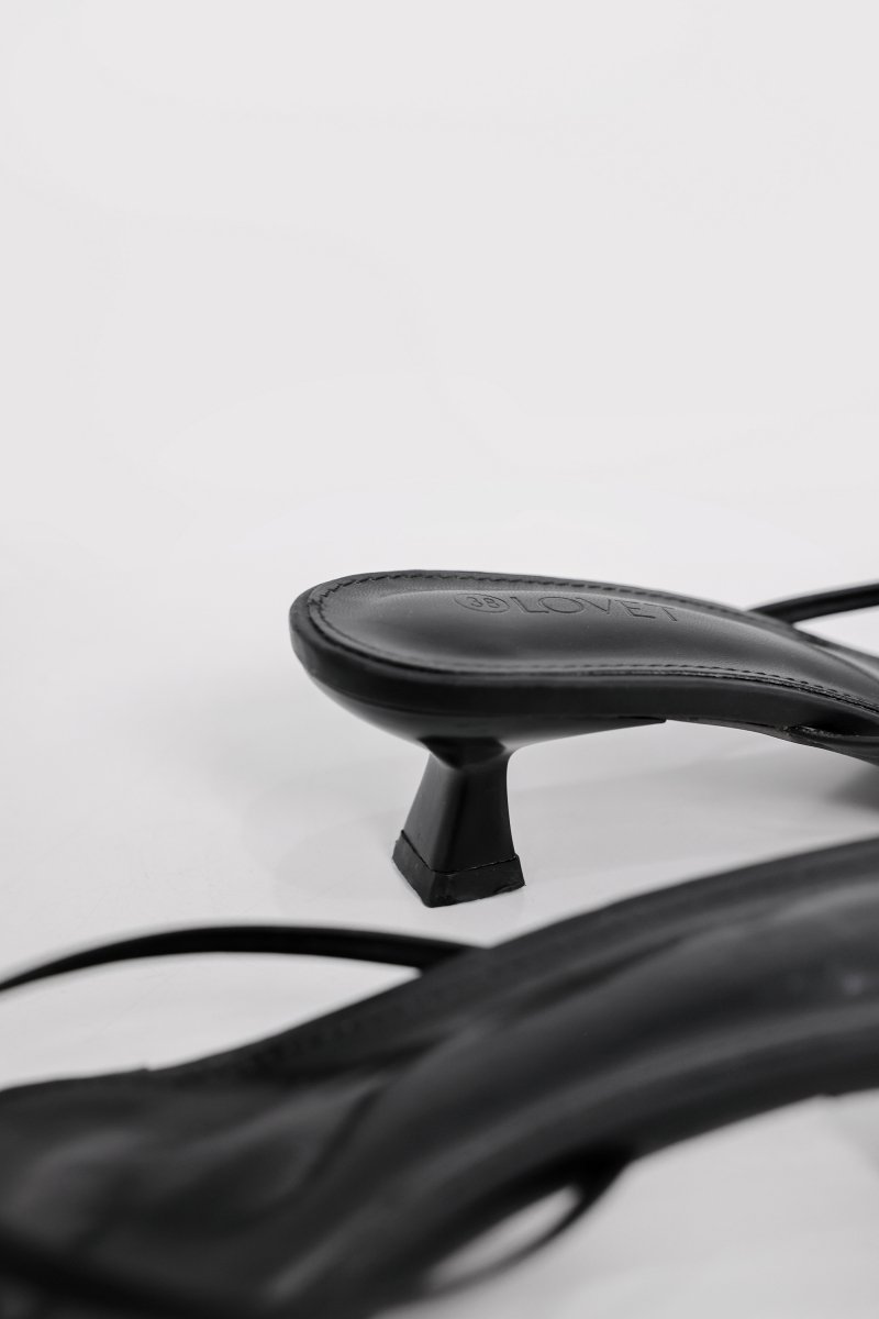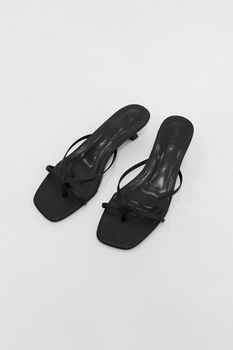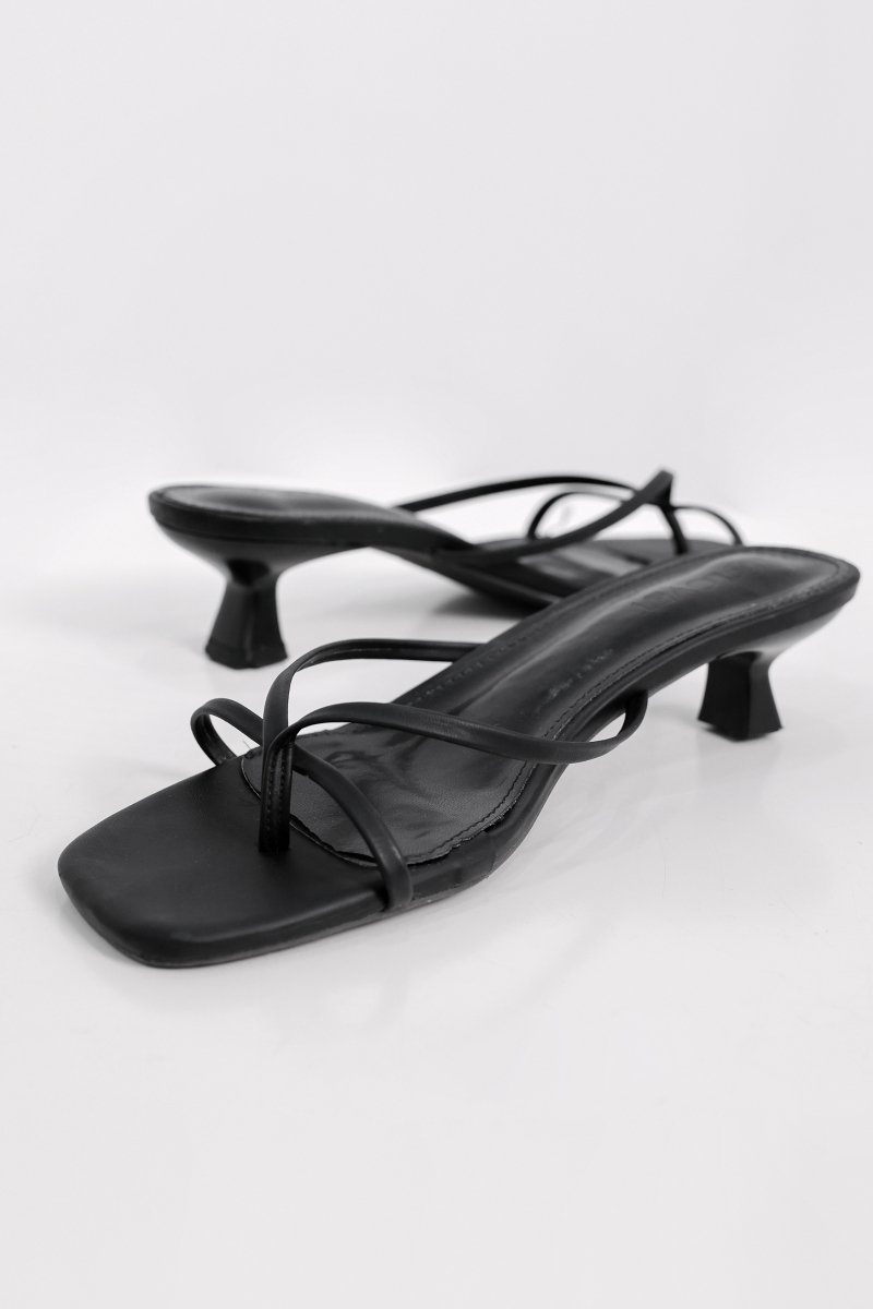 ELLERIA STRAPPY SLIP-ON KITTEN HEELS (BLACK)