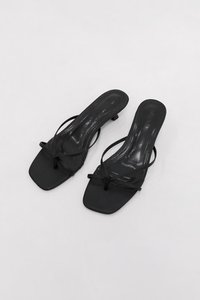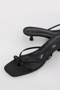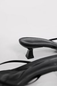 Sleek and minimal with just the right amount of edge. Elleria features delicate strappy details and a toe loop that adds interest without fuss. Designed with a low kitten heel and padded soles for added comfort, it is the kind of heels that pull any outfit together with ease.