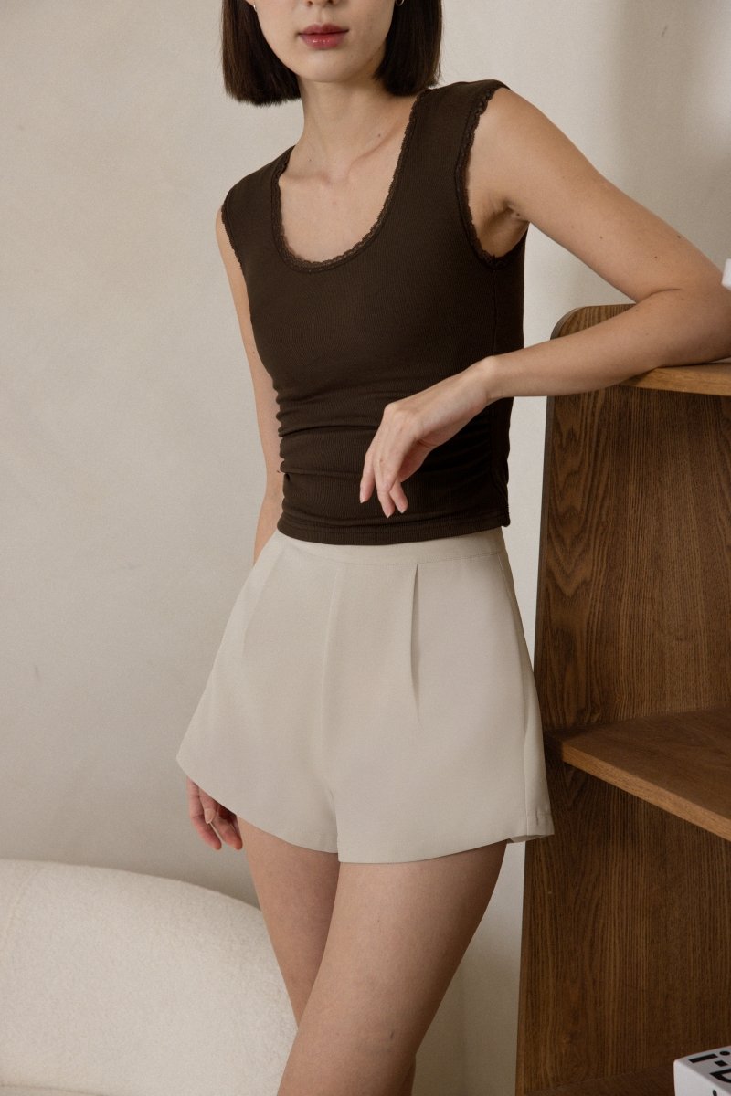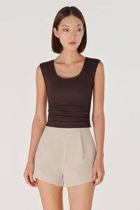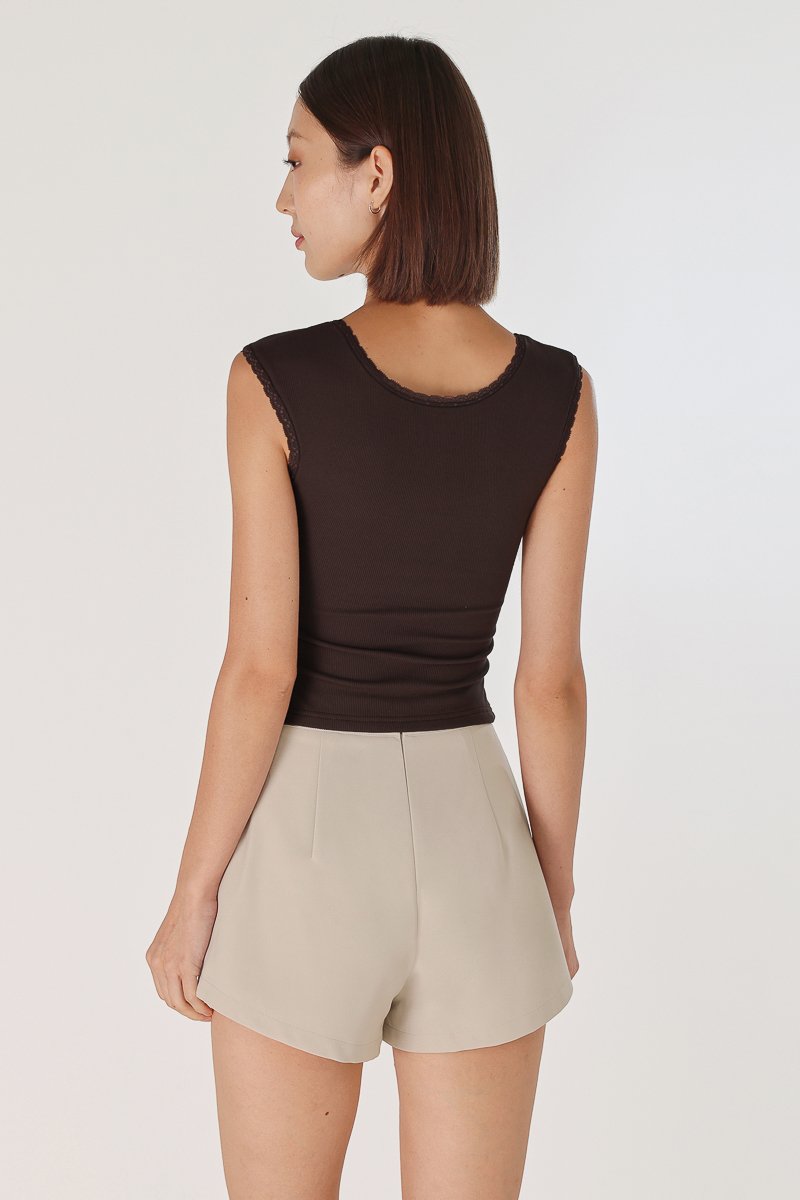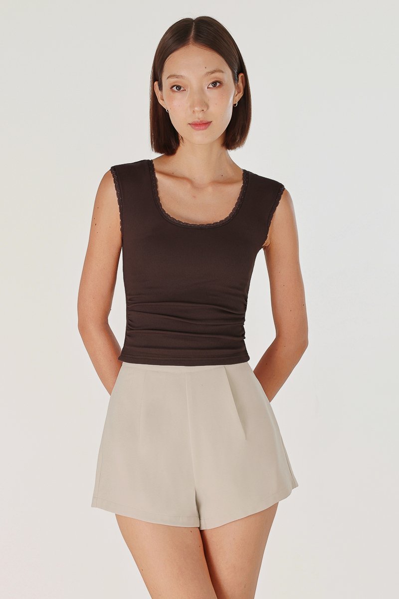 ELLIS PADDED LACE TRIM SCOOP NECK RIBBED TOP (ESPRESSO)