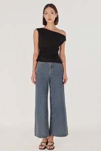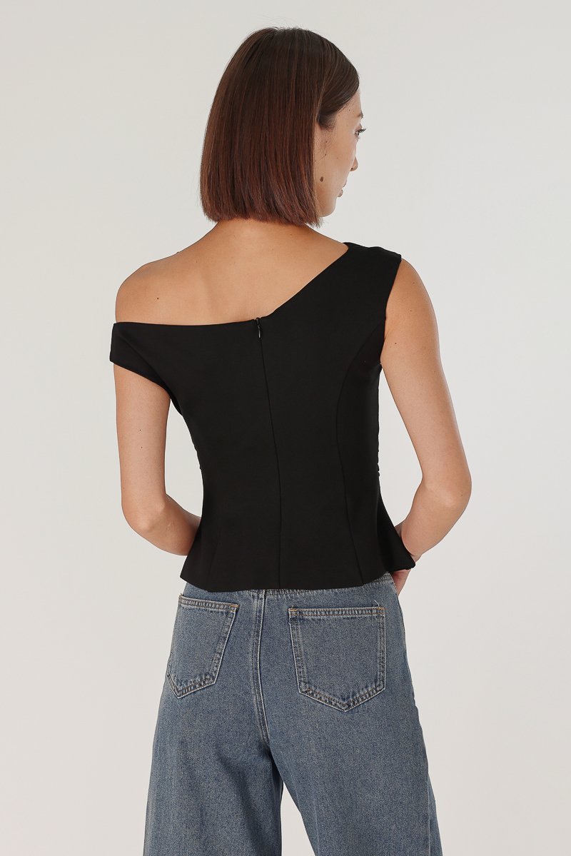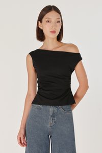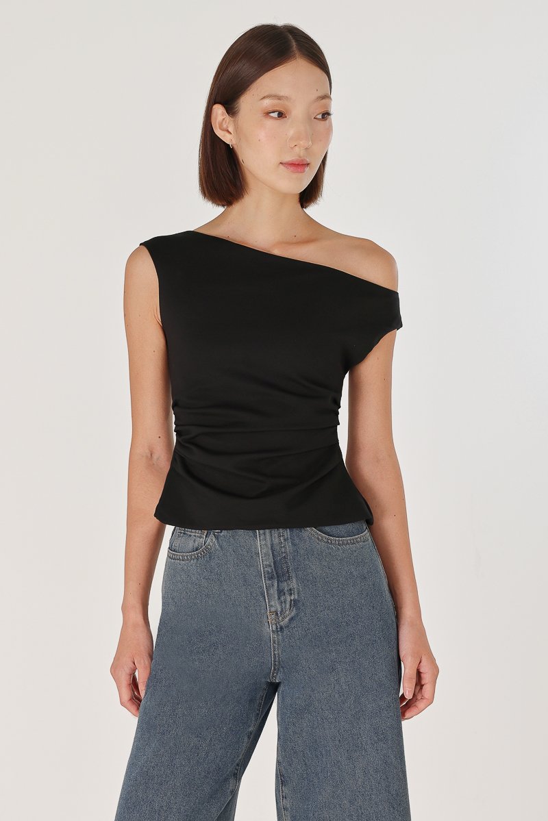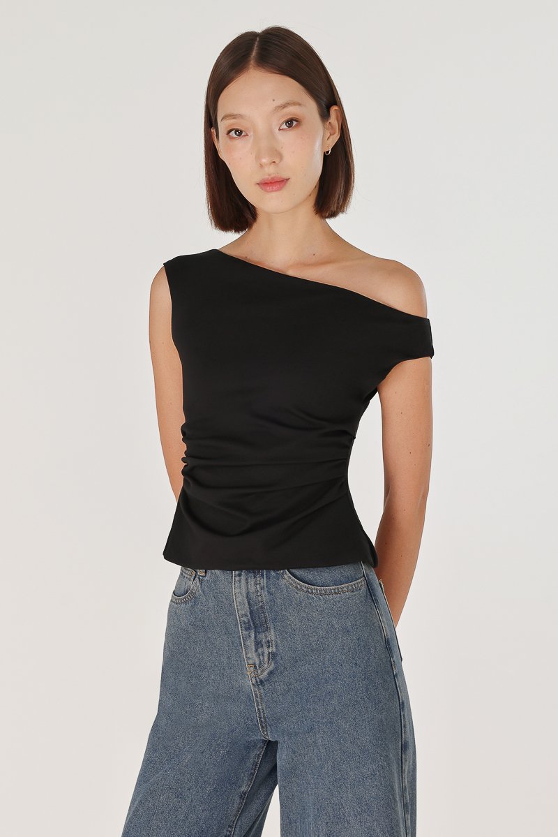 ELOUISA OFF SHOULDER SIDE RUCHED TOP (BLACK)