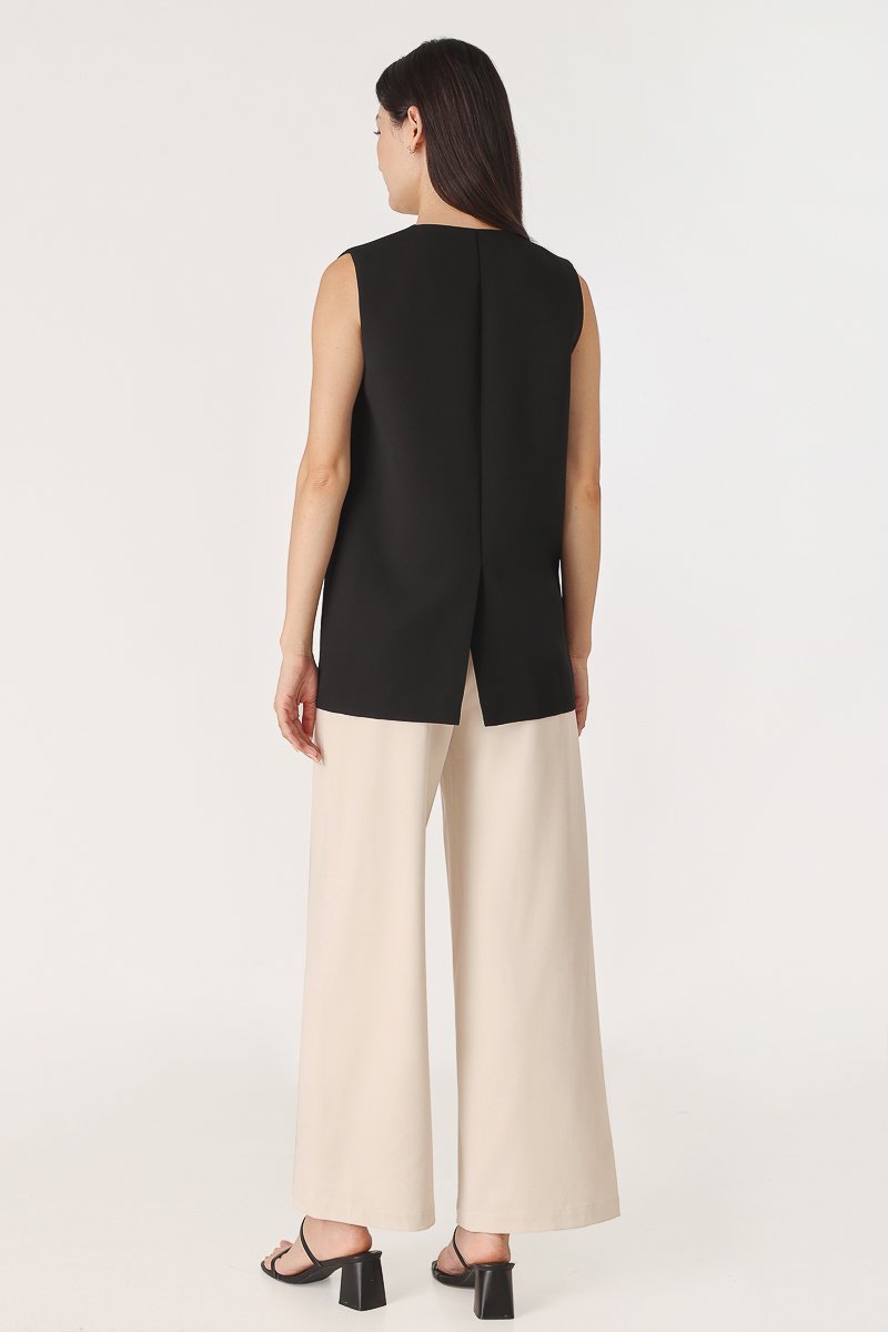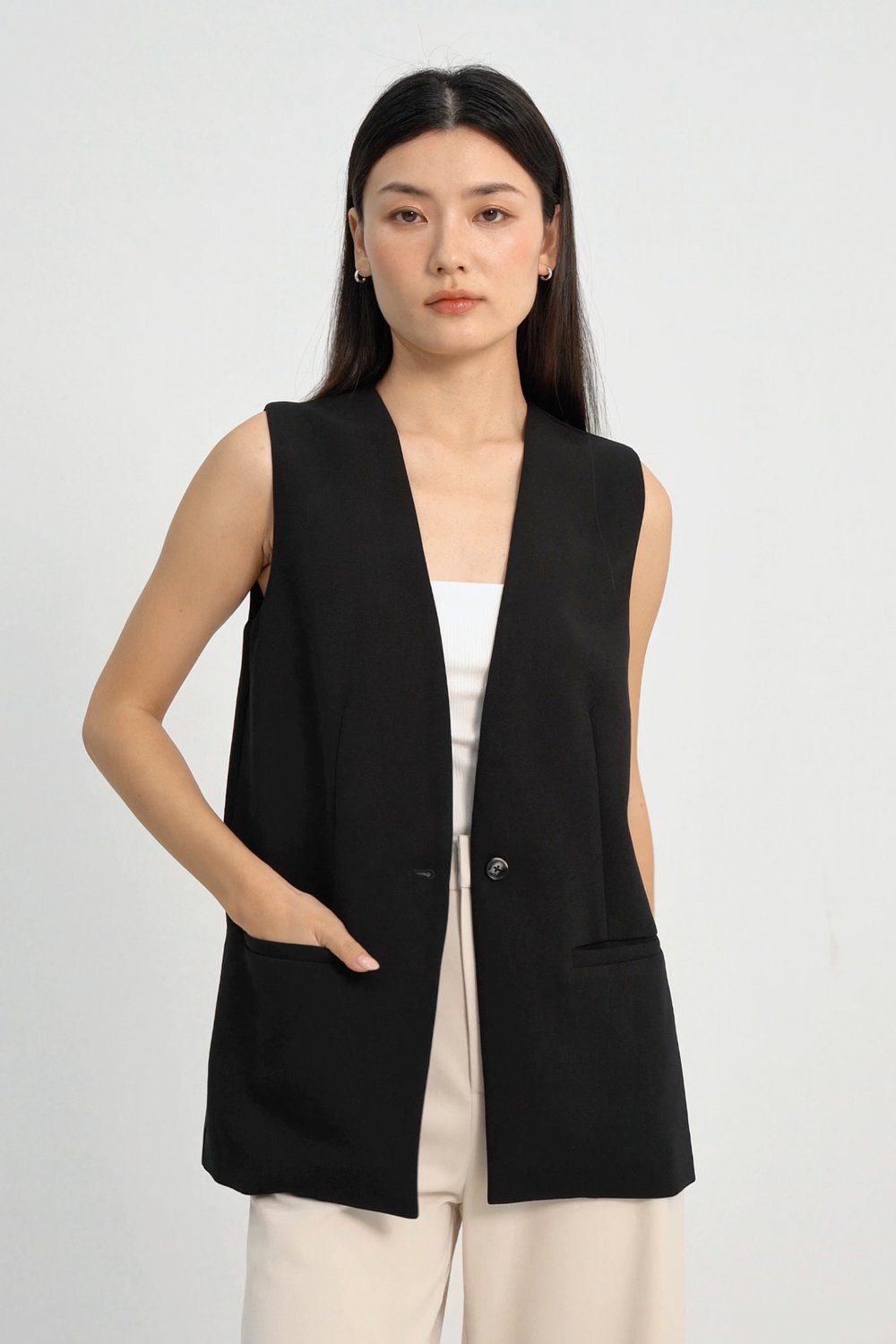 ESSIE WELT POCKET BACK SLIT VEST (BLACK)