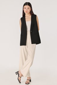 Precision tailoring with understated ease. Essie is a vest designed with a functional front button, front welt pockets and a non-adjustable back slit vent for maximum practicality. Created with versatile styling in mind, it pairs seamlessly with both tailored pants and casual denim. A timeless essential that brings structure and ease to any wardrobe.