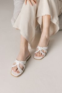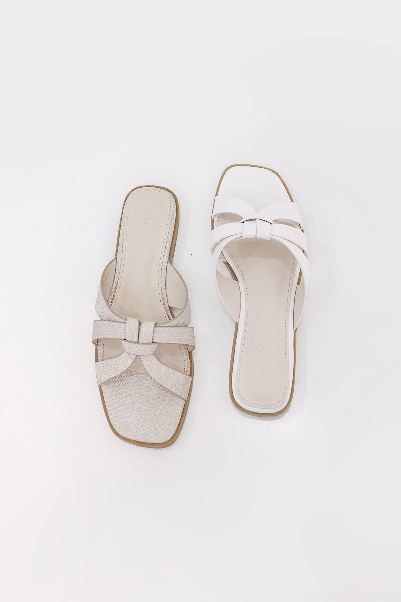 ESTHER WEAVE KNOT SLIP-ON SANDALS (WHITE)