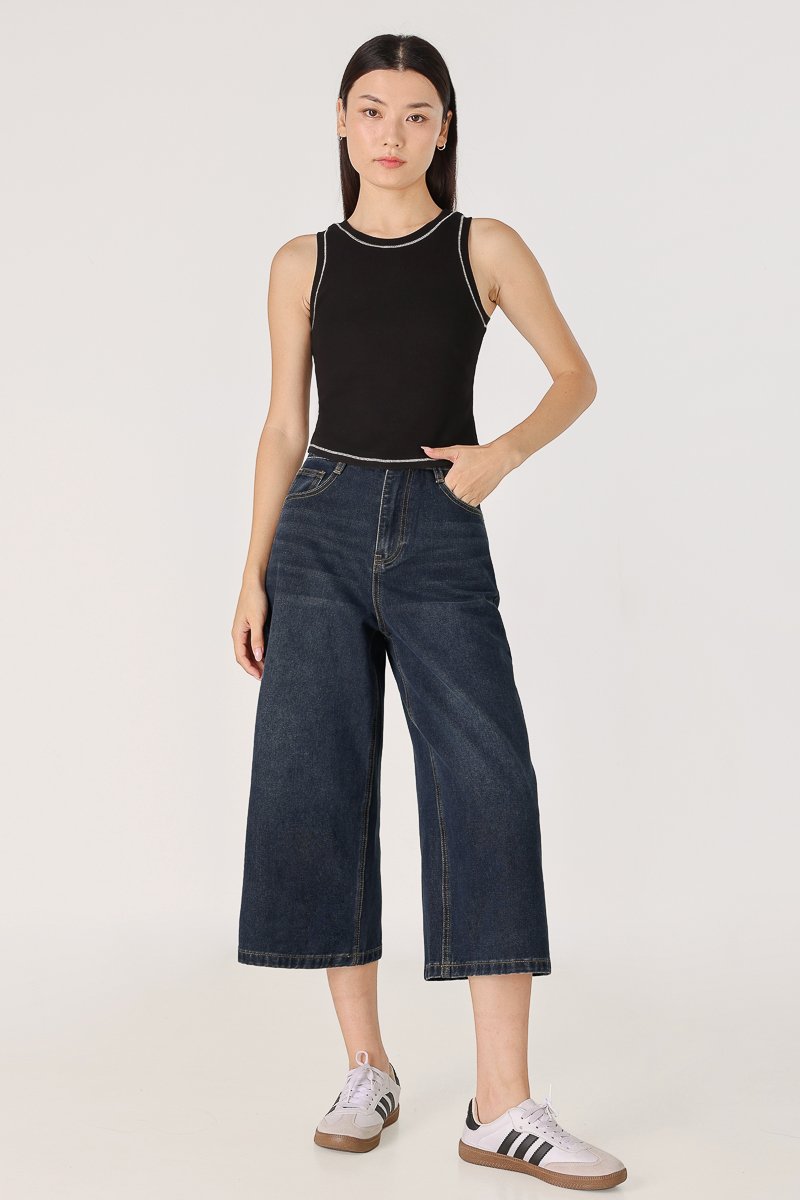 EUPHORIA DENIM WIDE LEG CULOTTES (DARK WASHED)
