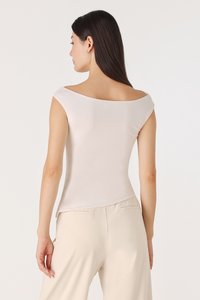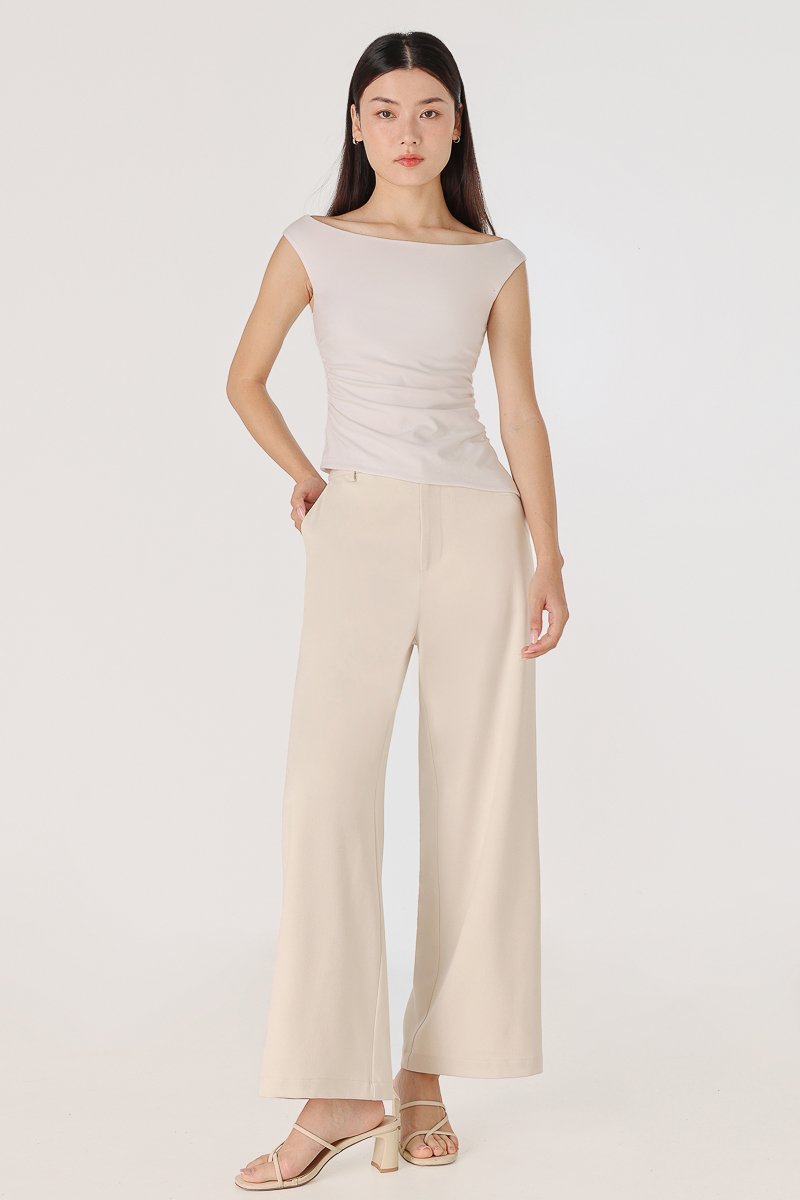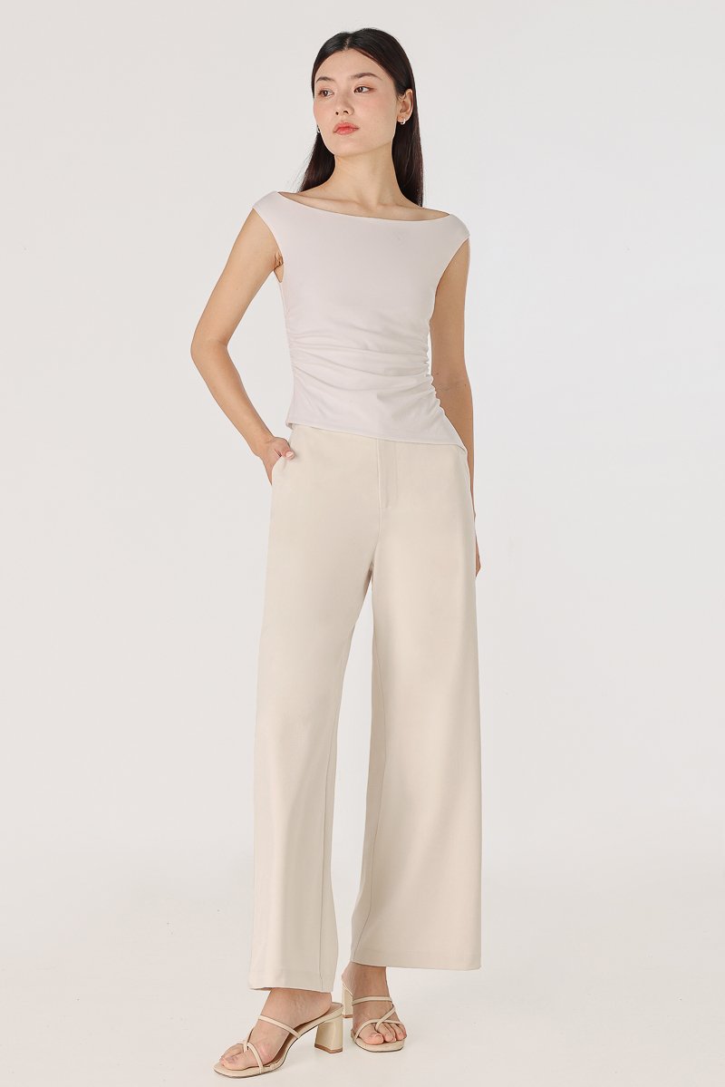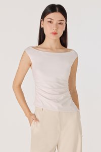 EVANGELINE PADDED BOATNECK SLANT HEM RUCHED TOP (WHITE)