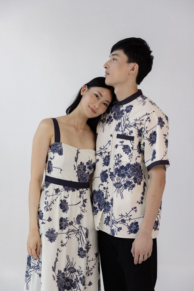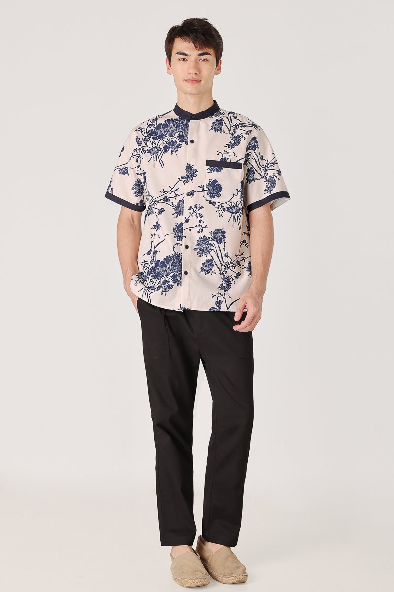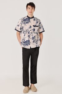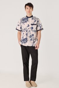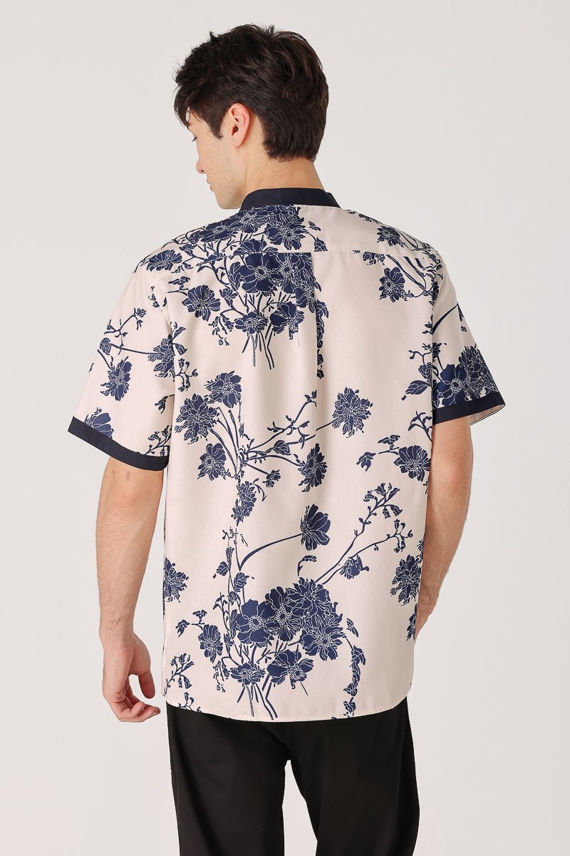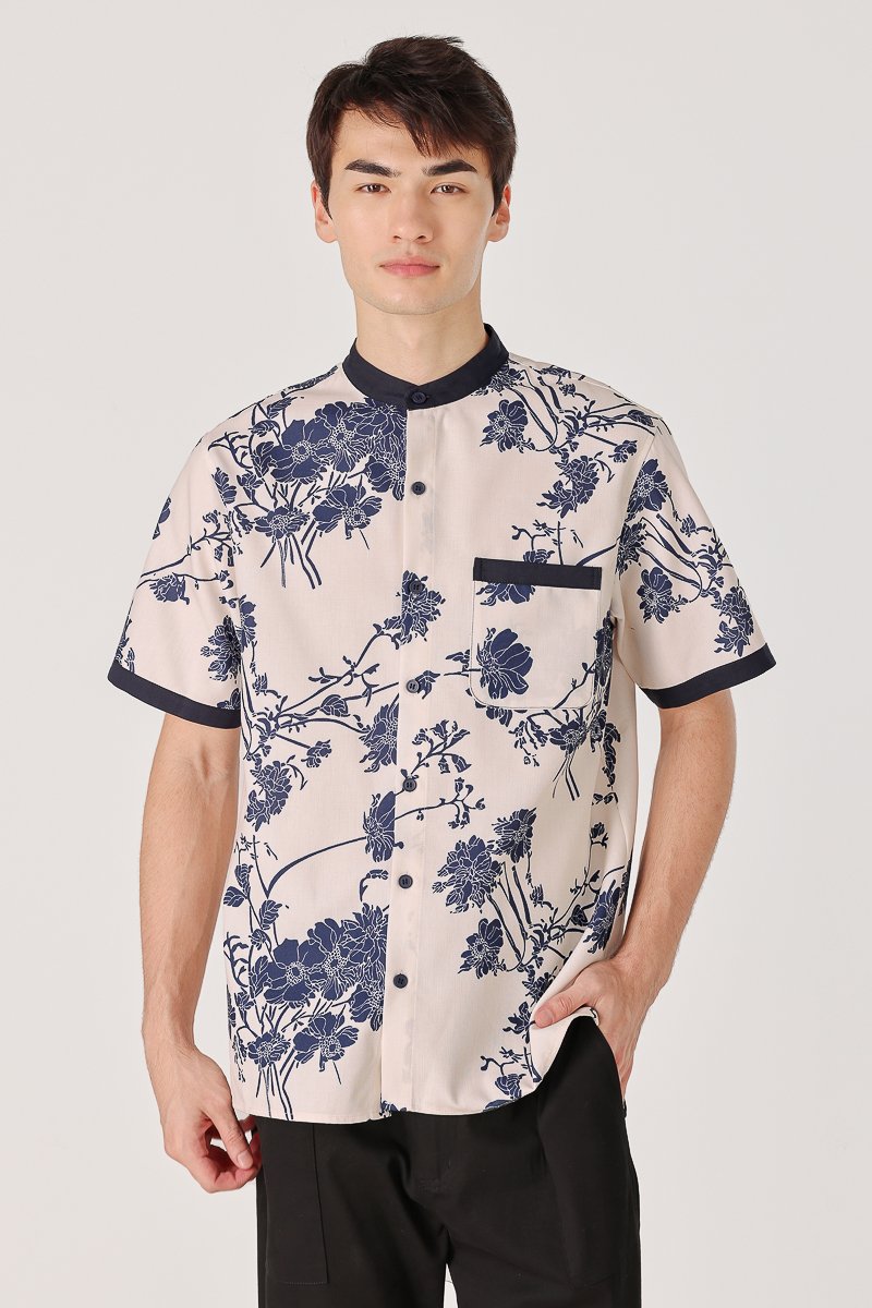 FABIAN FLORAL CONTRAST MANDARIN COLLAR BUTTON SHIRT