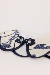 Due to the nature of navy fabric dye, hand wash in cold water or machine wash in a laundry net without light/ white colored clothing for the first time to avoid possibilities of color transfer. Do not soak.